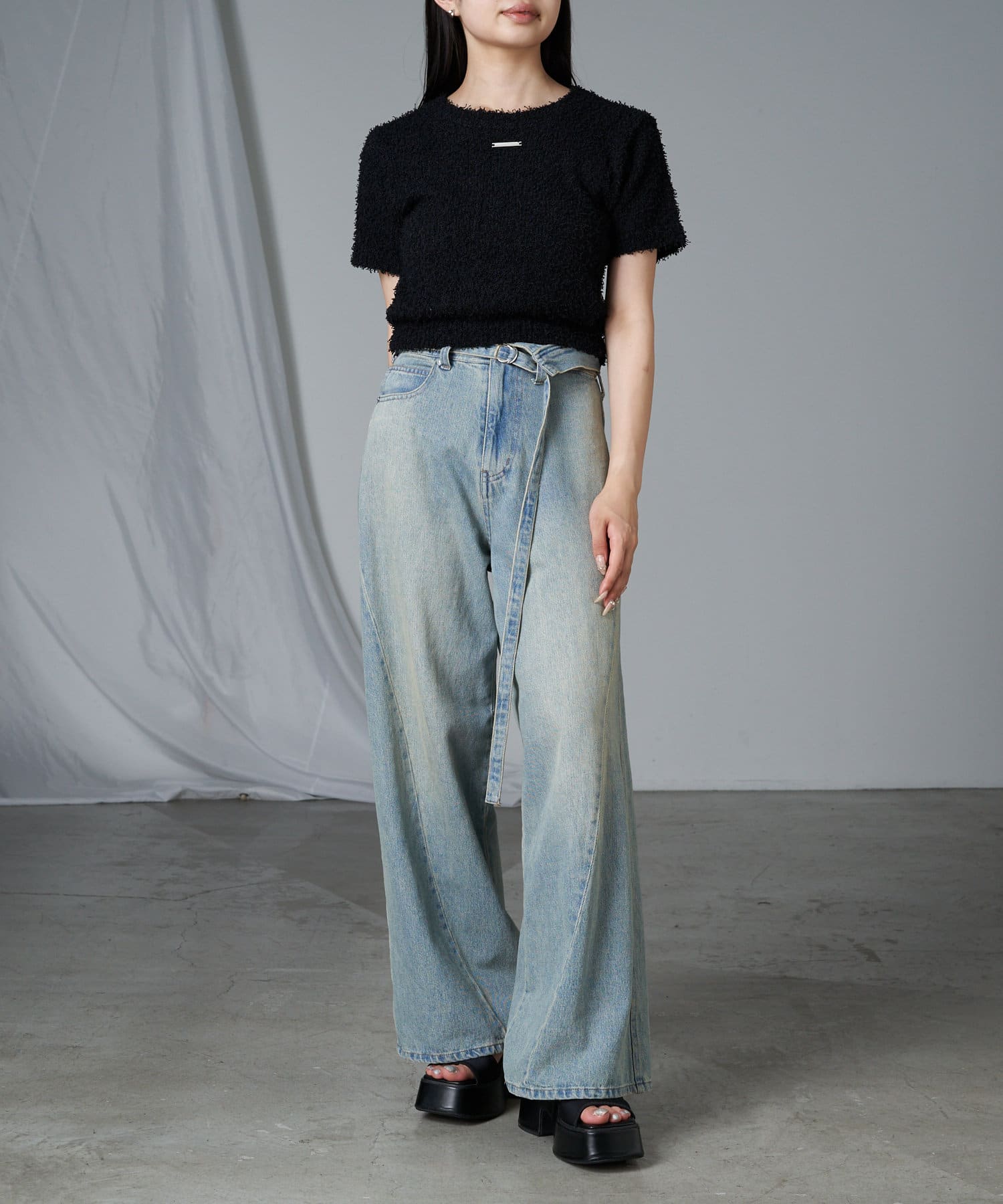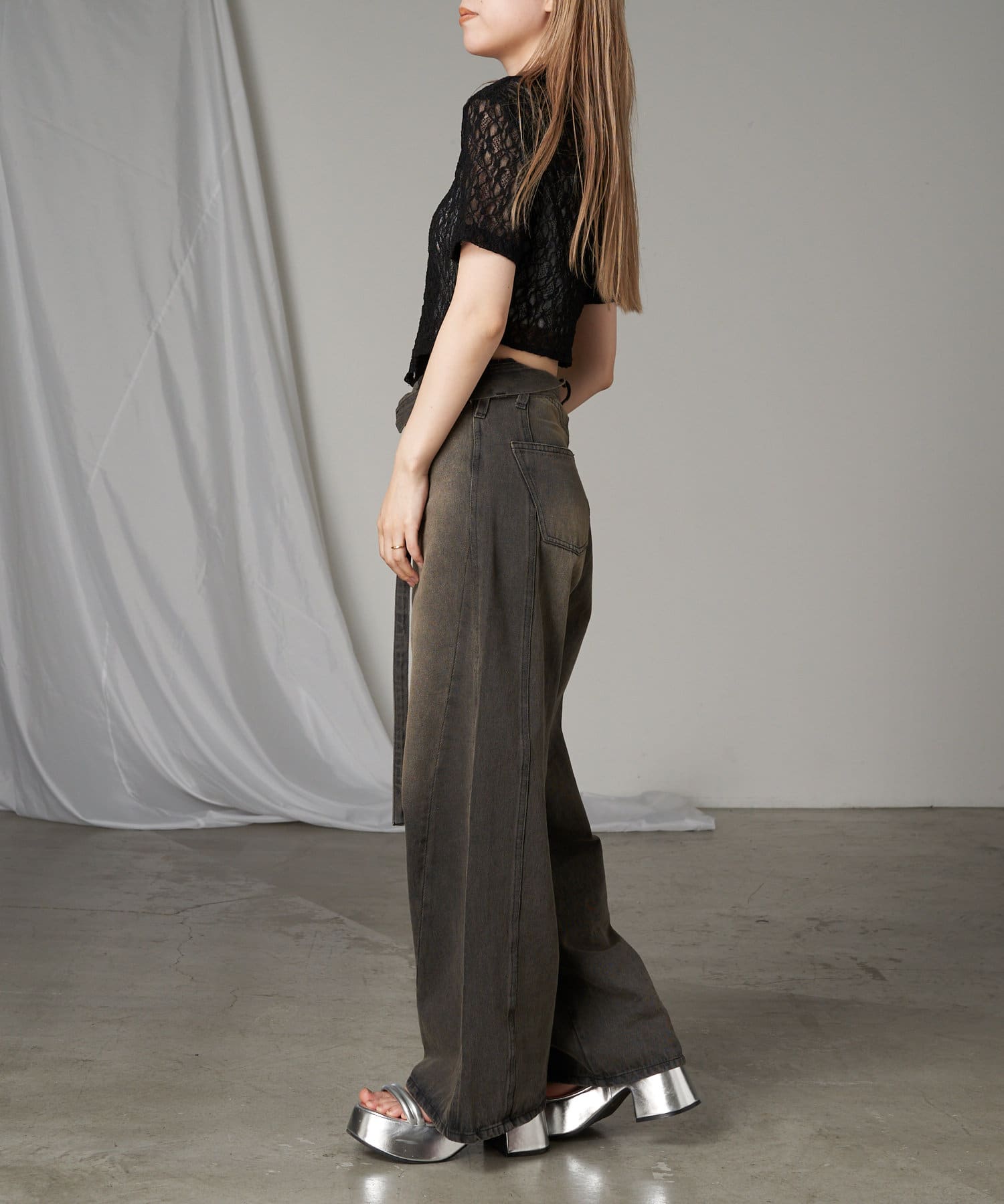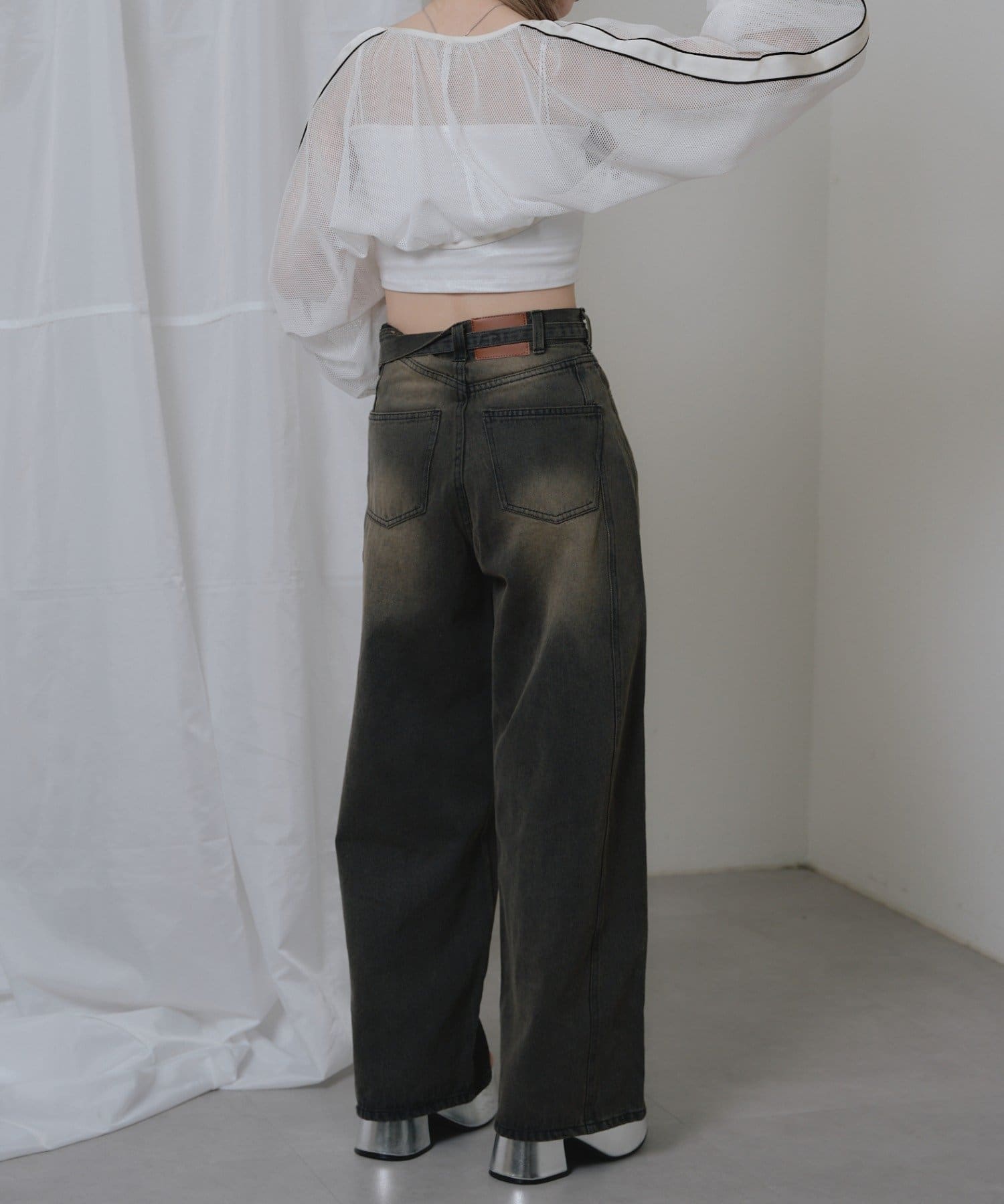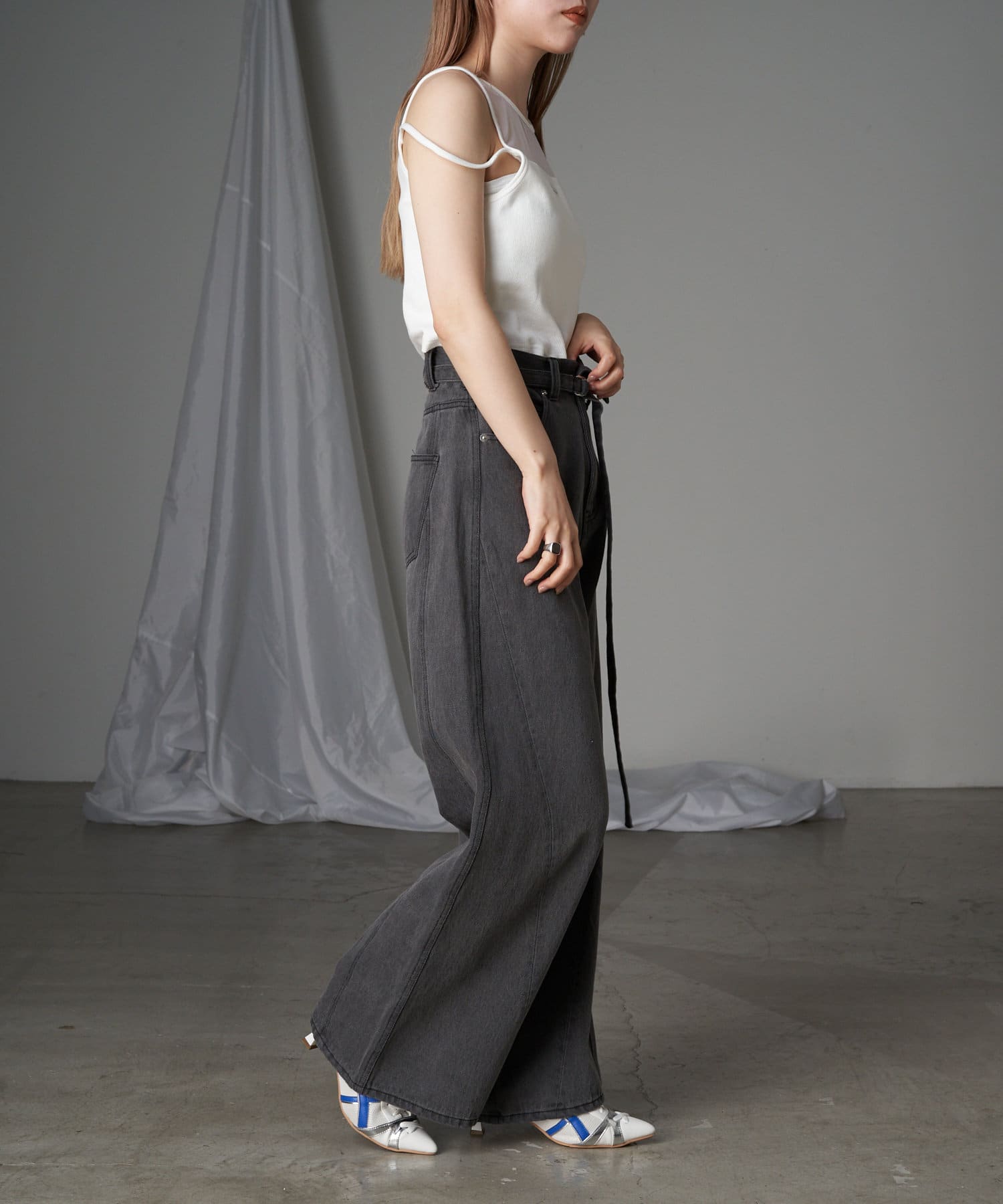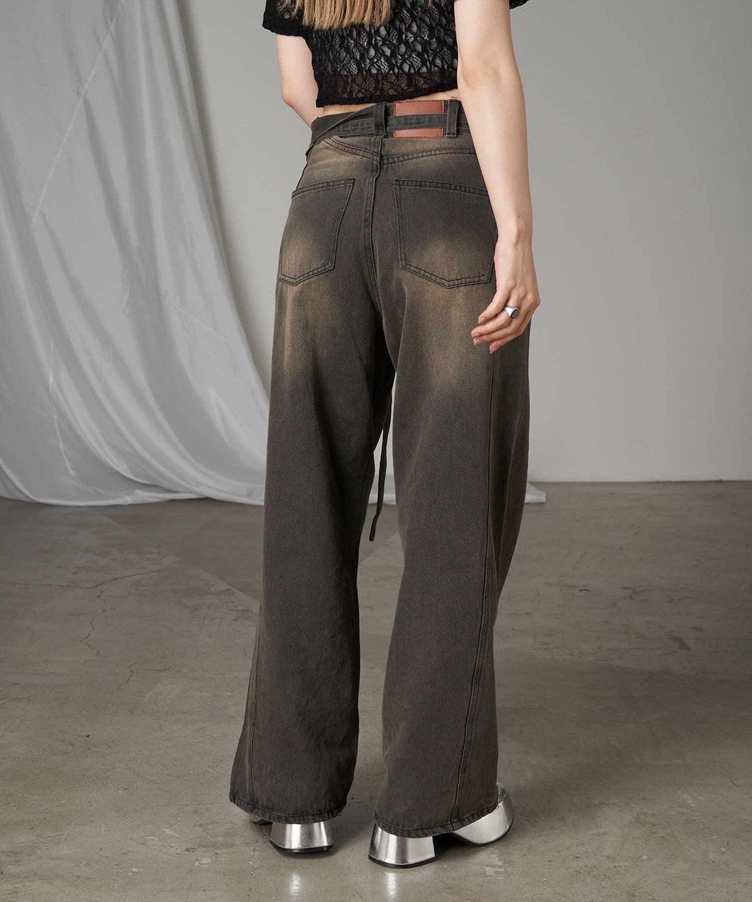 【RAY CASSIN】ウエスト折り返しワイドデニムパンツ