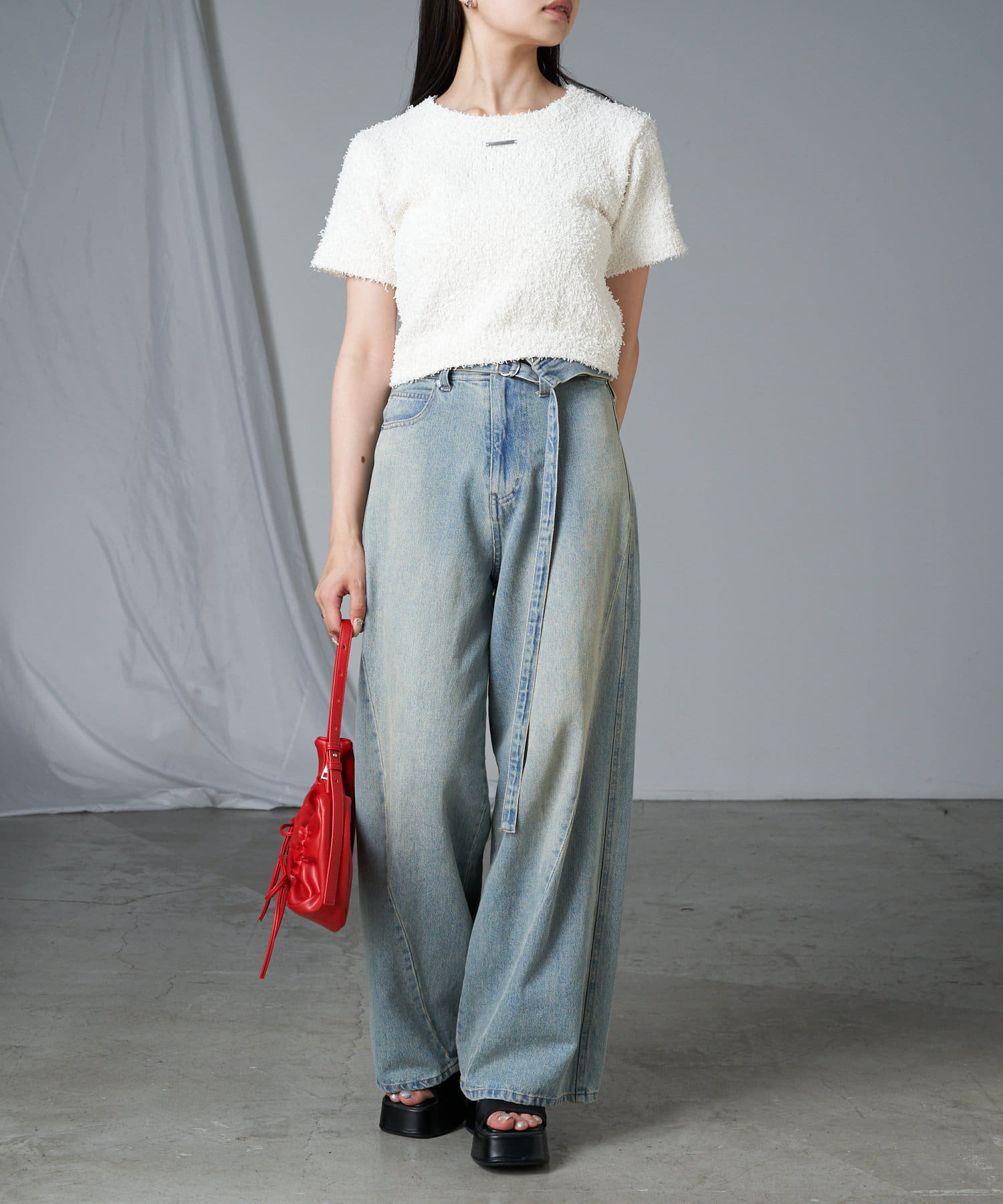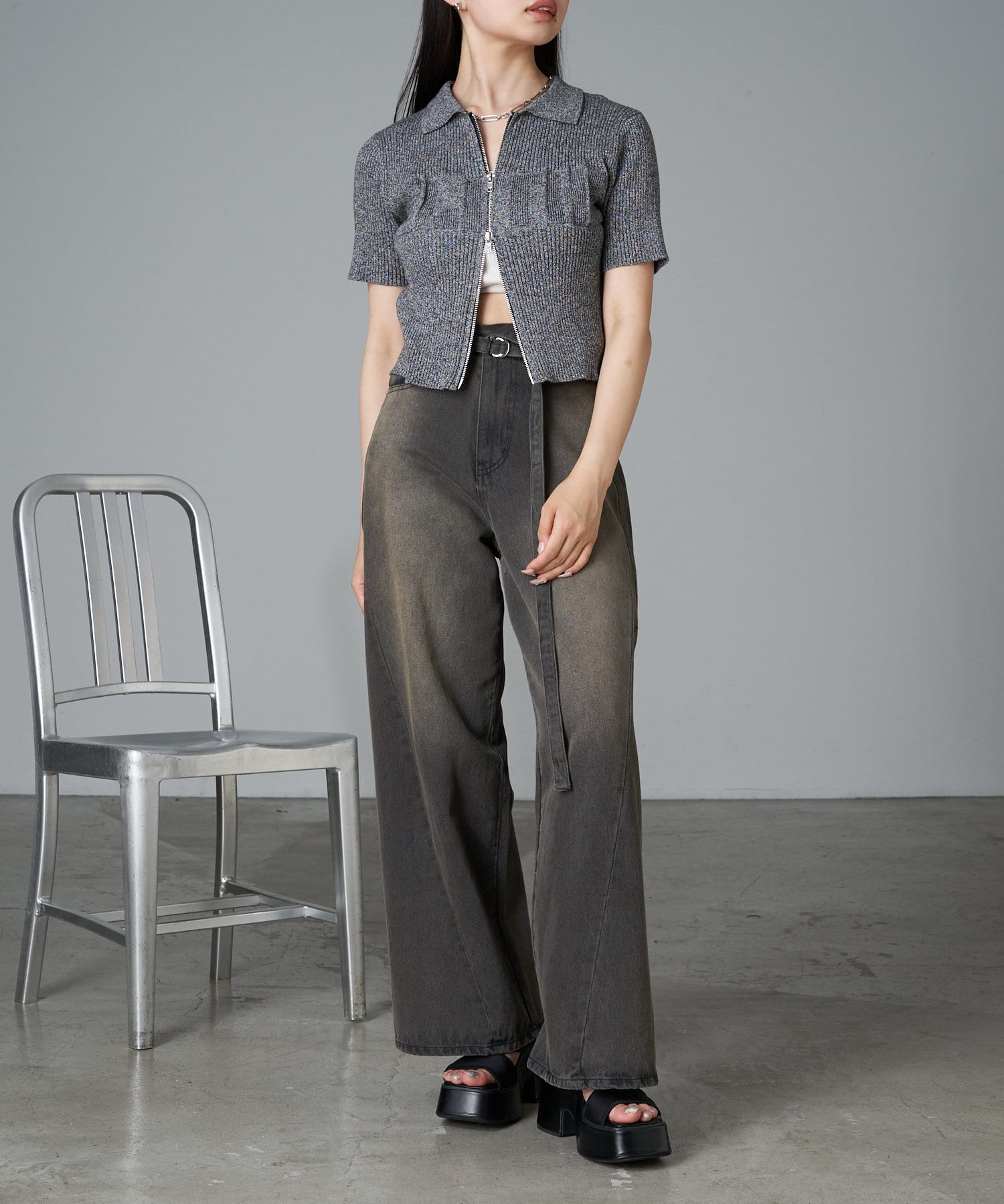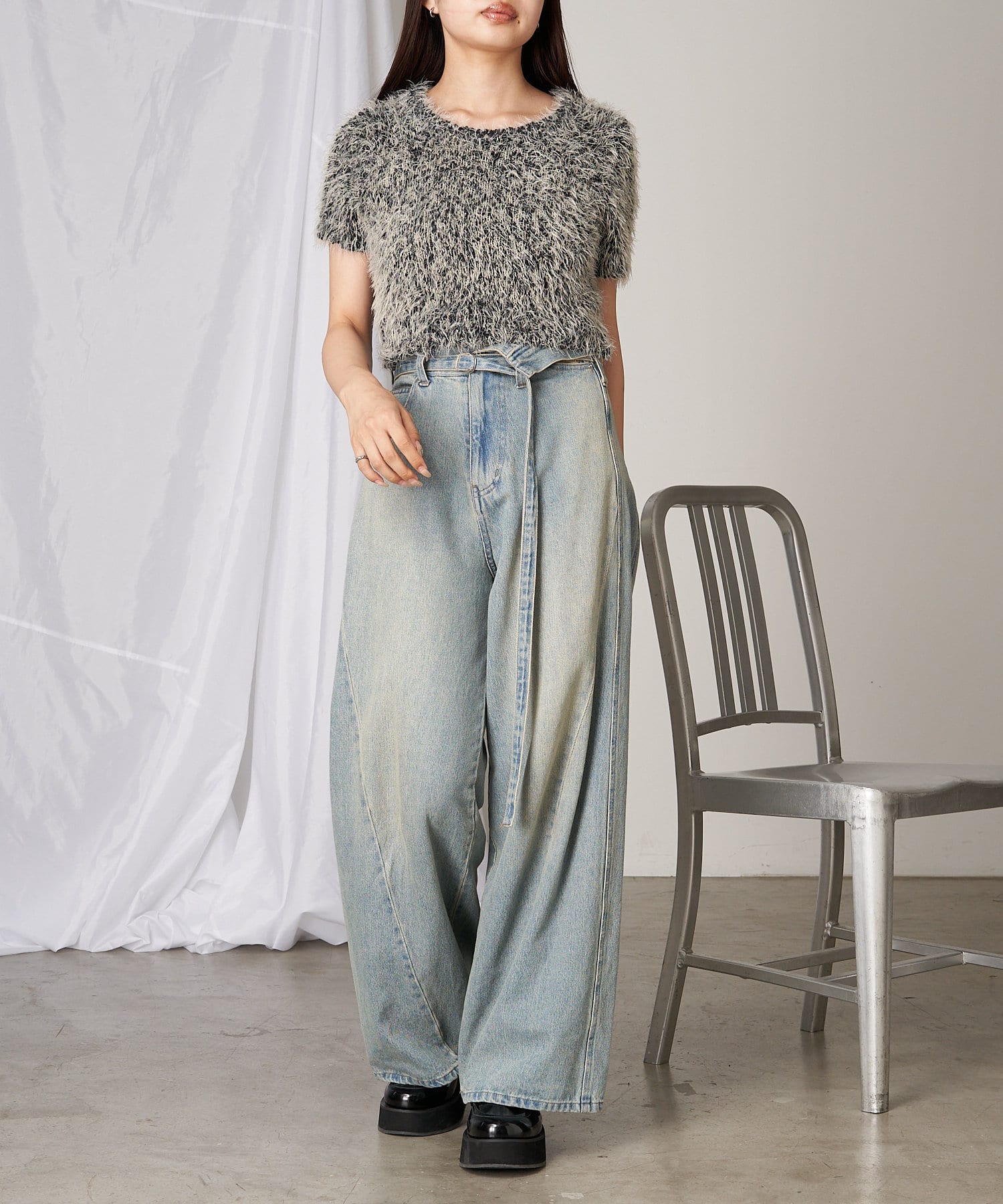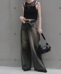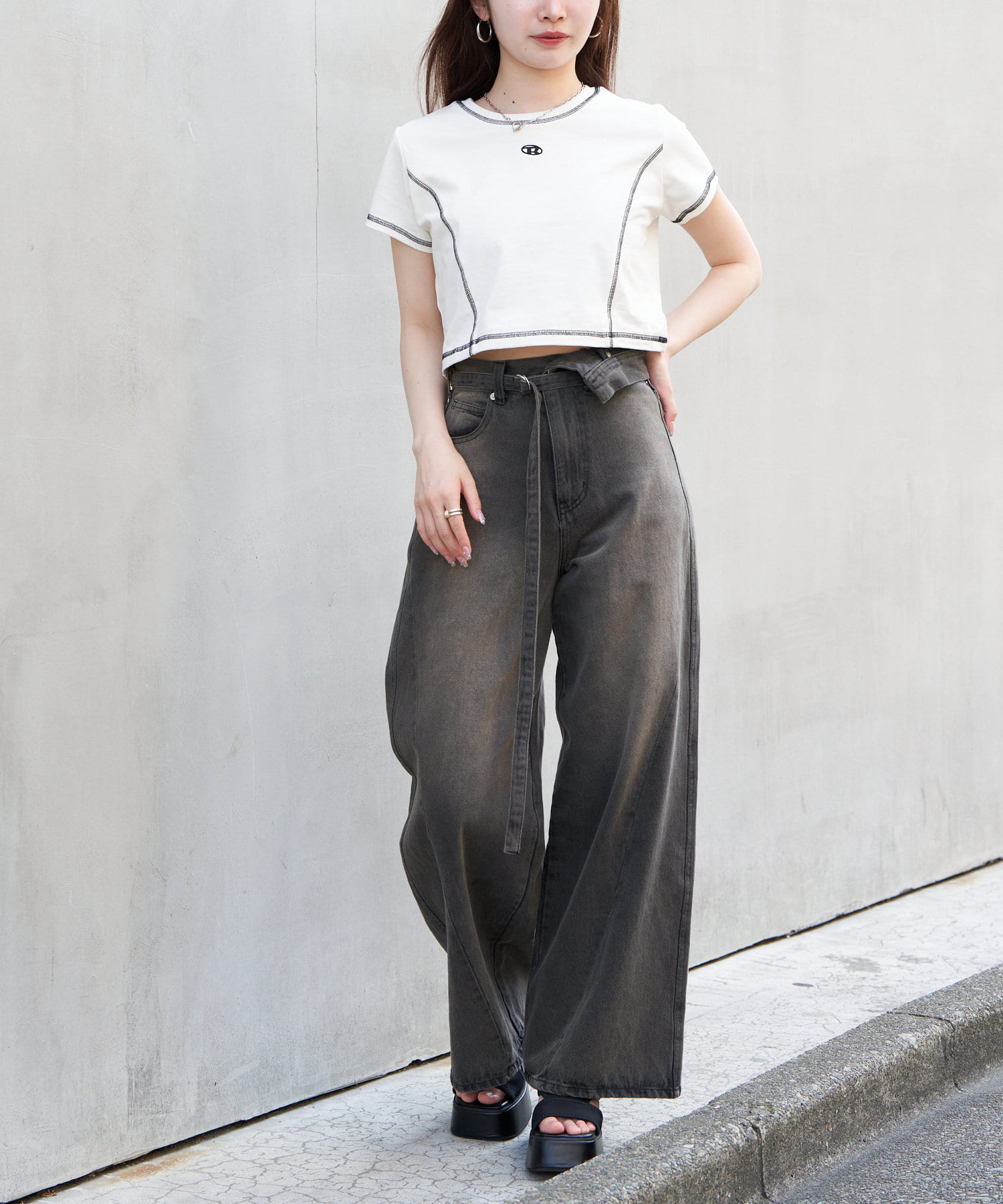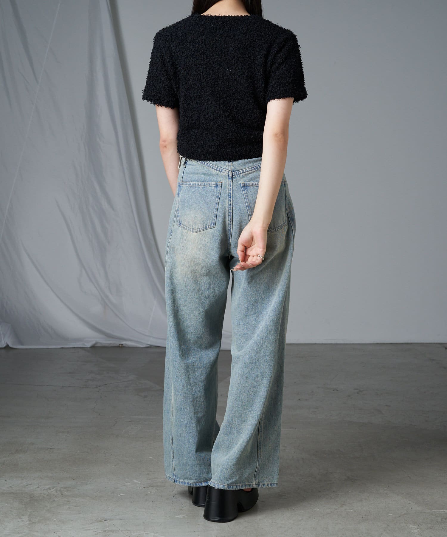 【RAY CASSIN】ウエスト折り返しワイドデニムパンツ