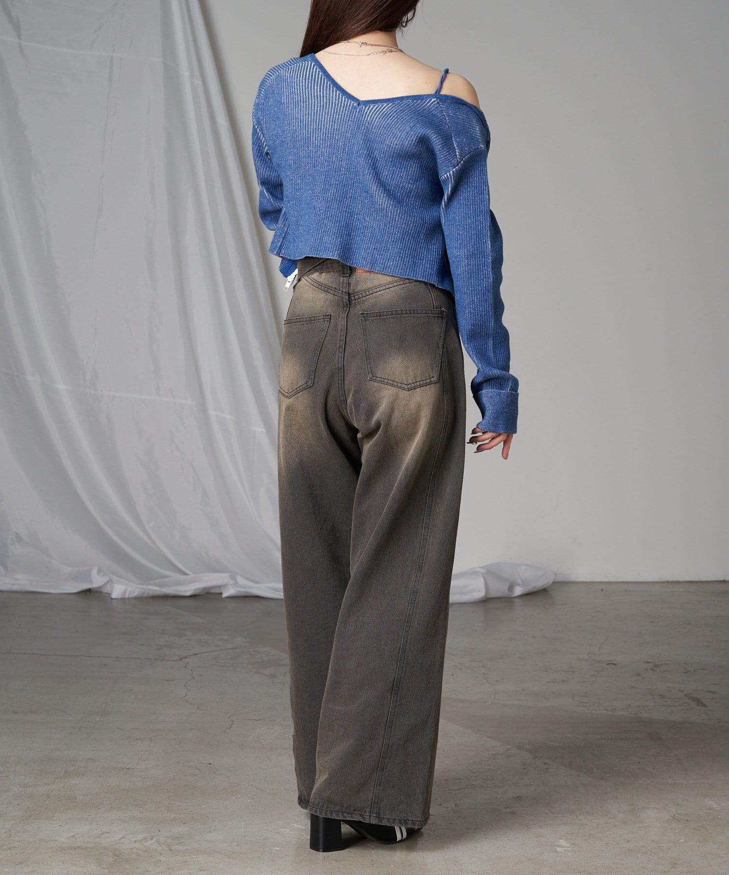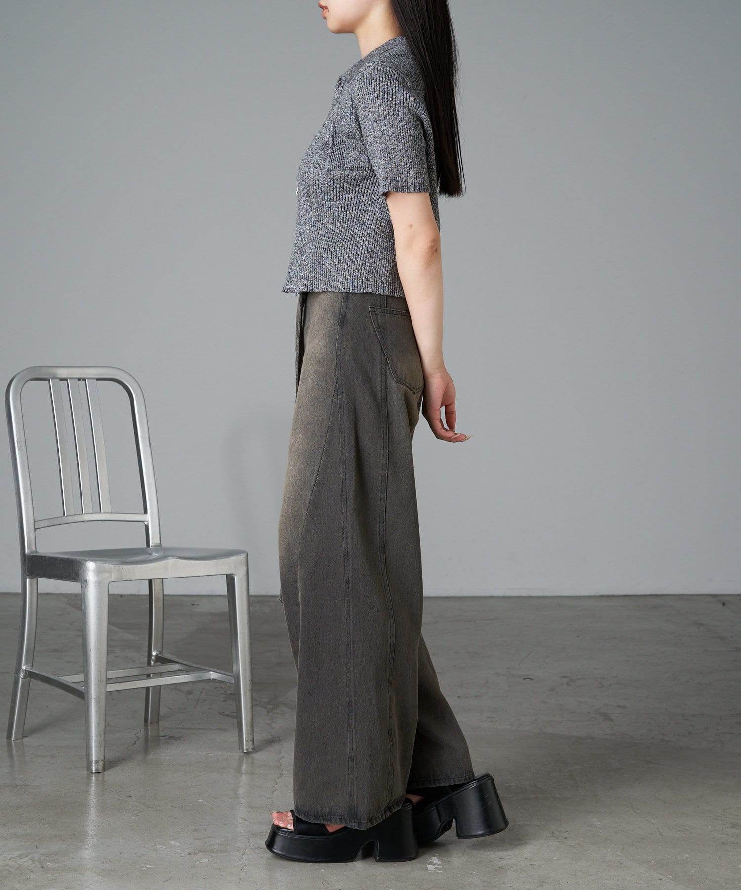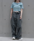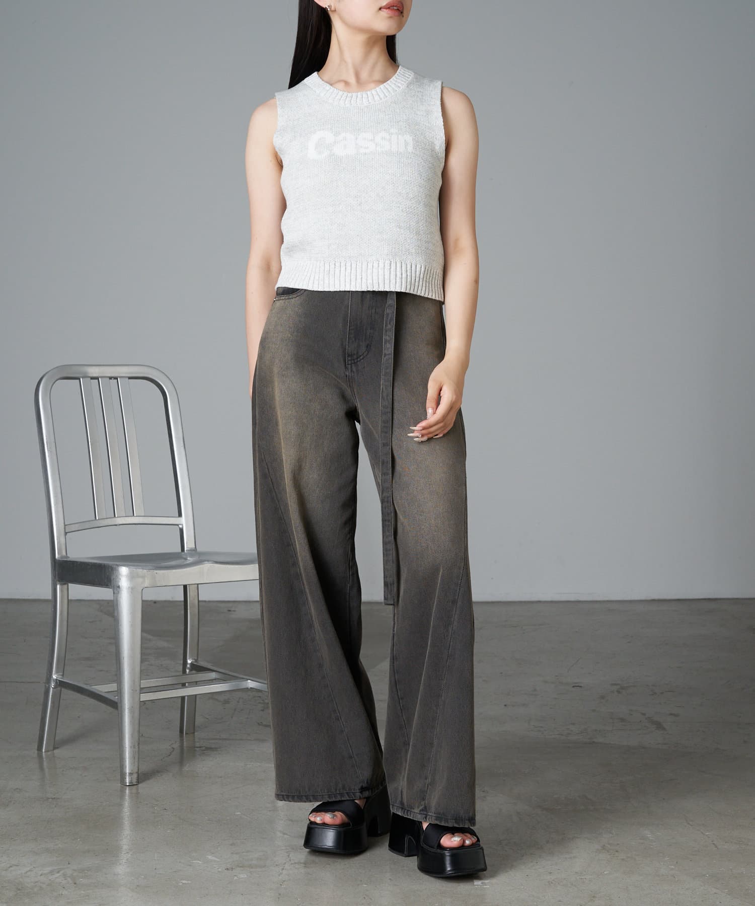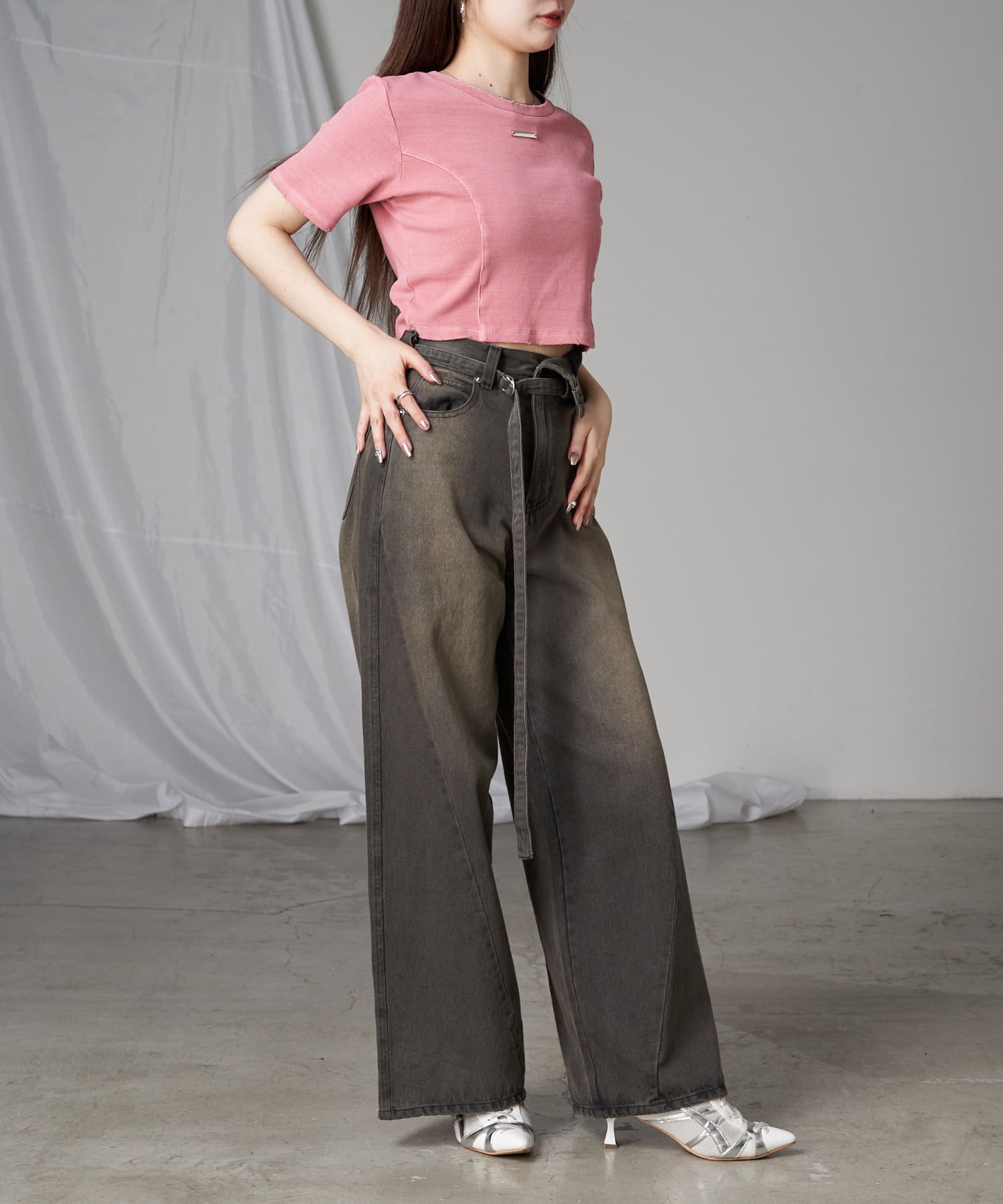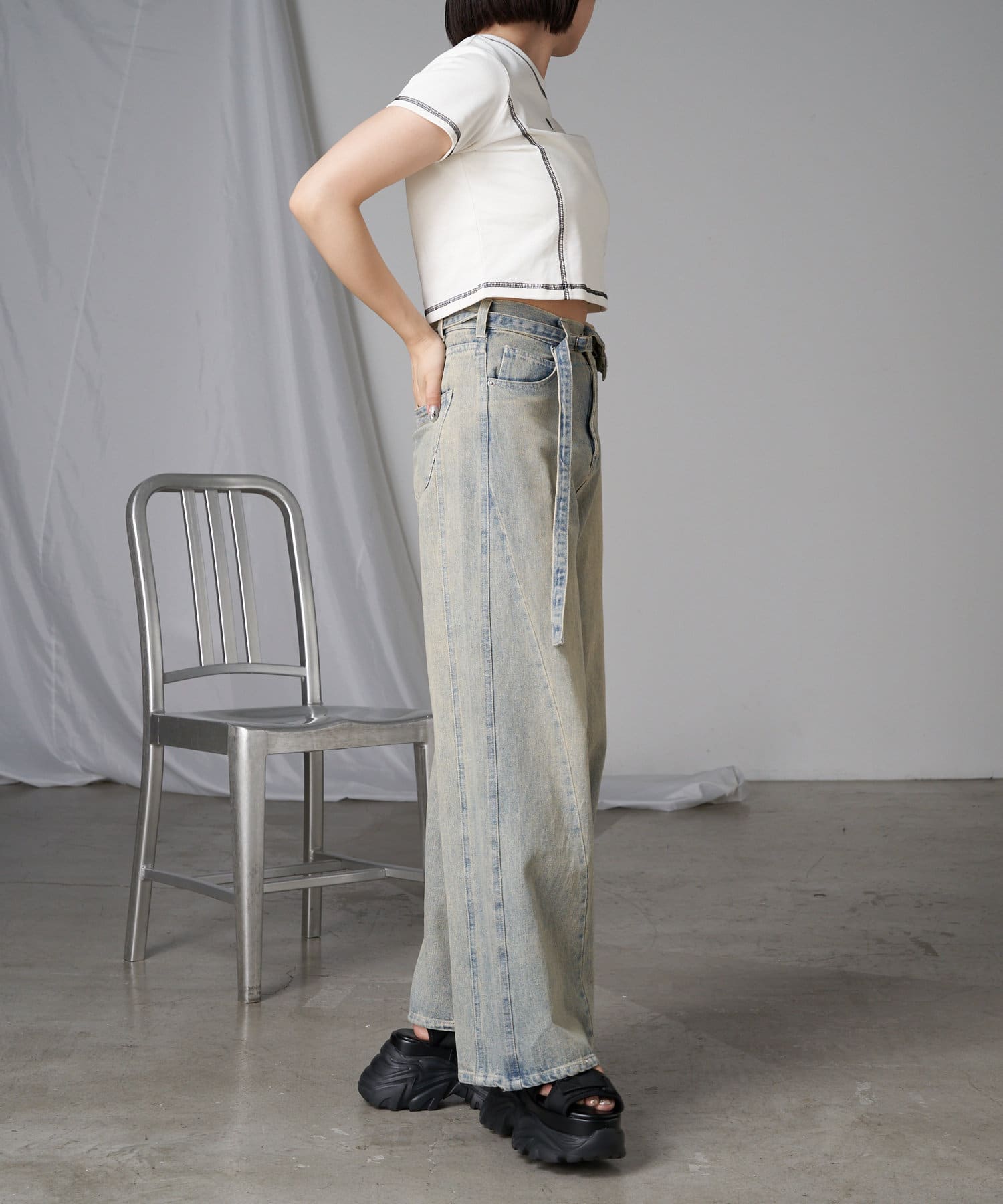 【RAY CASSIN】ウエスト折り返しワイドデニムパンツ