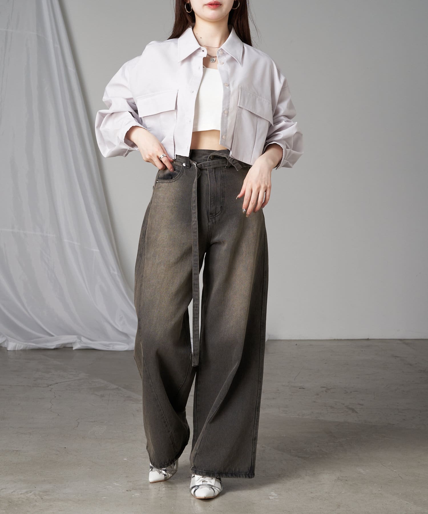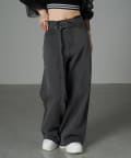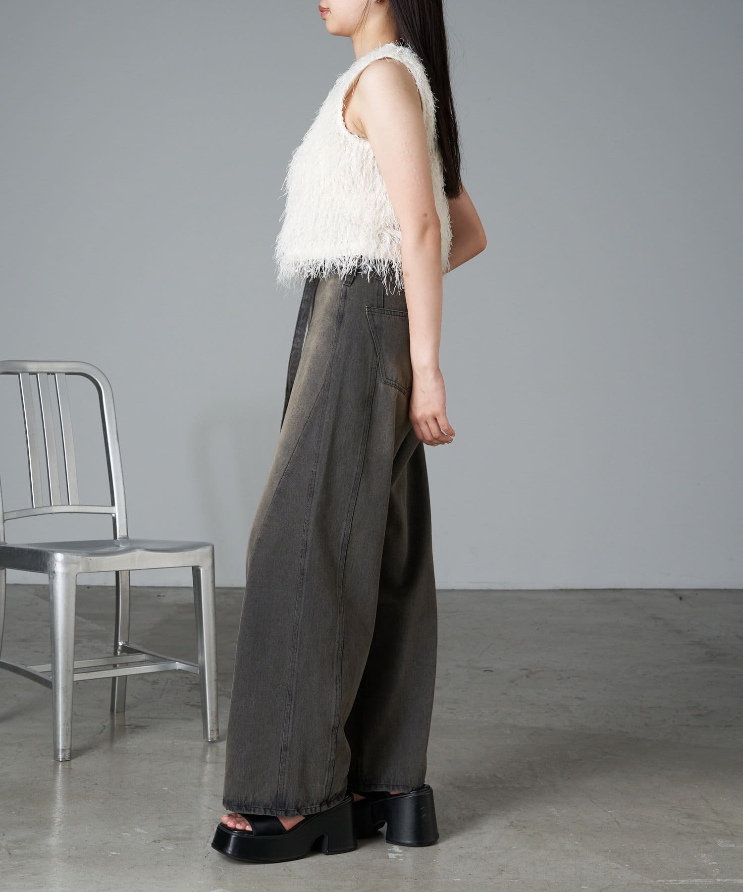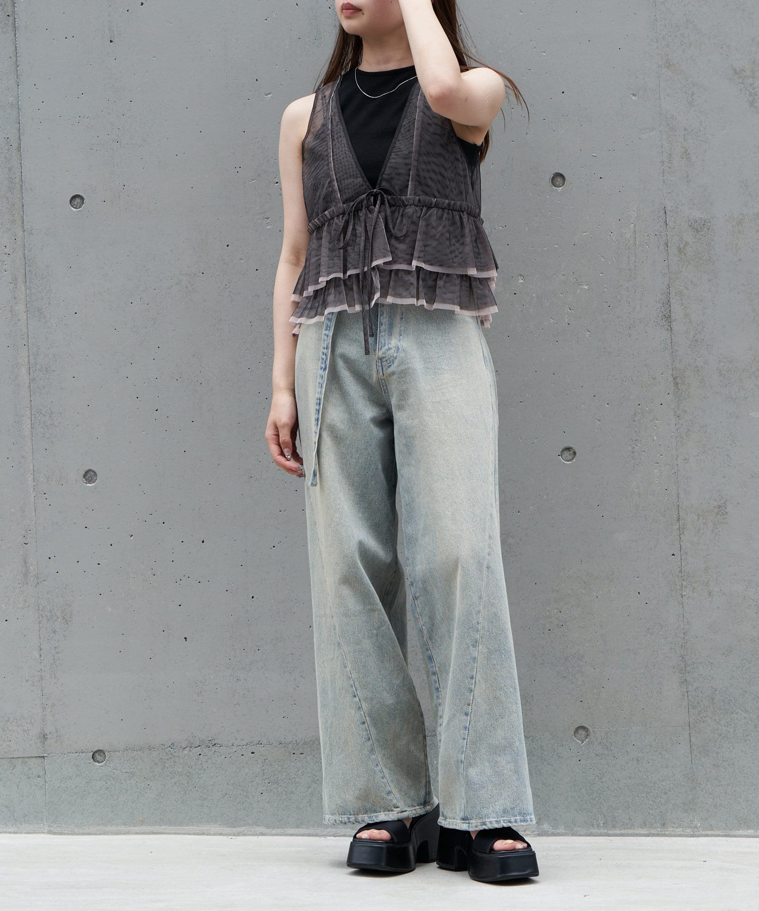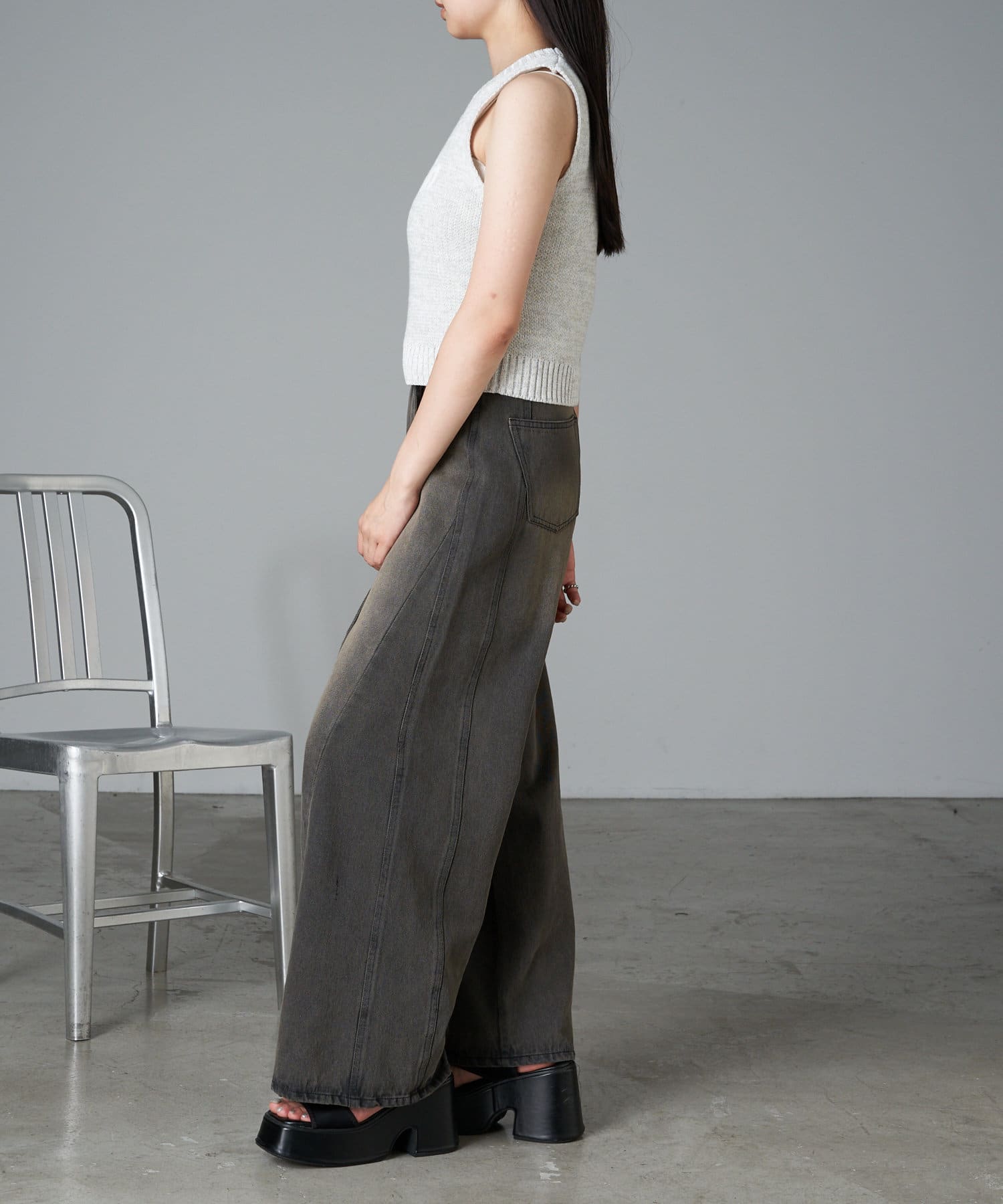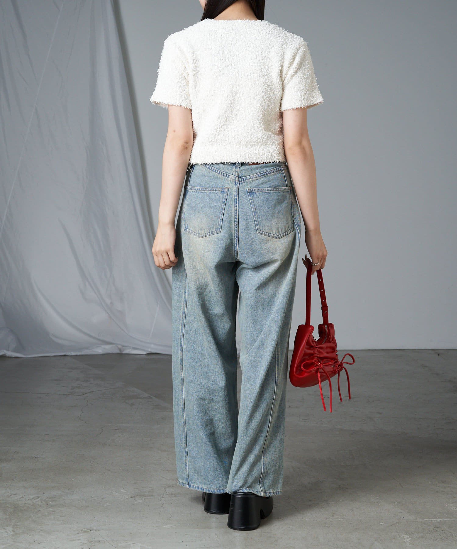 【RAY CASSIN】ウエスト折り返しワイドデニムパンツ