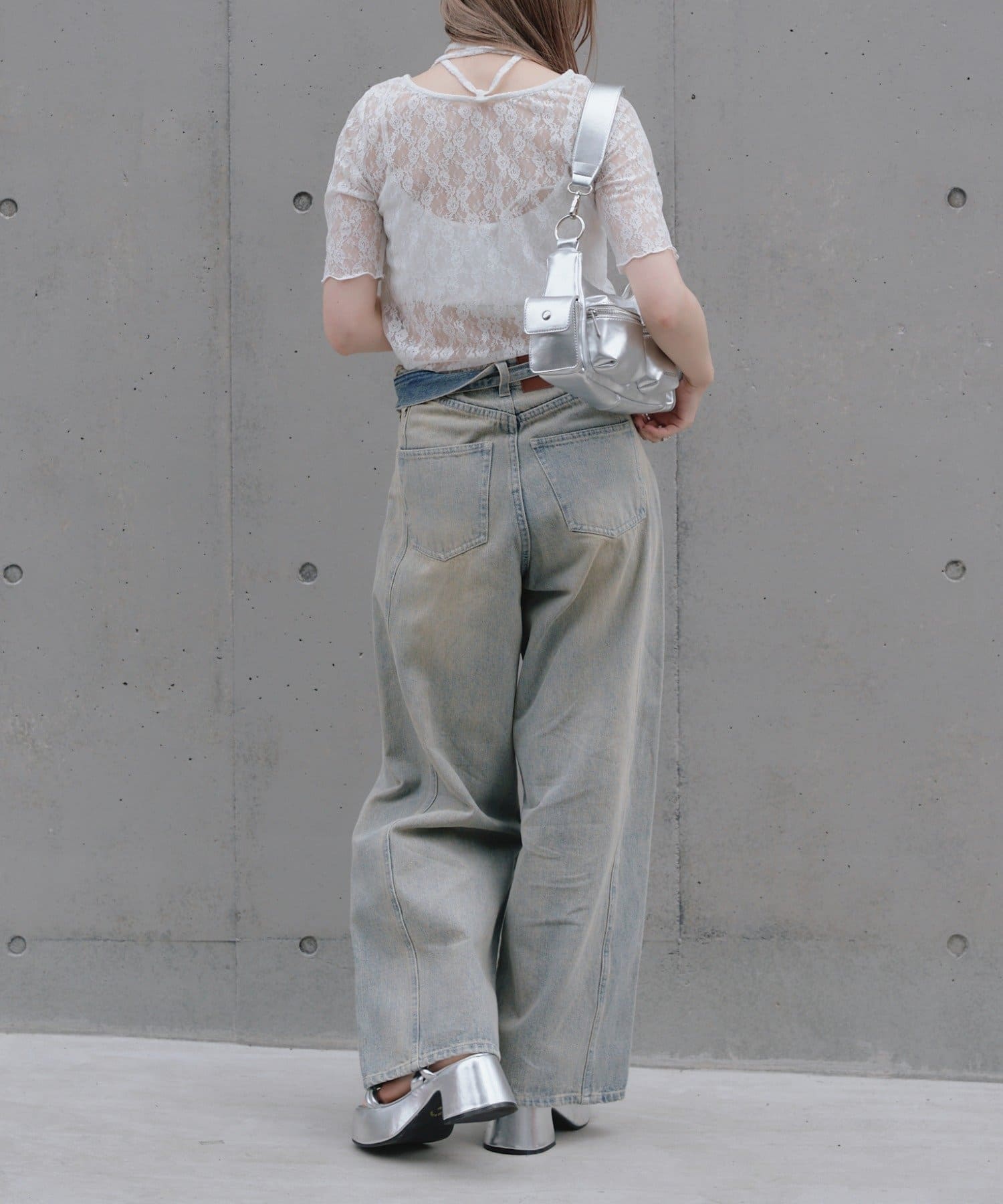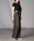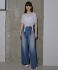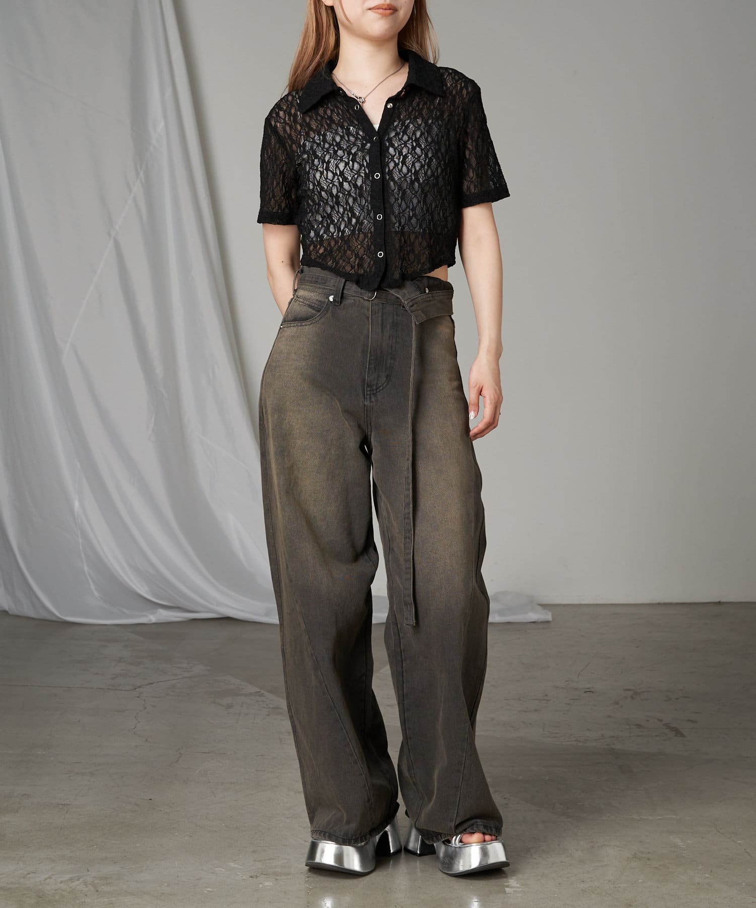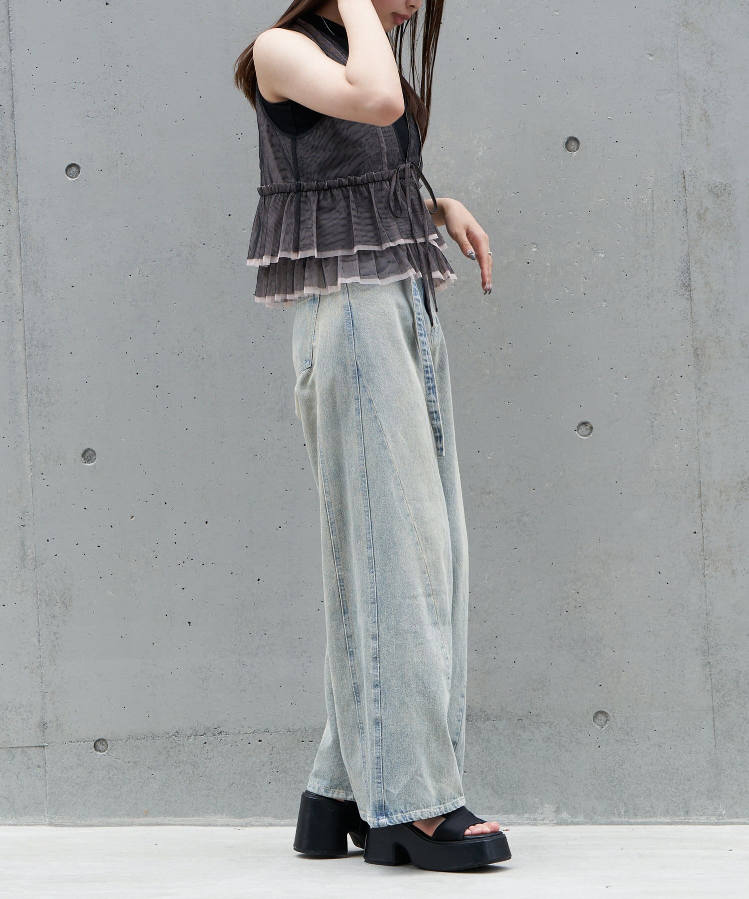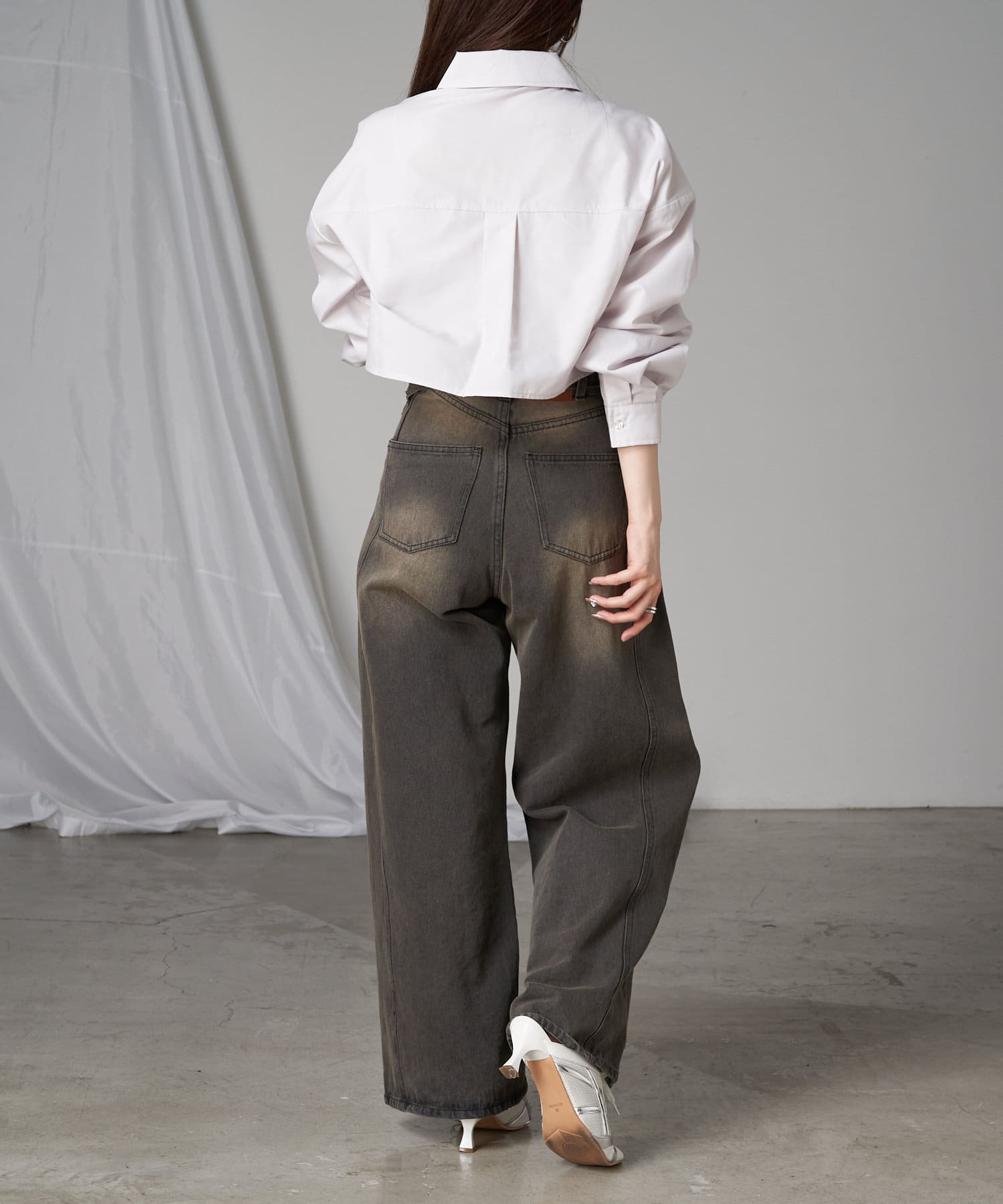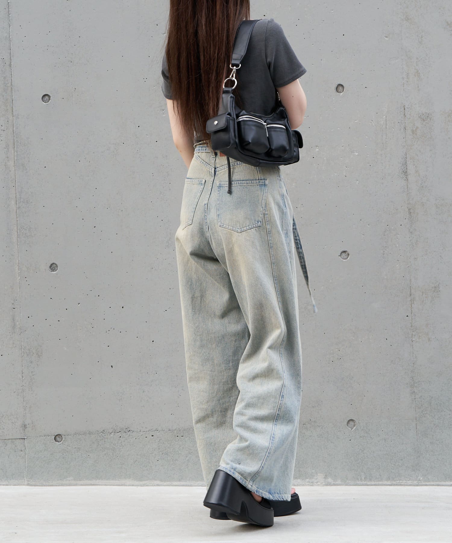【RAY CASSIN】ウエスト折り返しワイドデニムパンツ