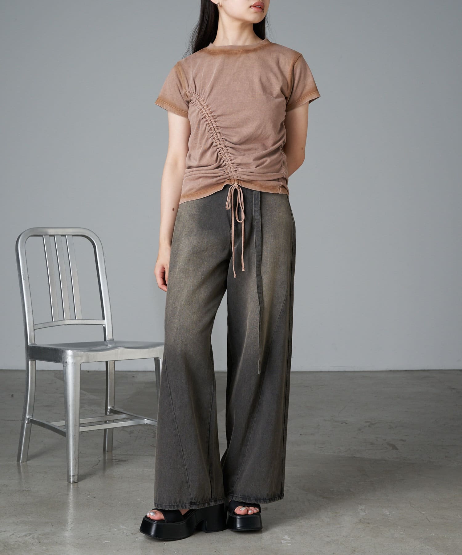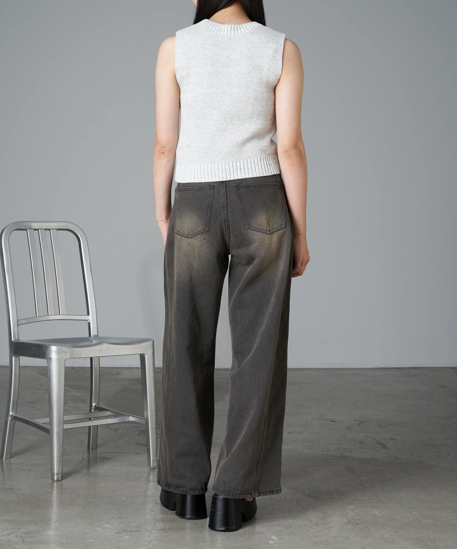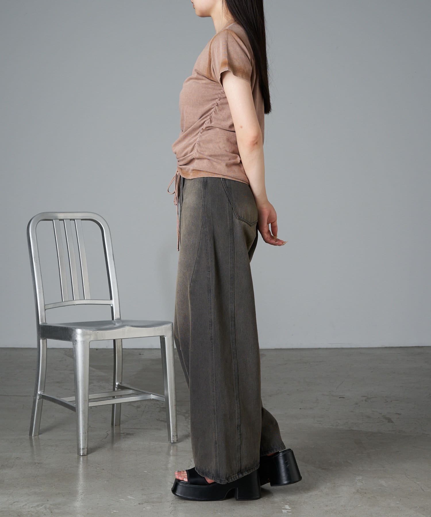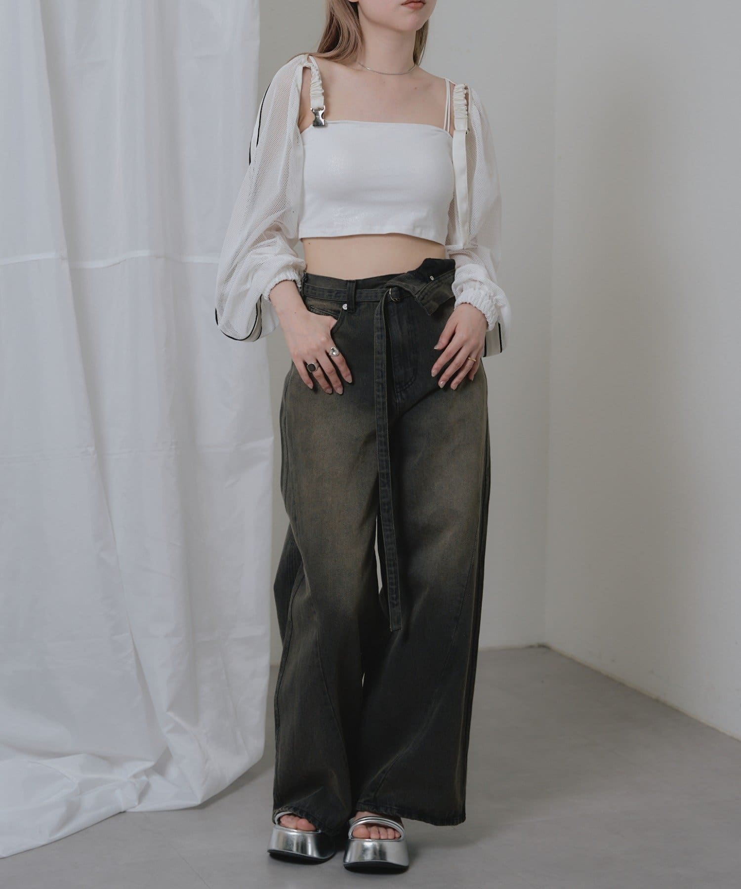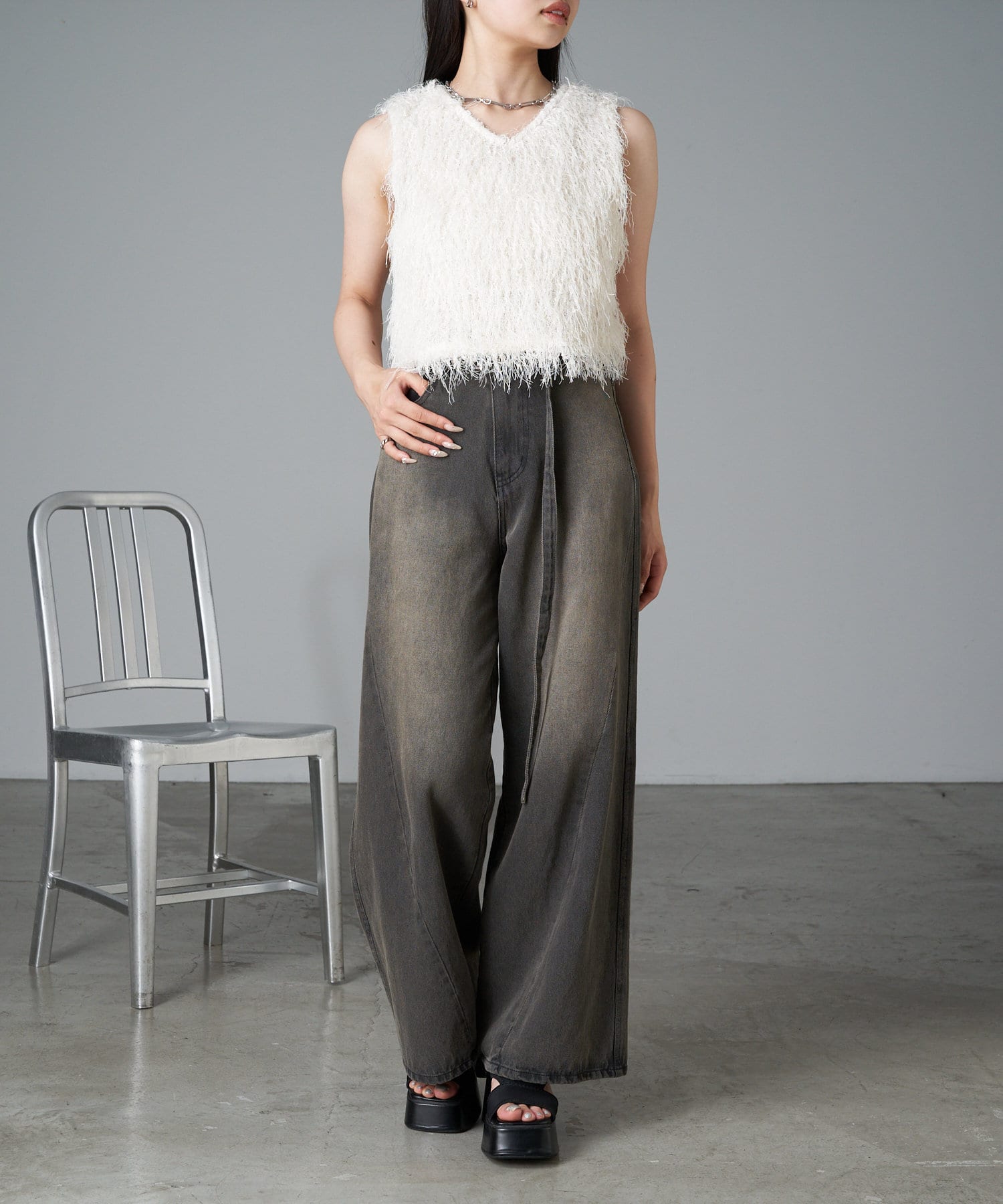 【RAY CASSIN】ウエスト折り返しワイドデニムパンツ