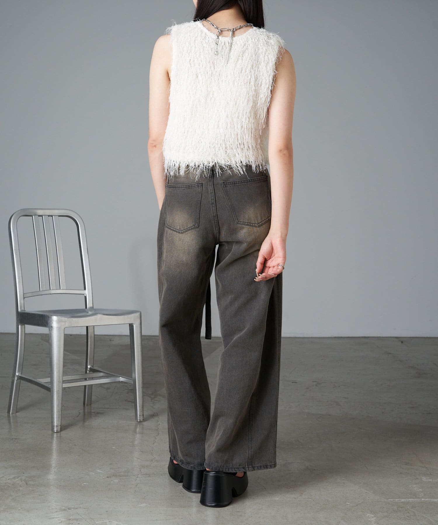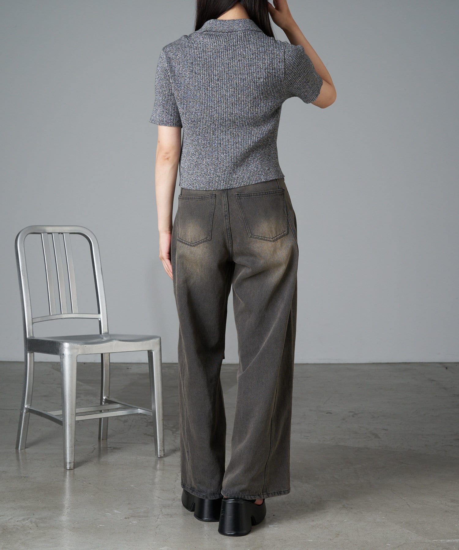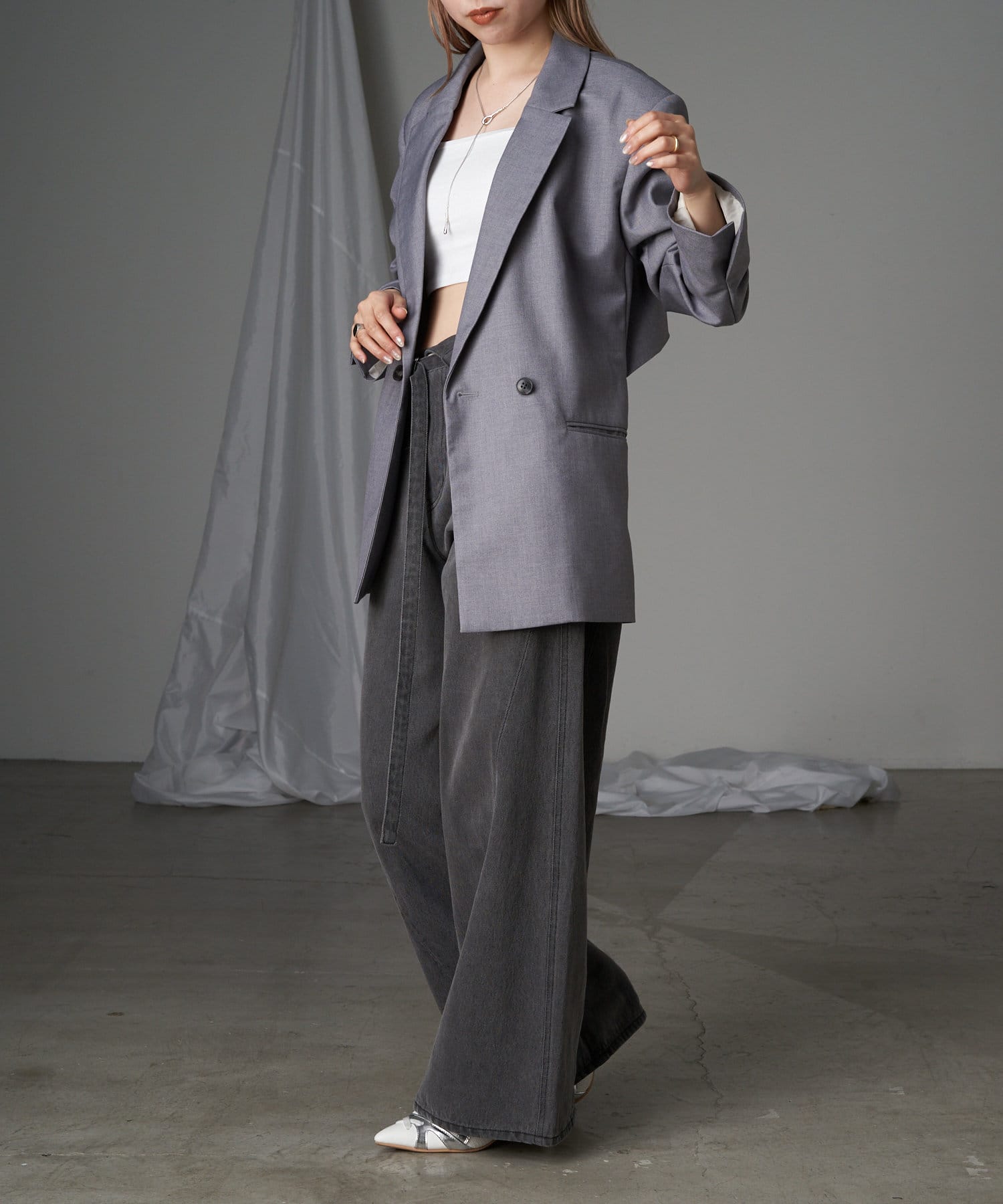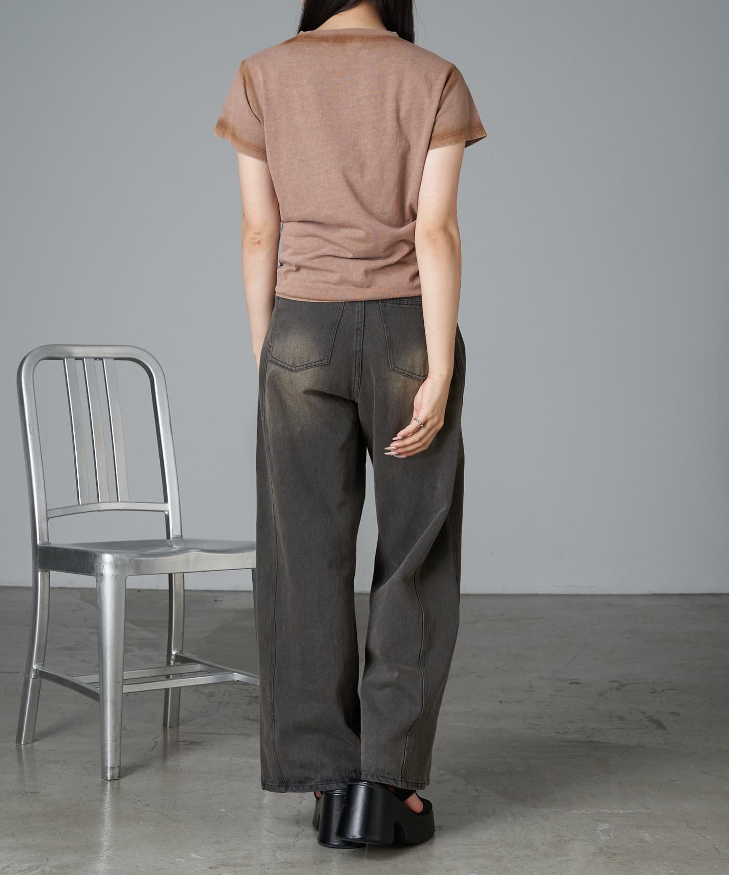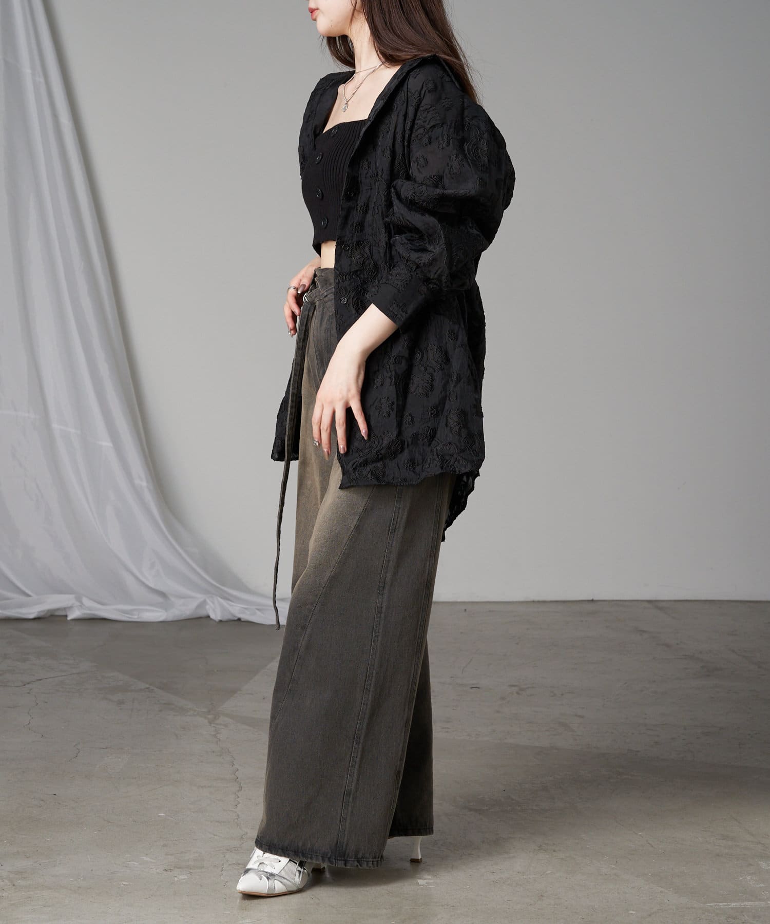 【RAY CASSIN】ウエスト折り返しワイドデニムパンツ