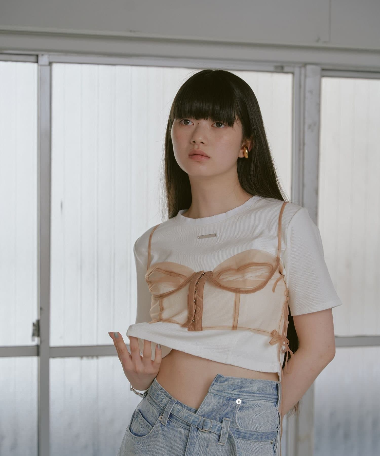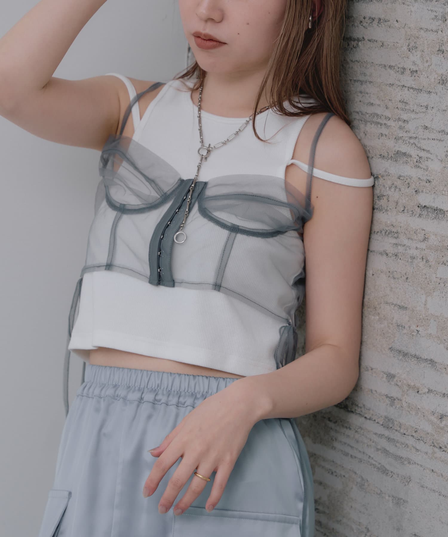 TOP > OUTLET > レディース > トップス > シャツ/ブラウス(ボタン) > 【RAY CASSIN】チュールカップデザインビスチェ