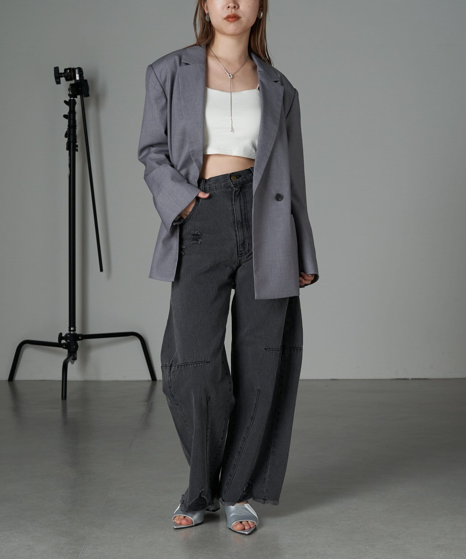 オーバーサイズのシルエットにバックスリットが施されたデザインは、
