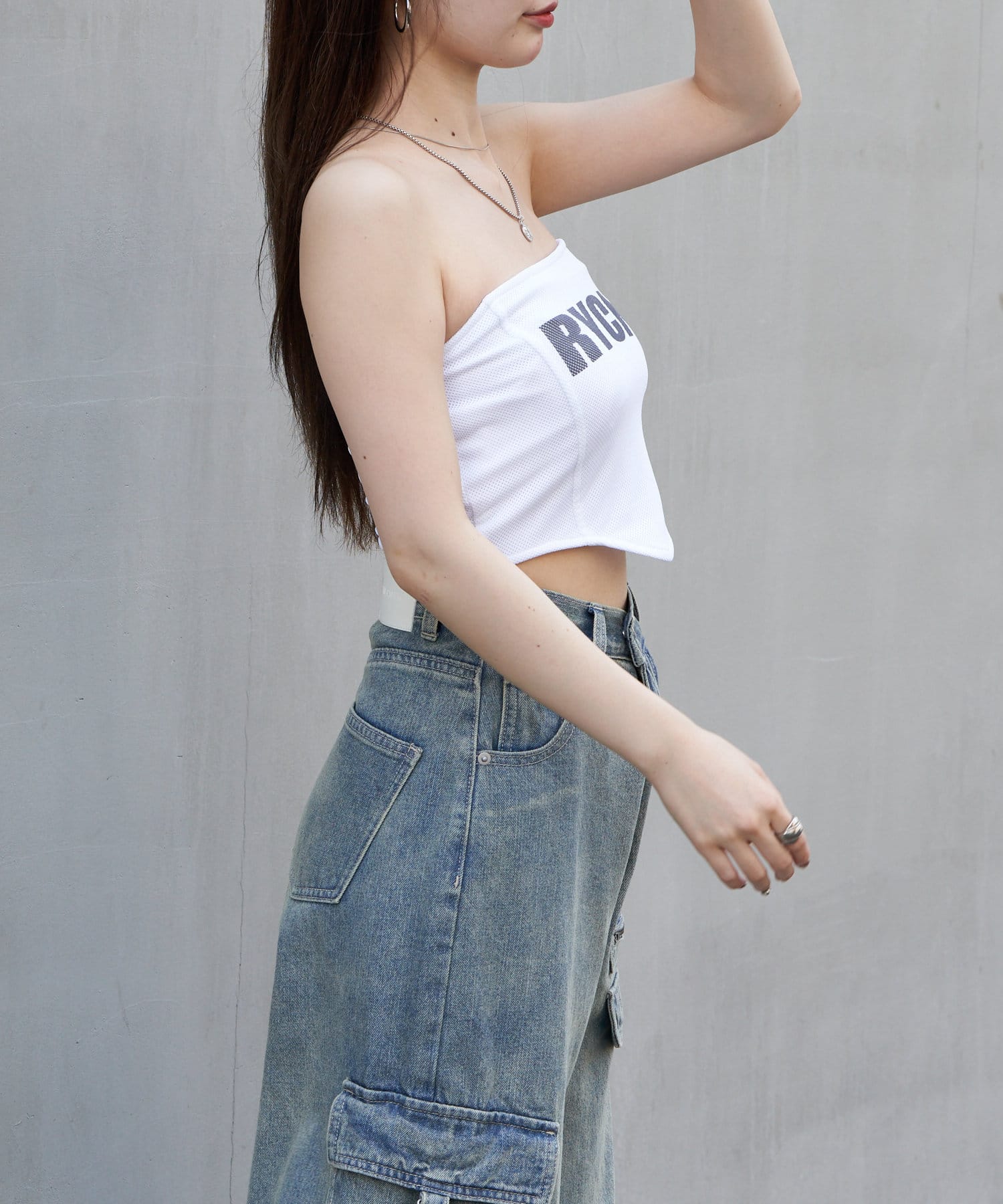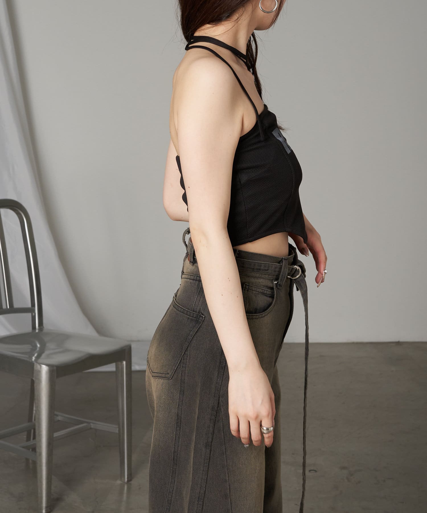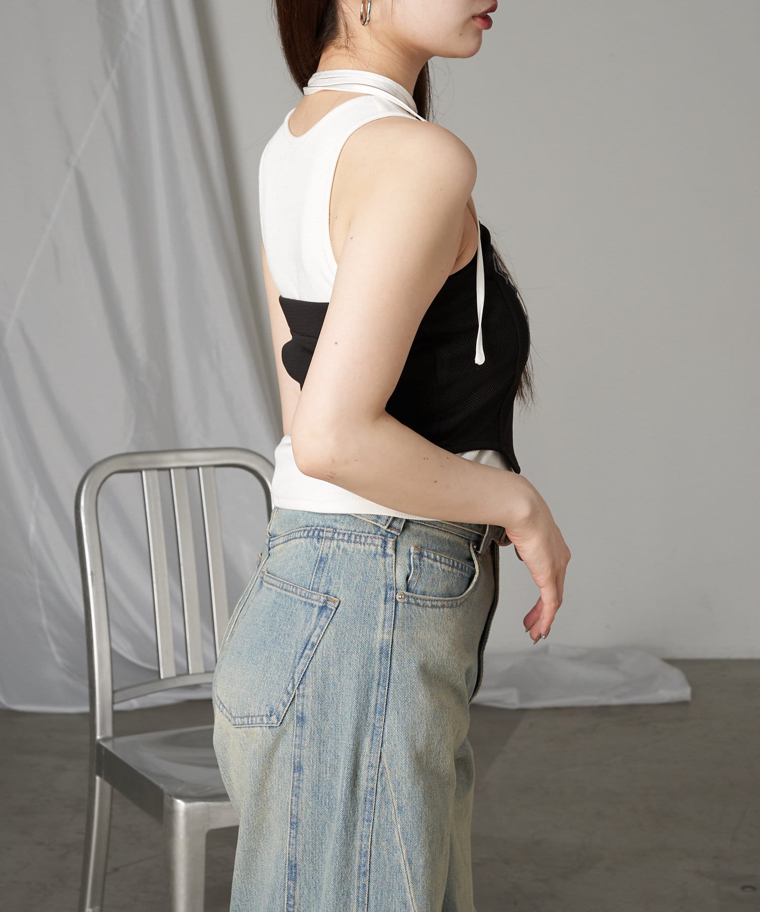 メッシュ素材でスポーティな印象に仕上げたビスチェ。