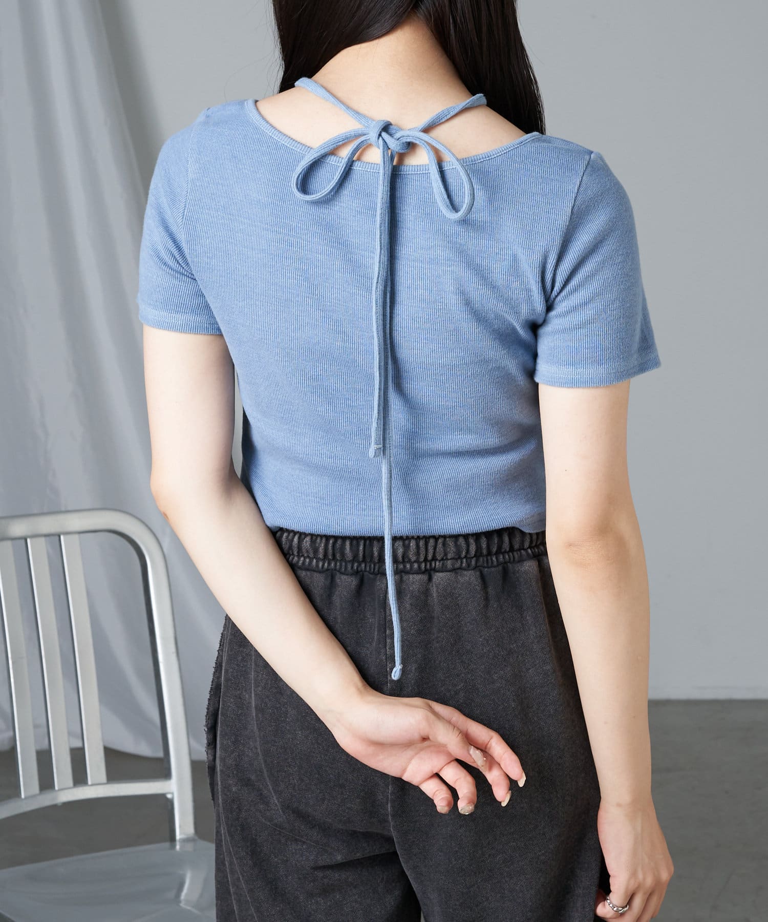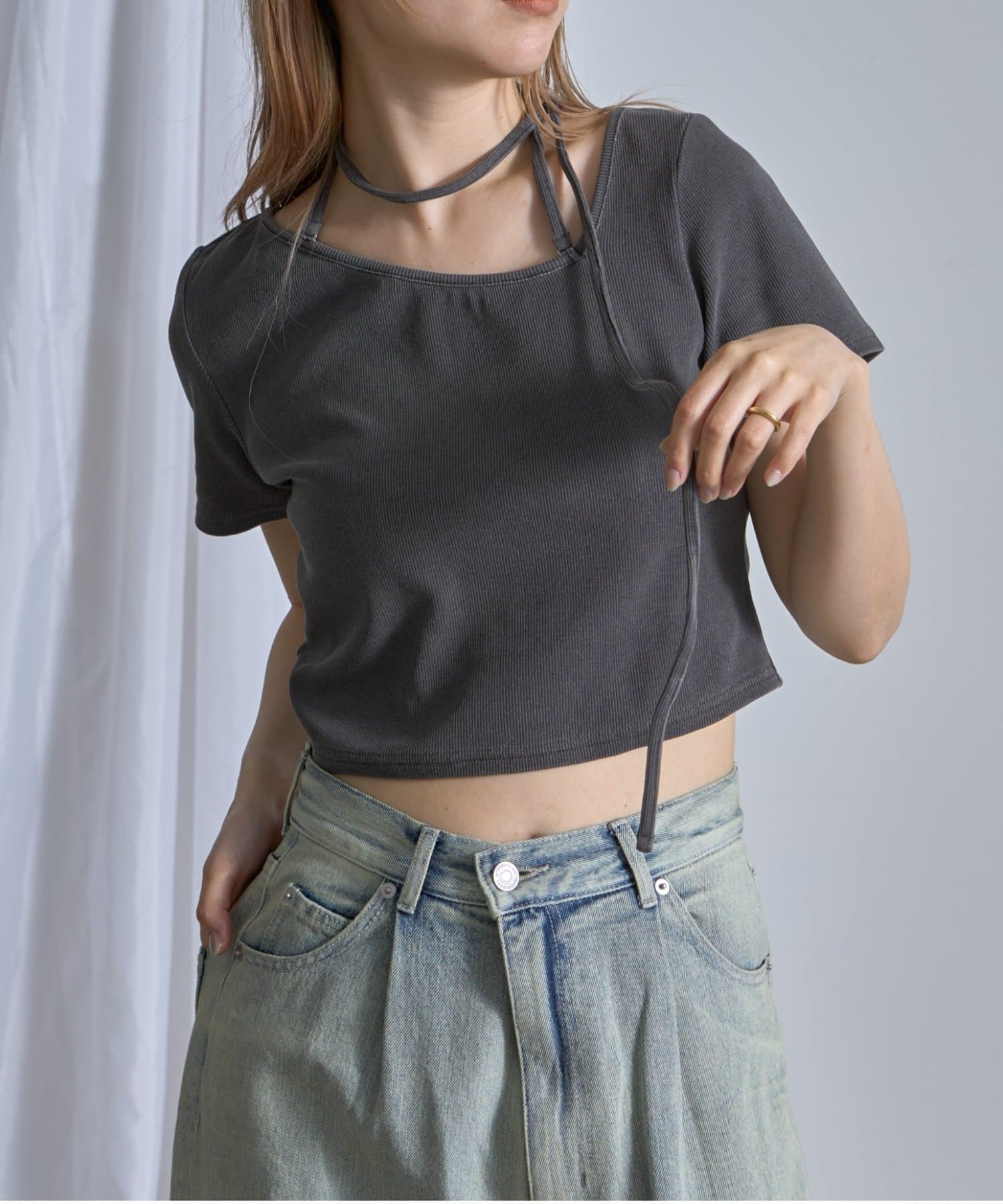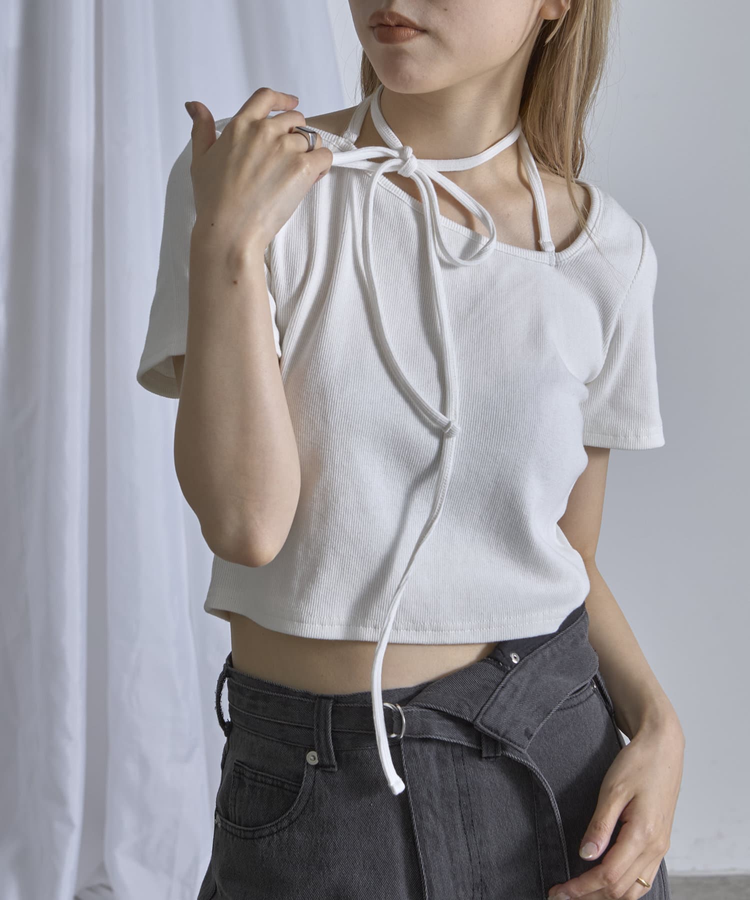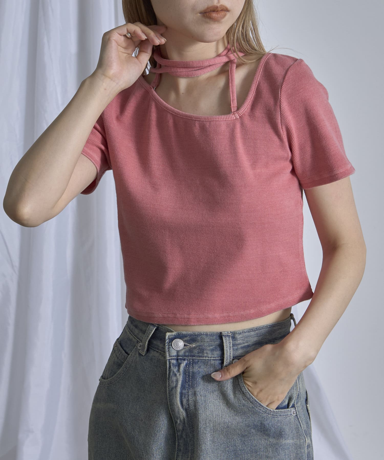 首元のリボンでトレンドのチョーカーアレンジも叶うTシャツ。