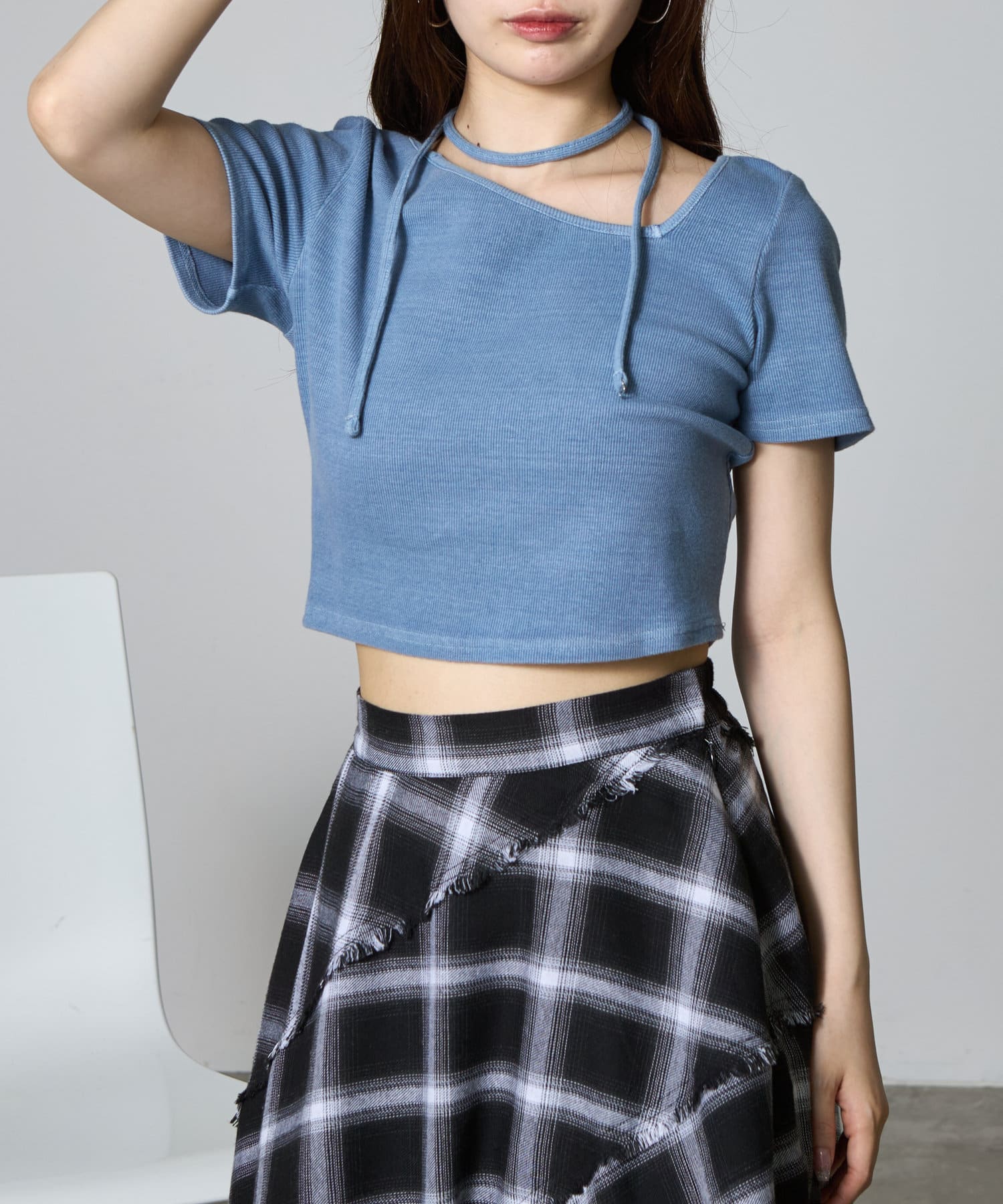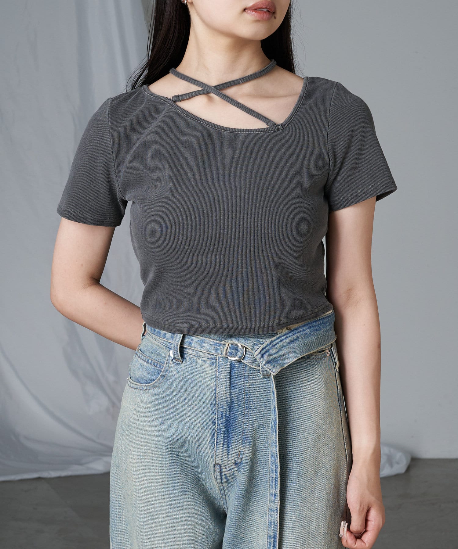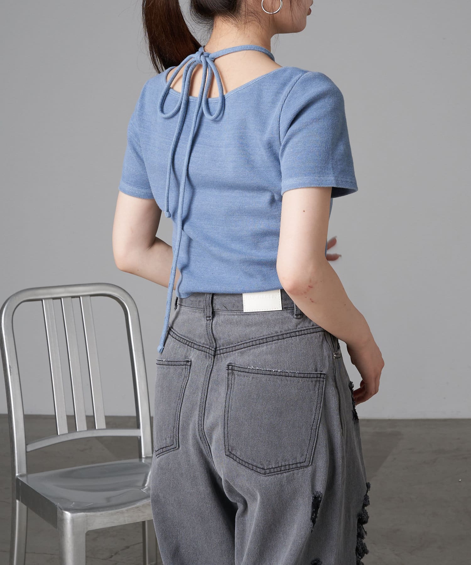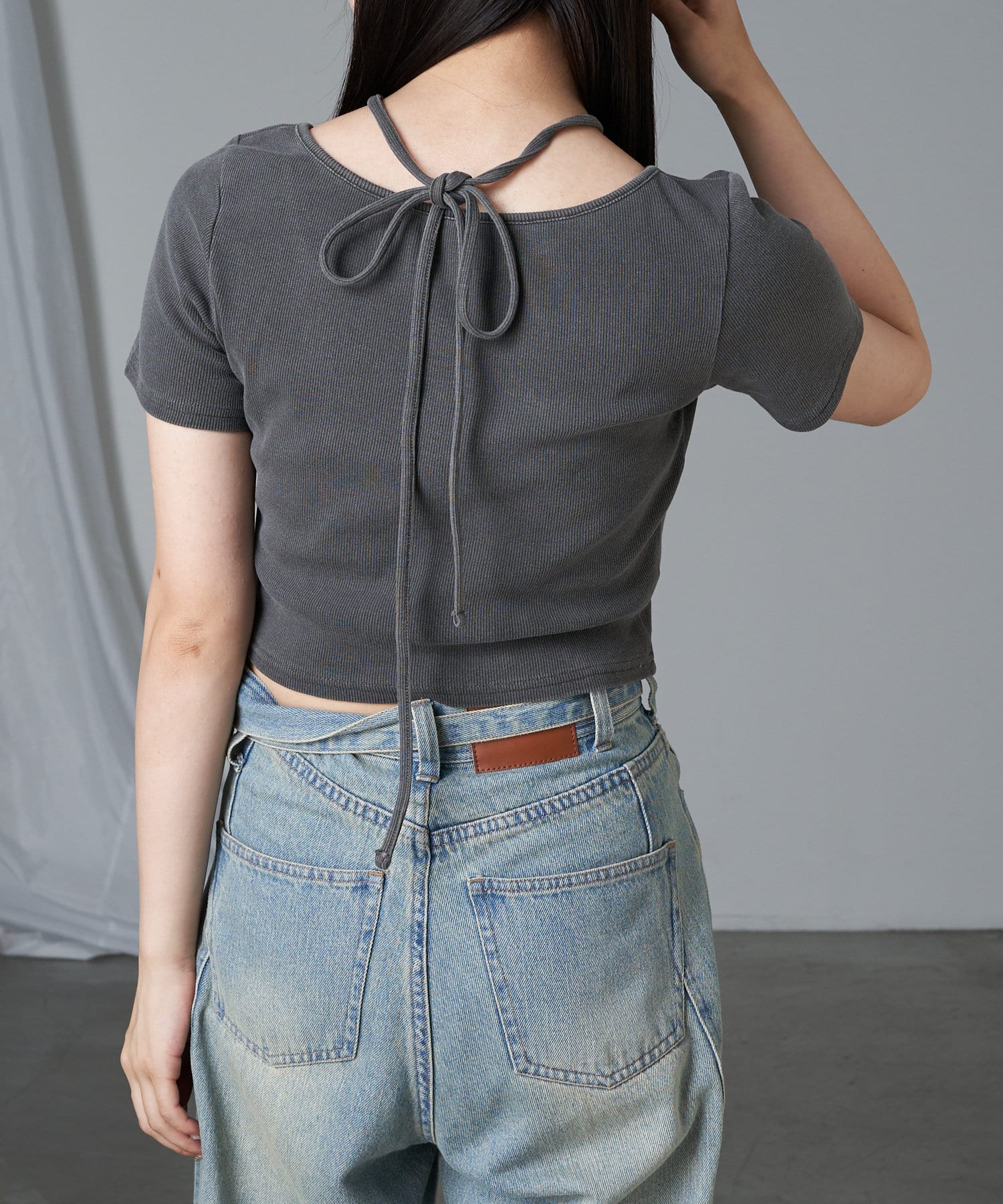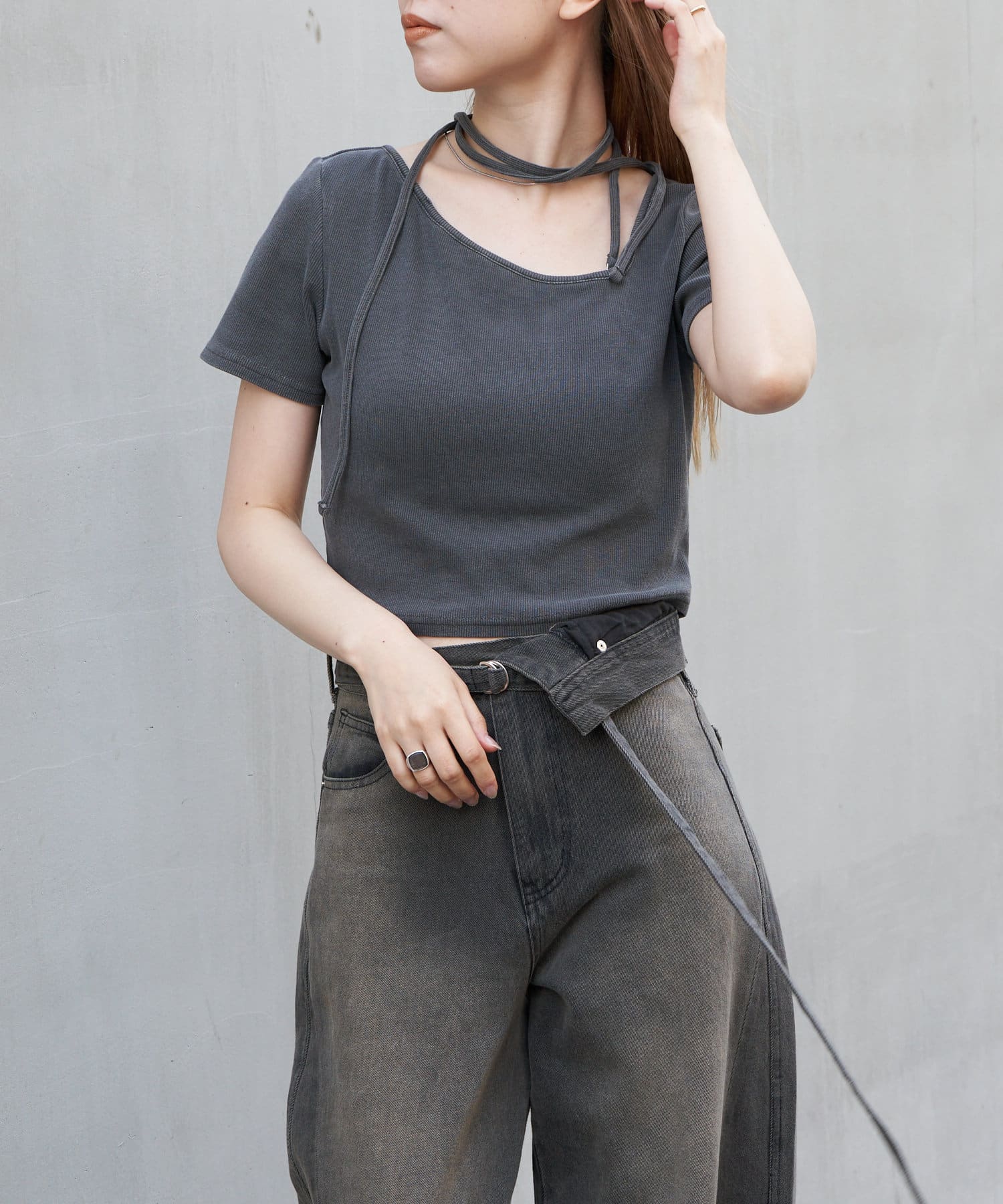 首元のリボンでトレンドのチョーカーアレンジも叶うTシャツ。