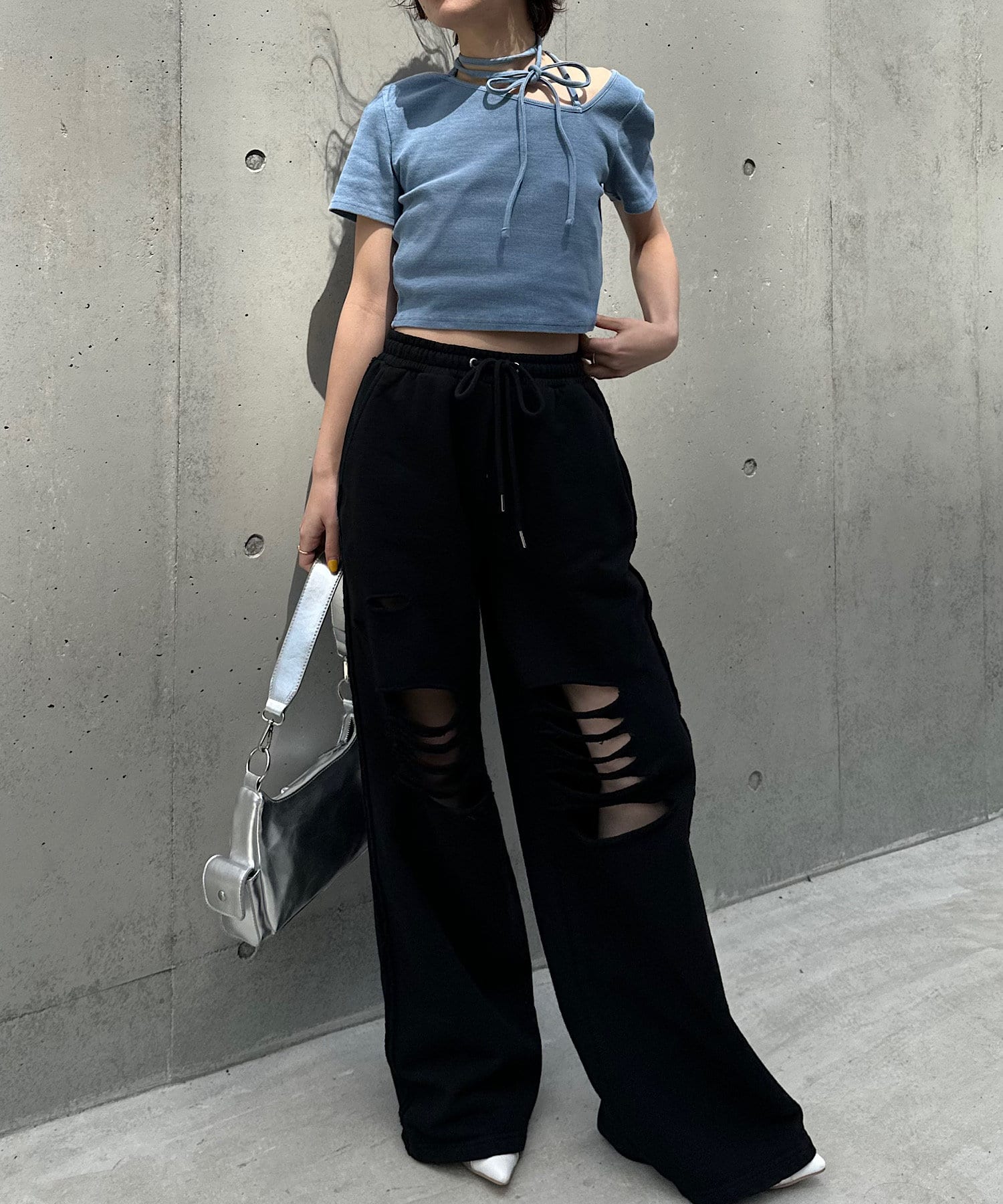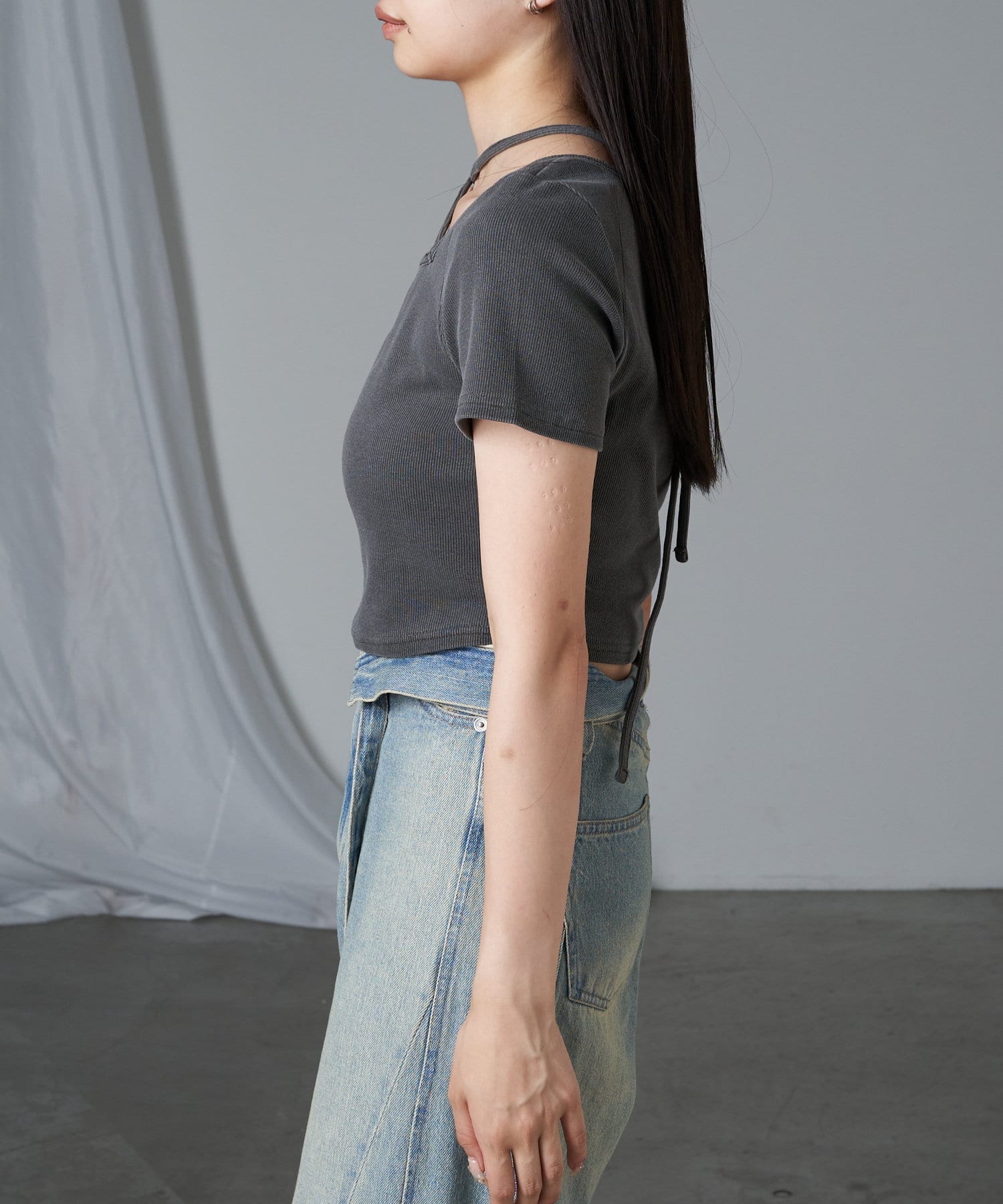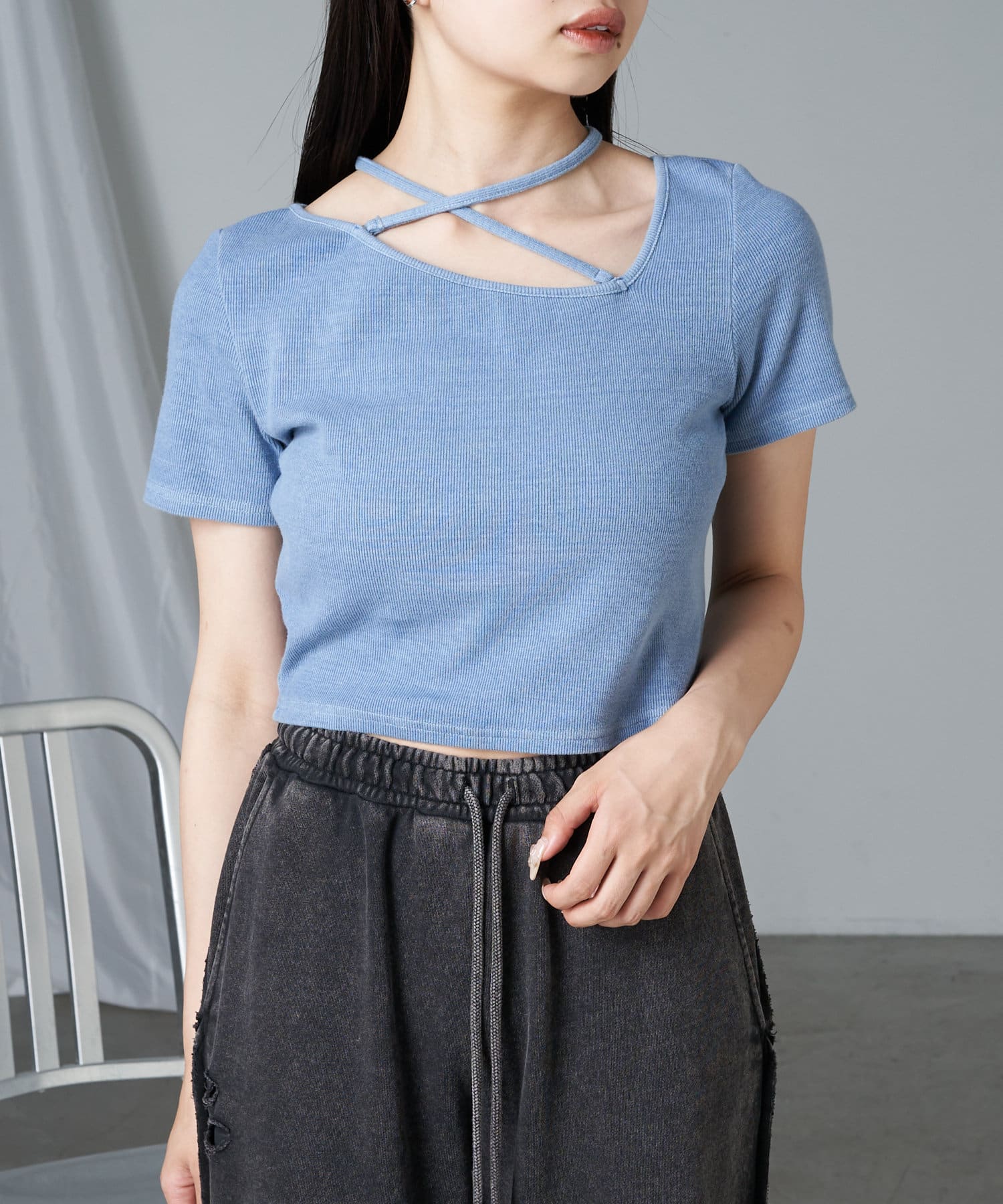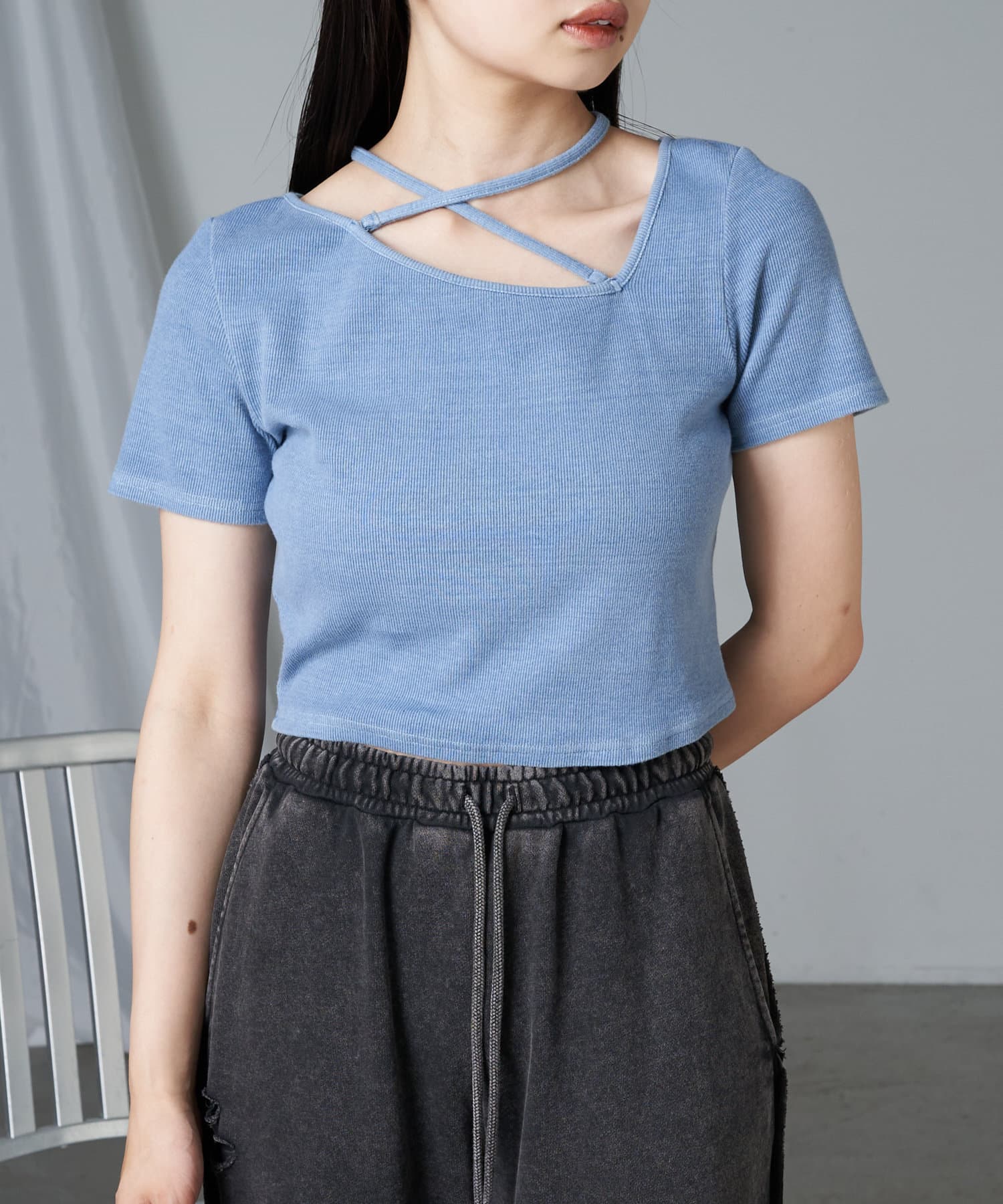 首元のリボンでトレンドのチョーカーアレンジも叶うTシャツ。