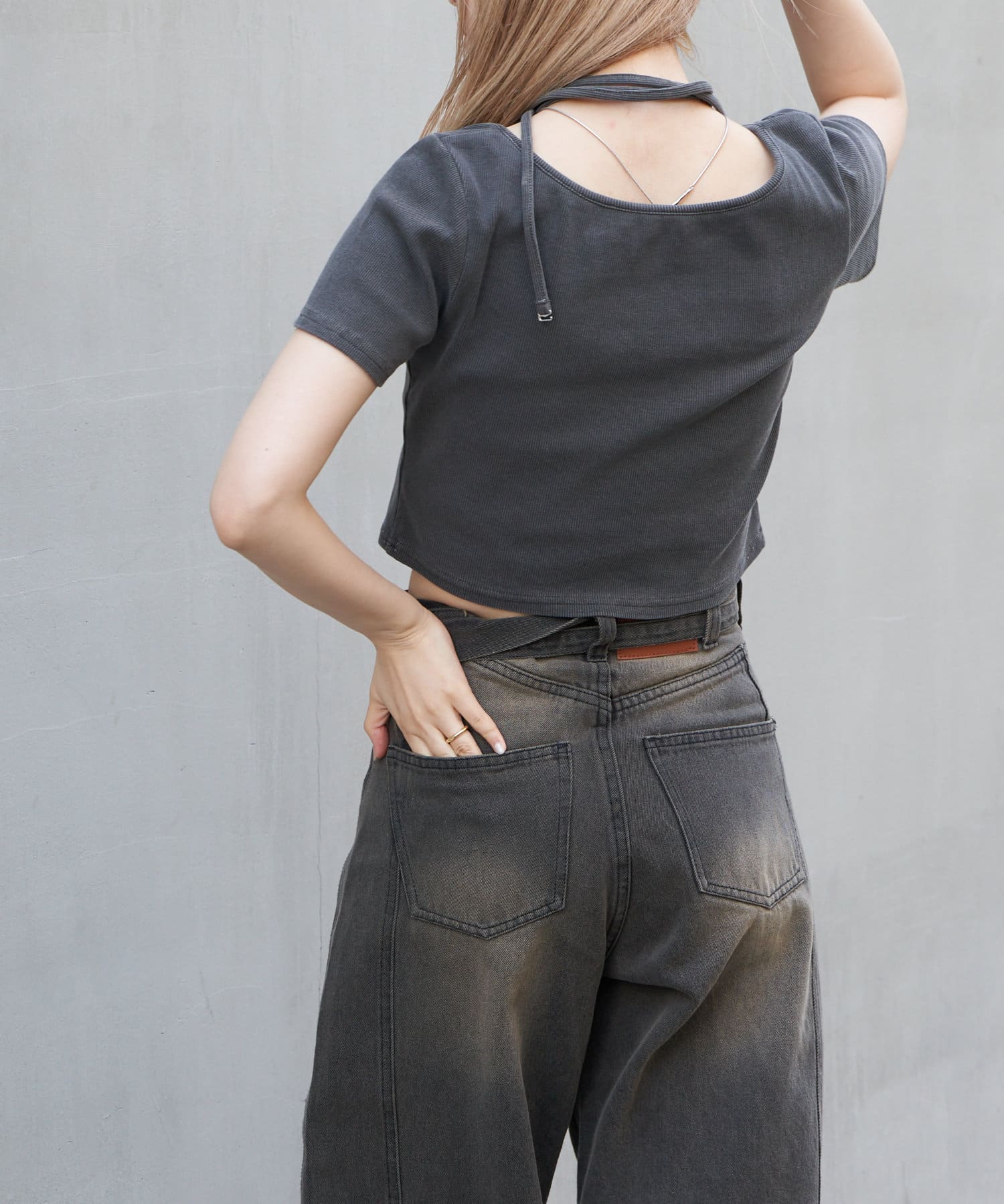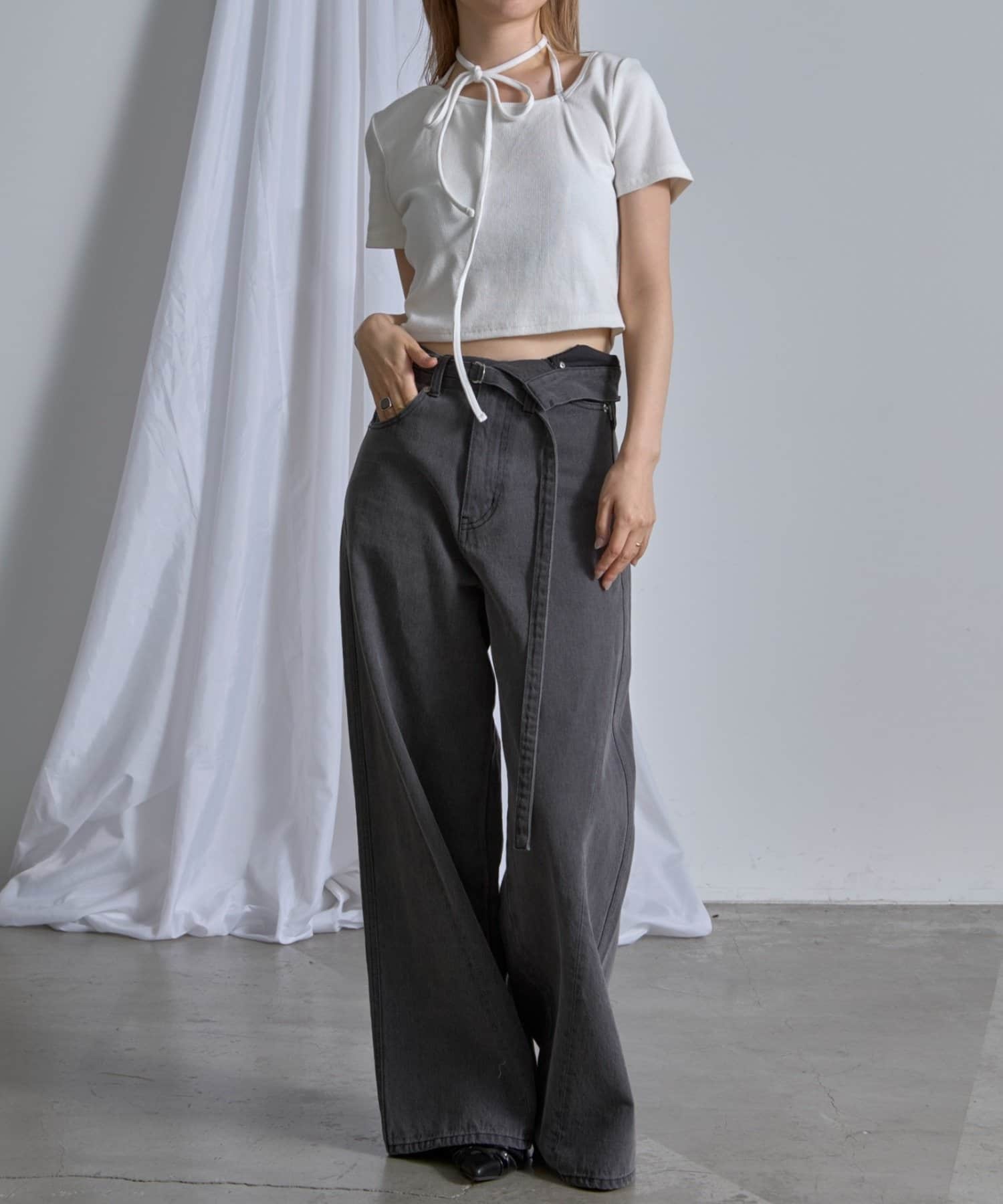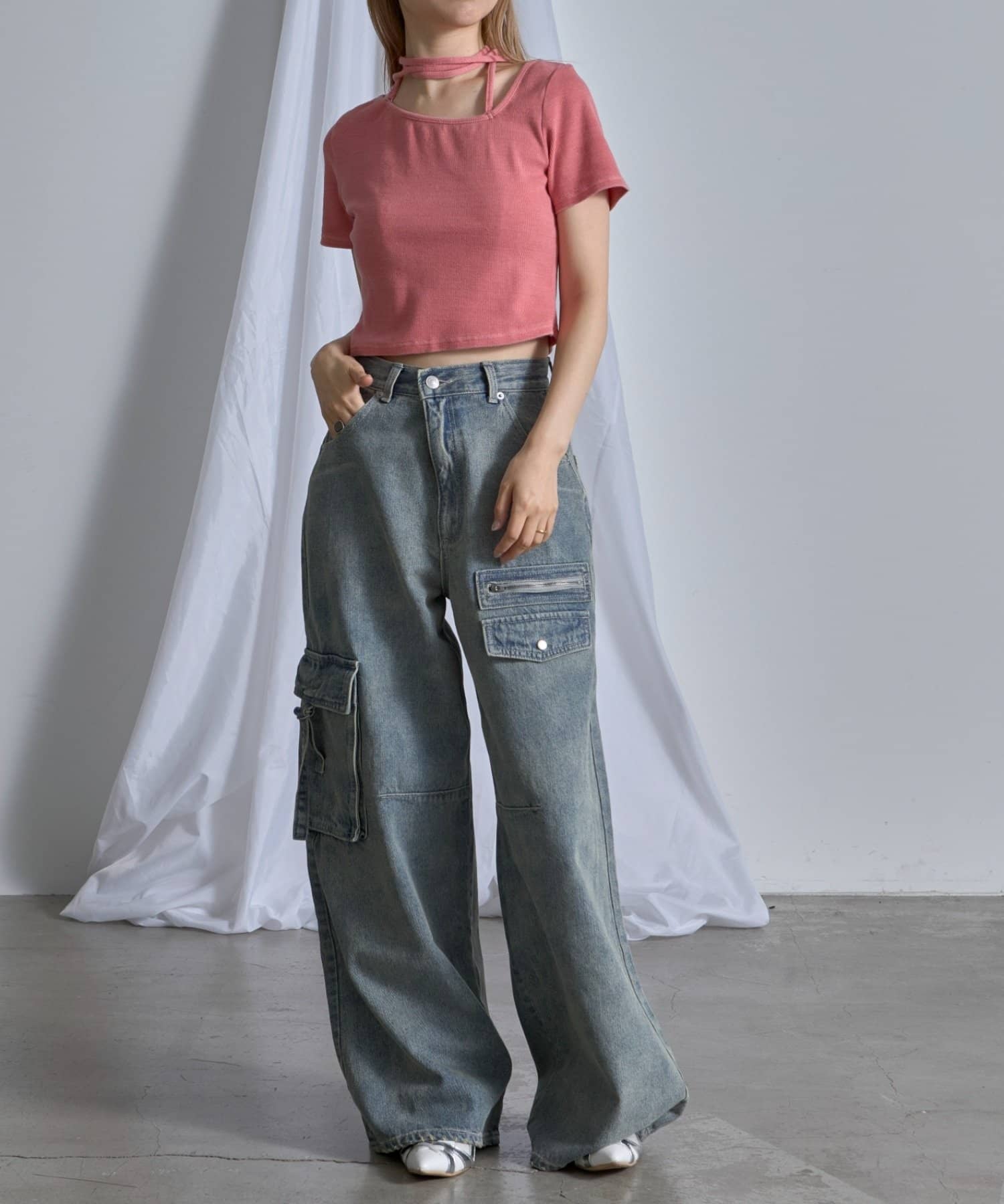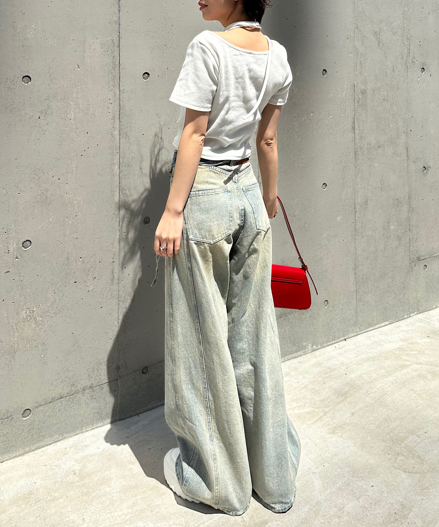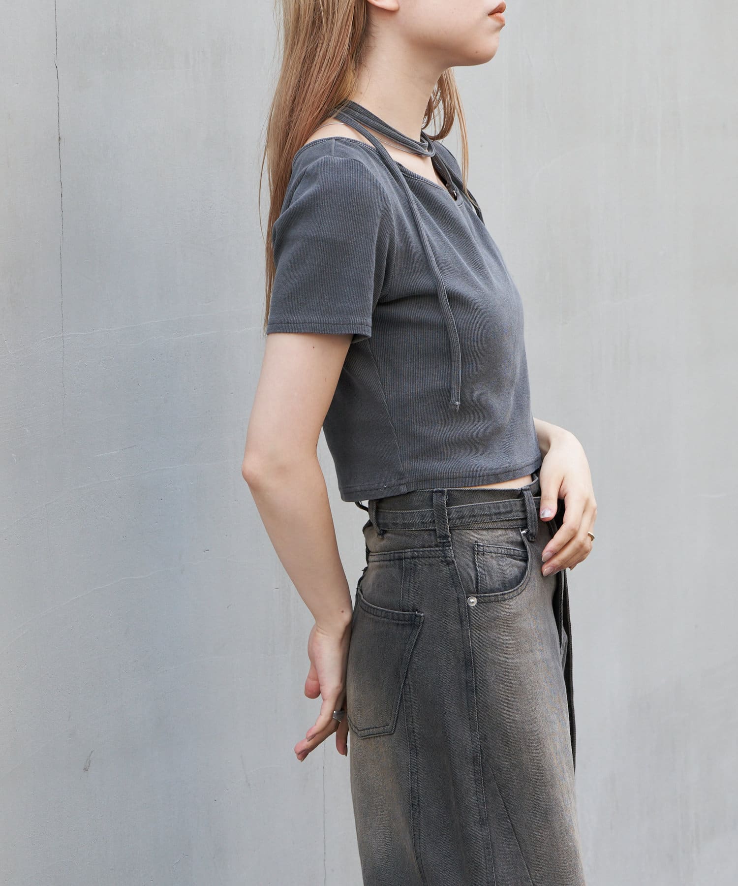 首元のリボンでトレンドのチョーカーアレンジも叶うTシャツ。