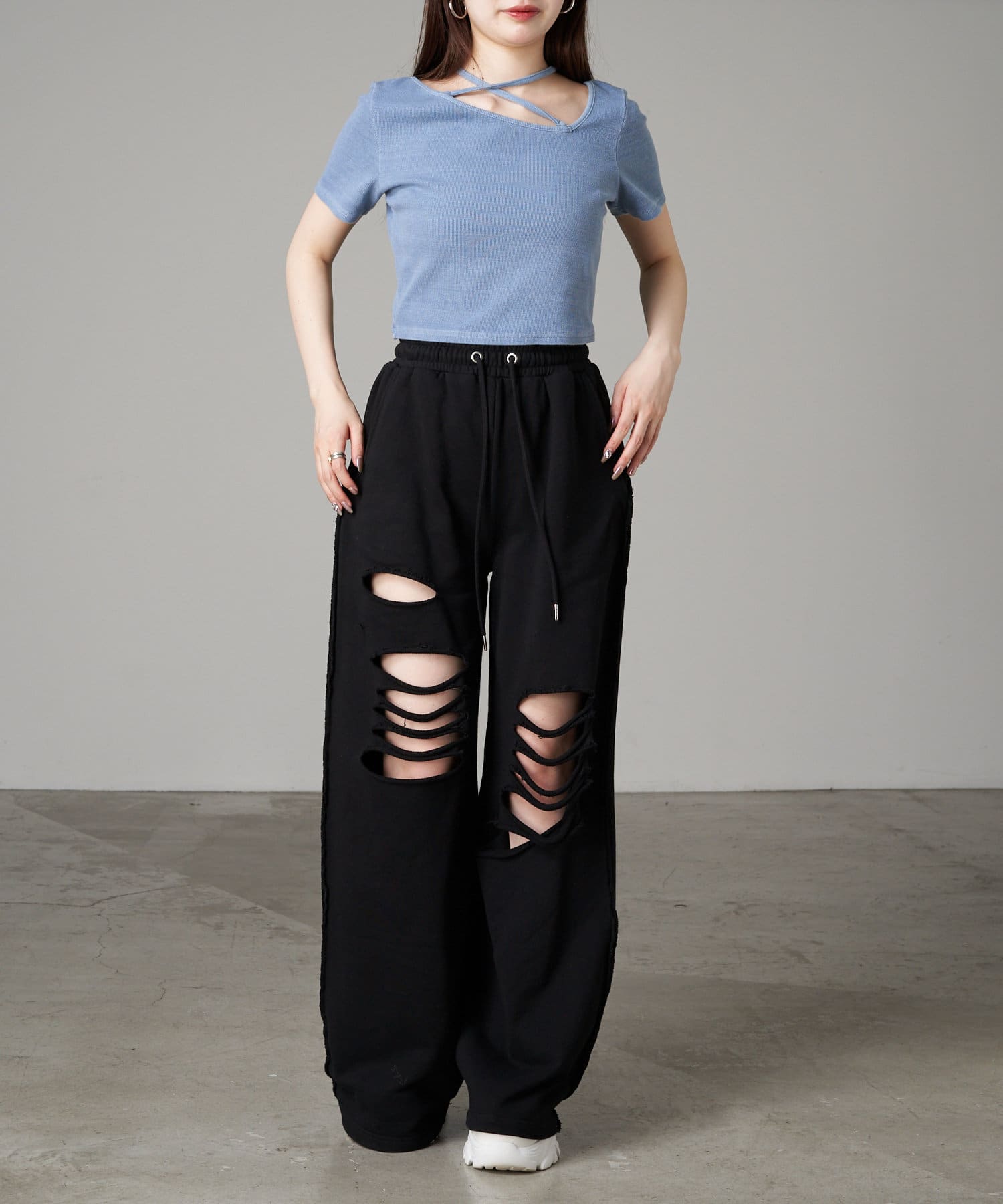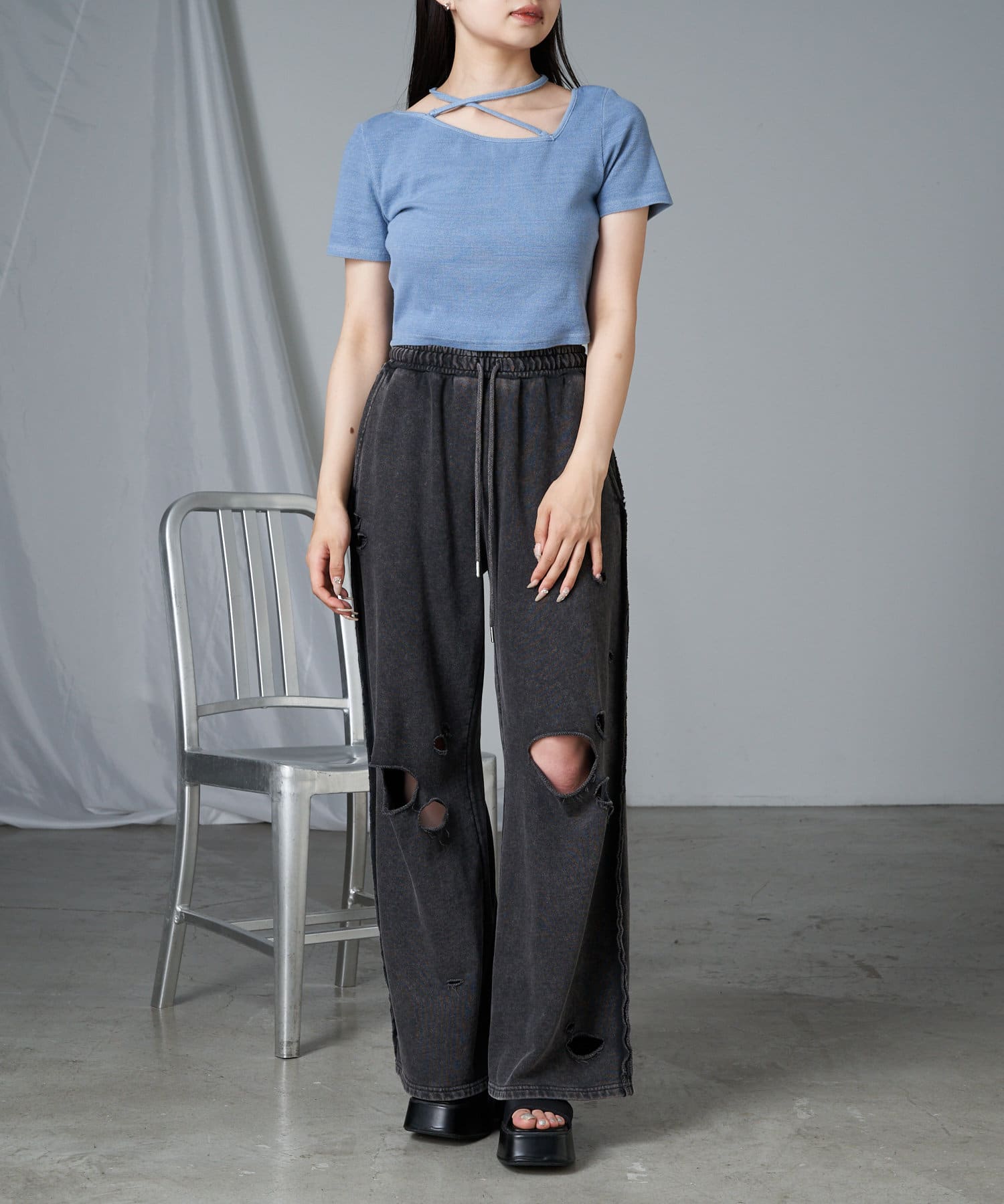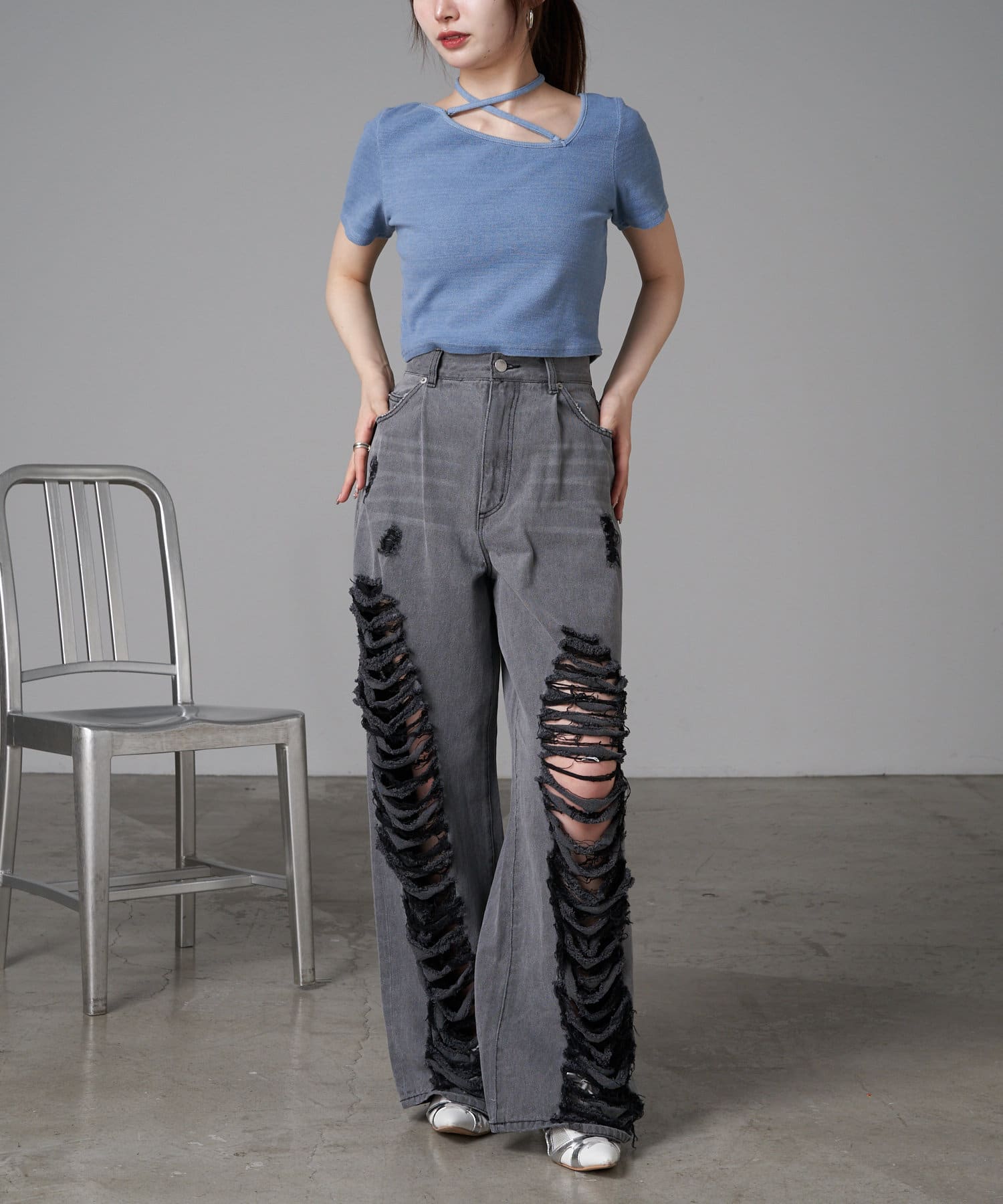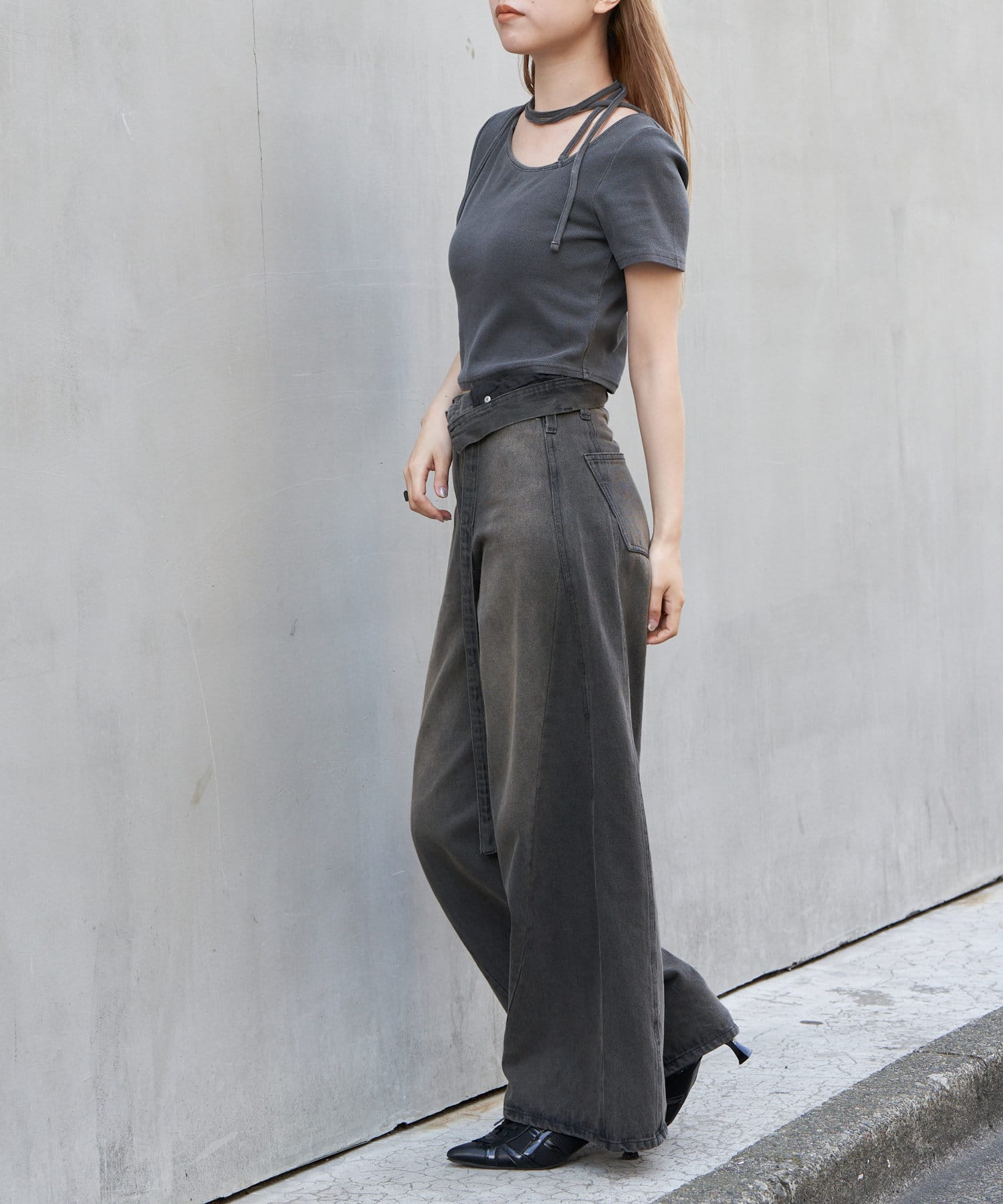 首元のリボンでトレンドのチョーカーアレンジも叶うTシャツ。