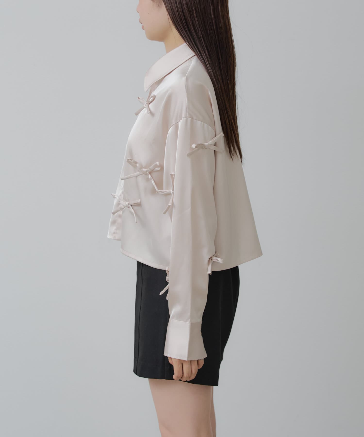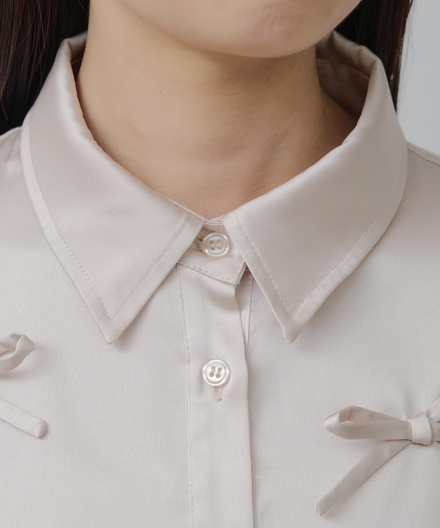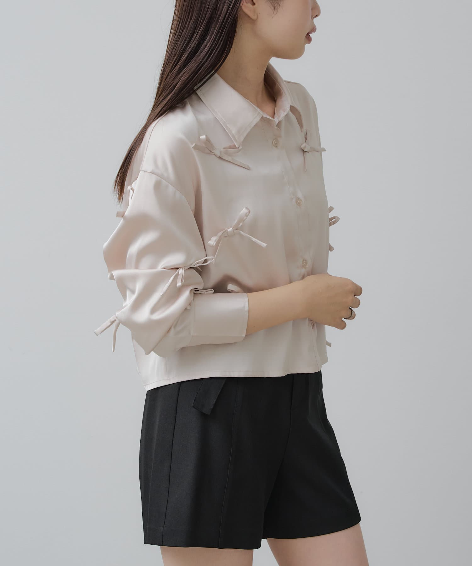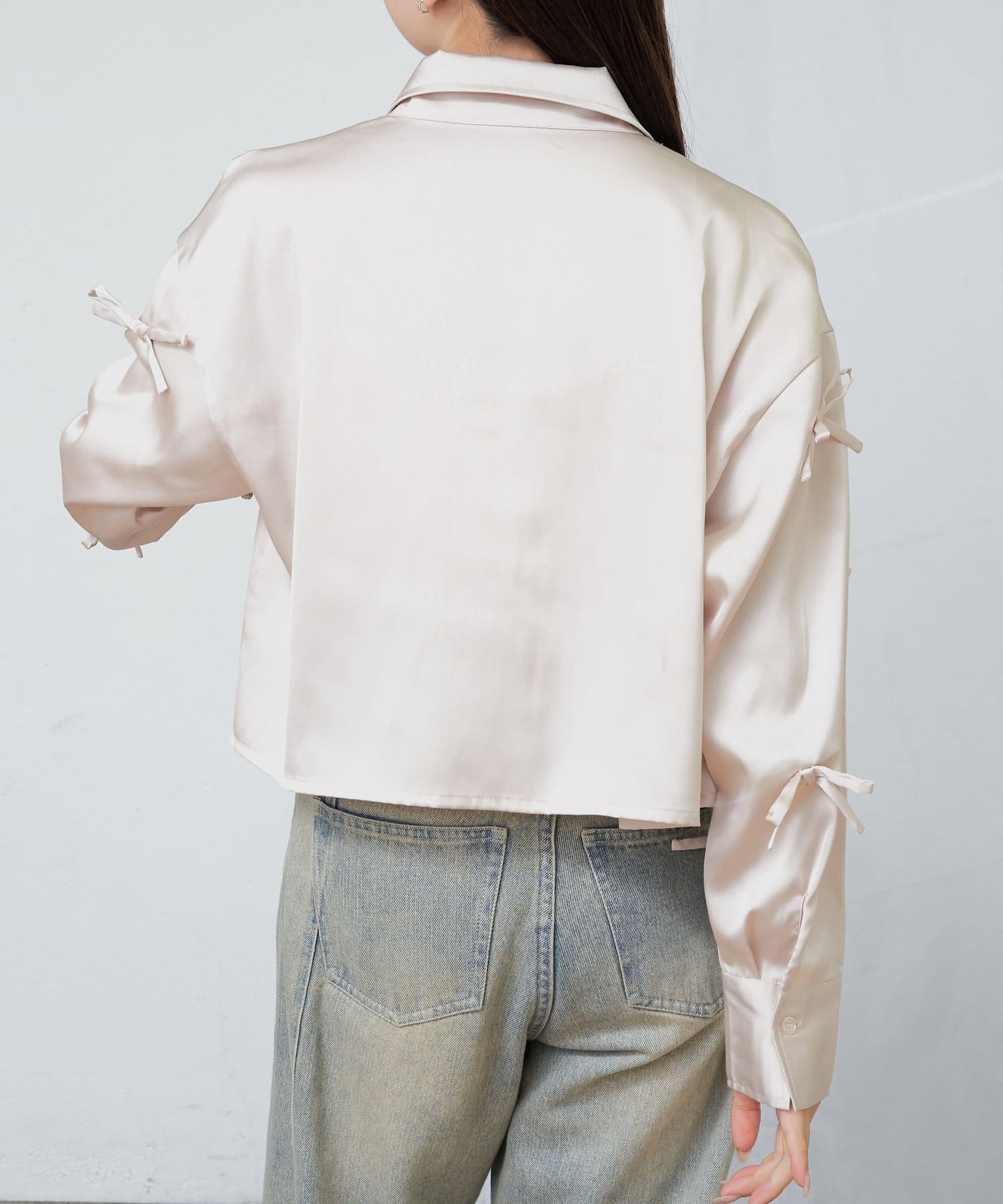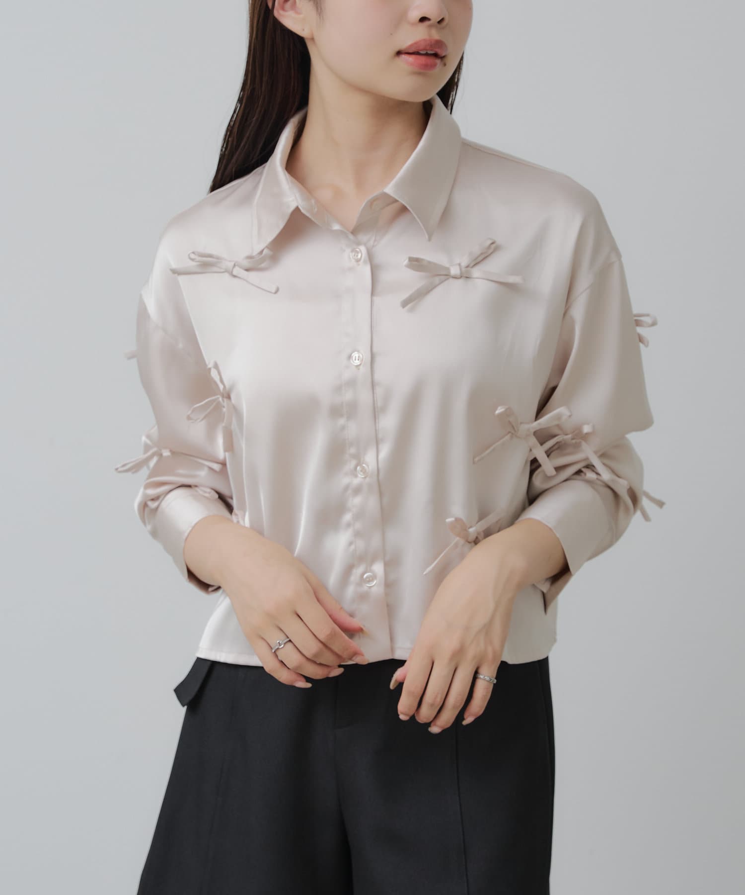【RAY CASSIN】リボン付きサテンルーズシャツ