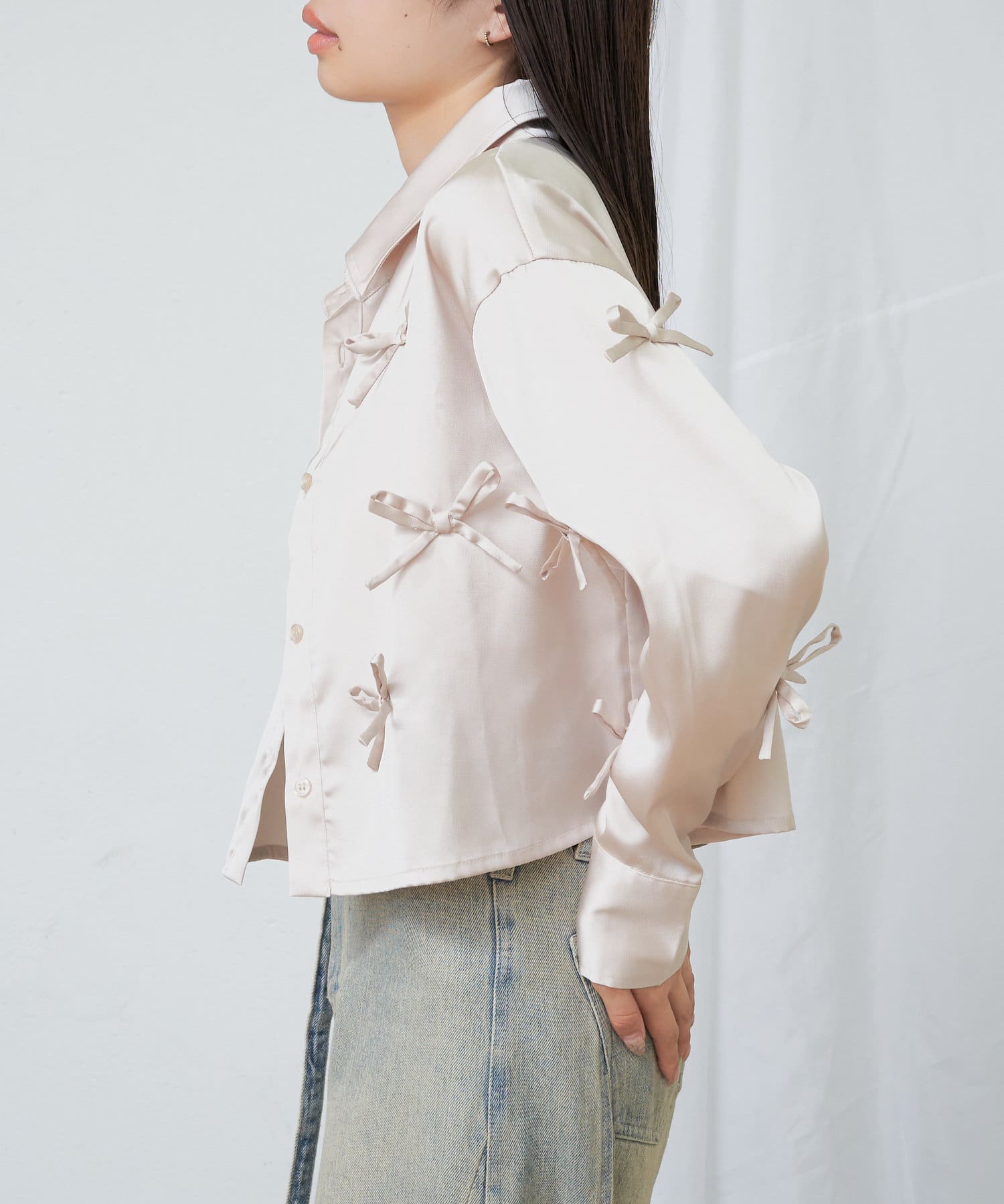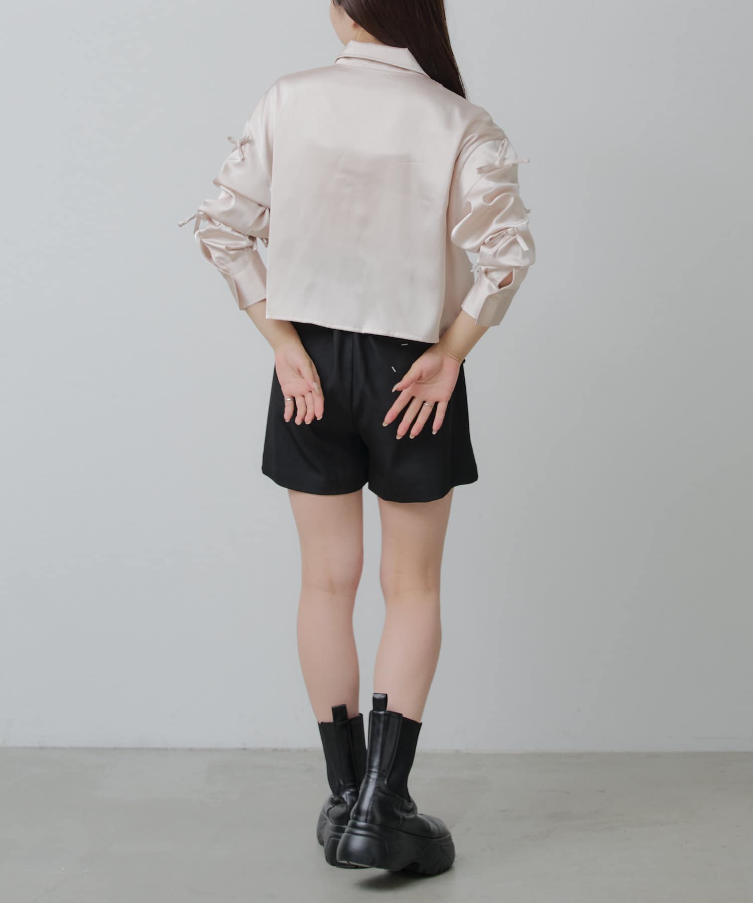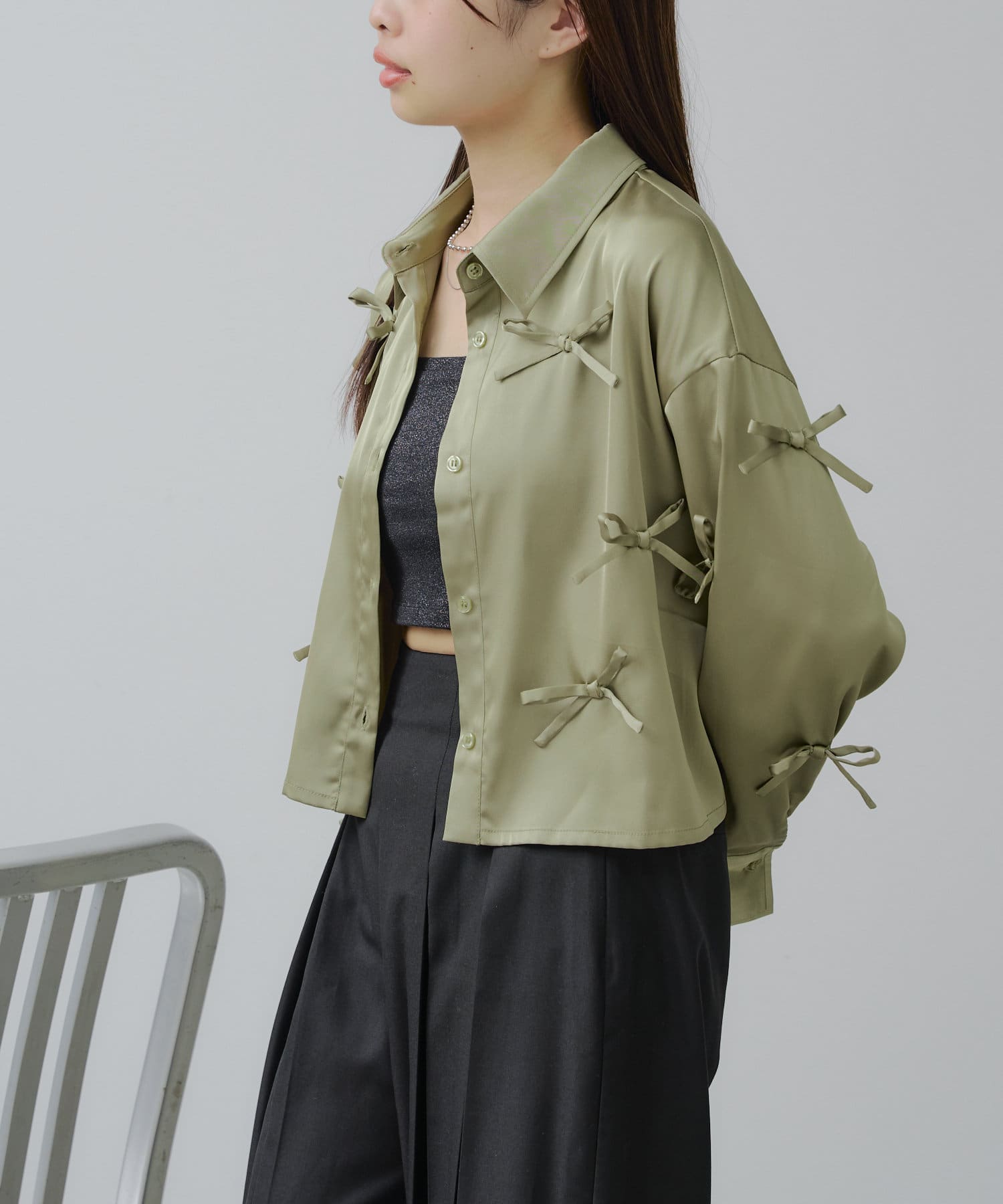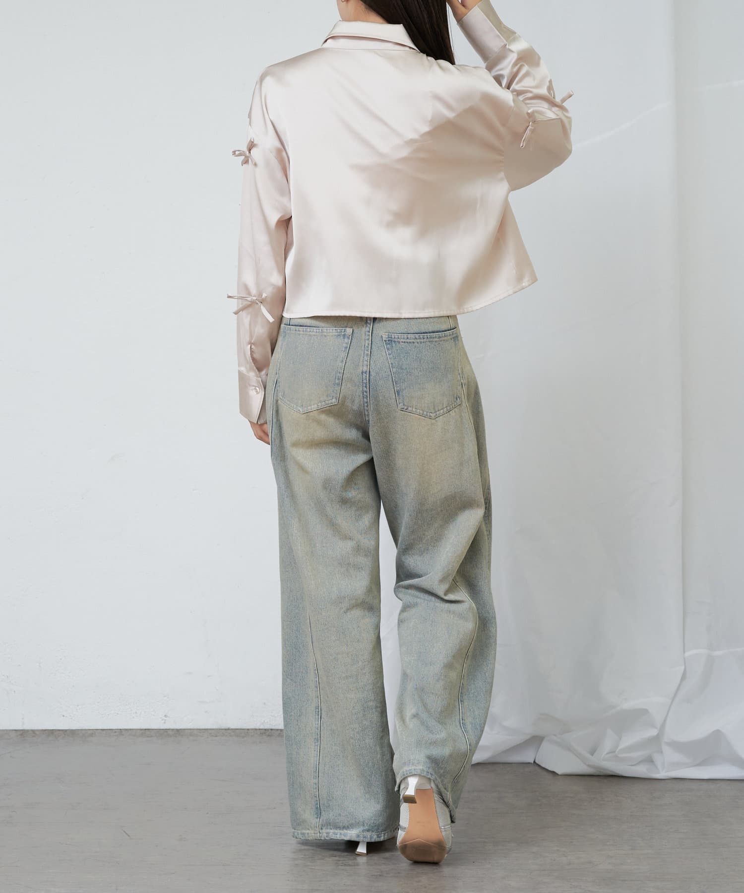 【RAY CASSIN】リボン付きサテンルーズシャツ