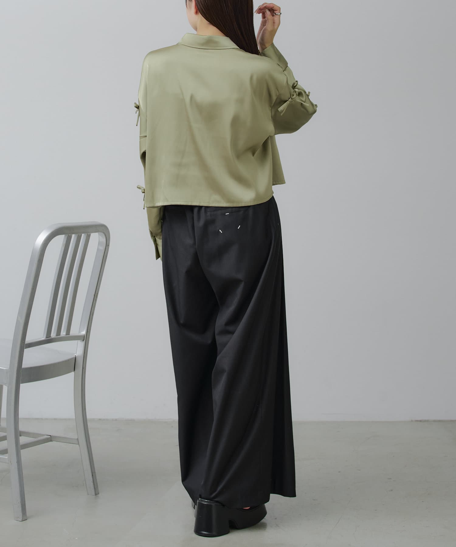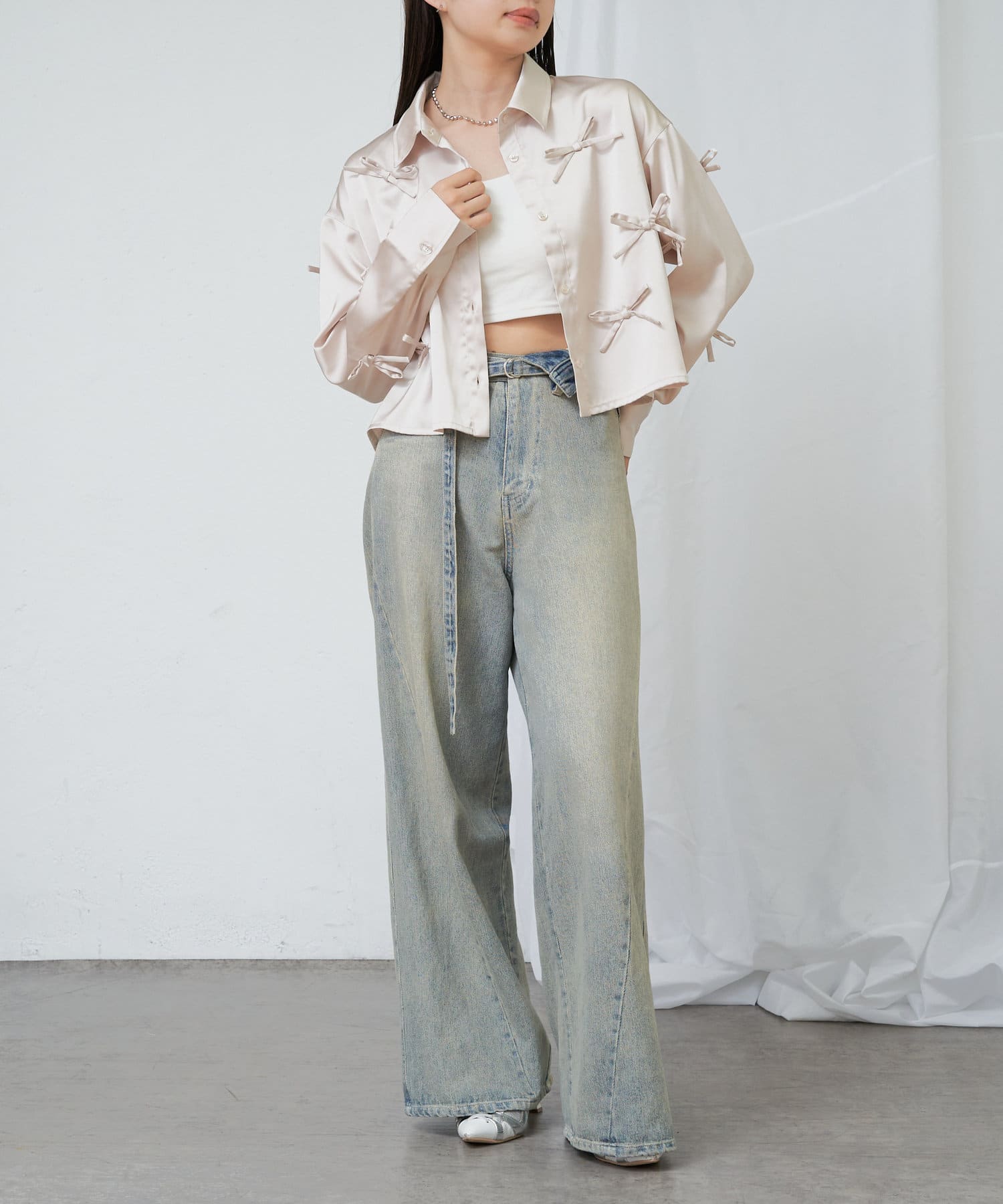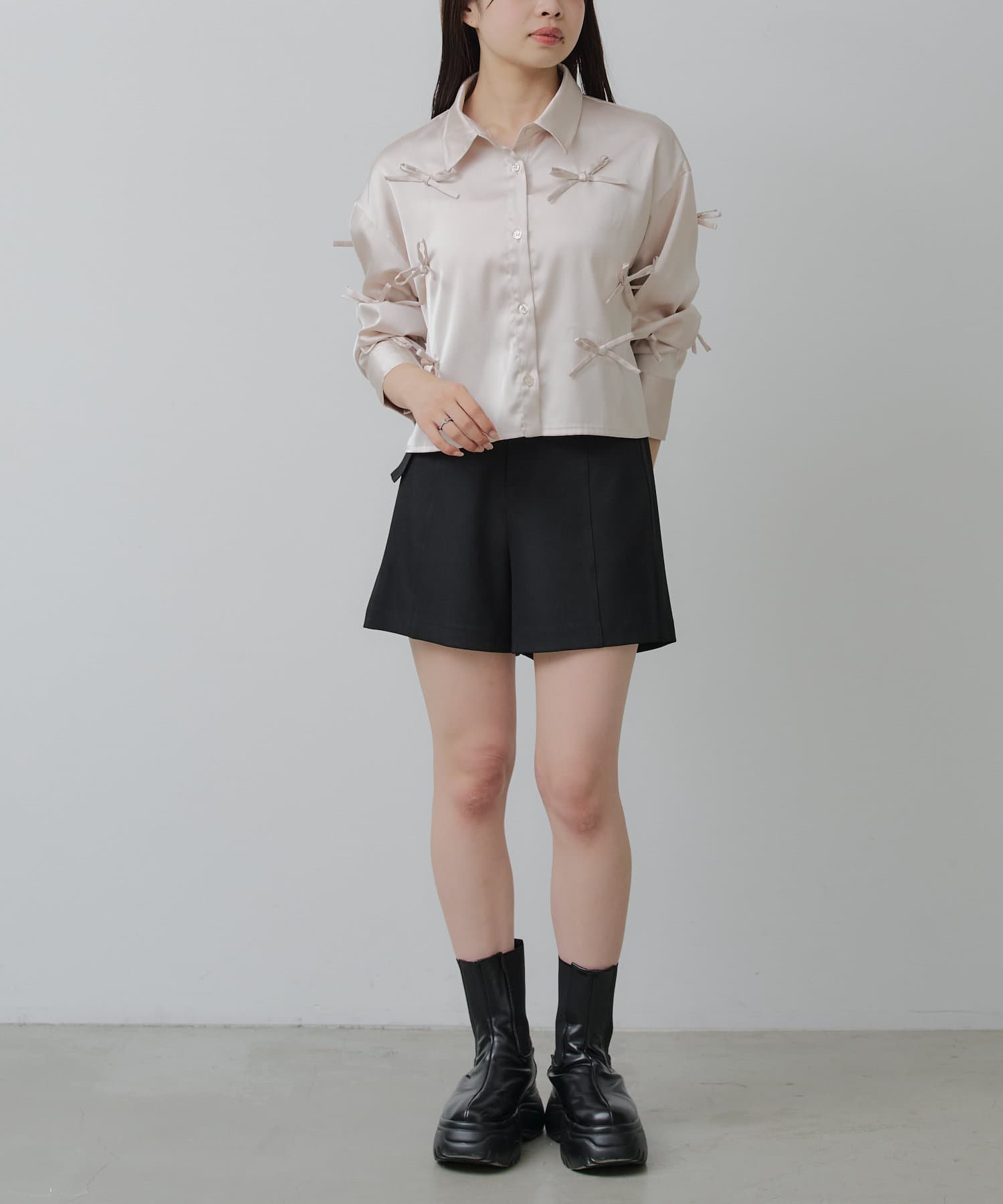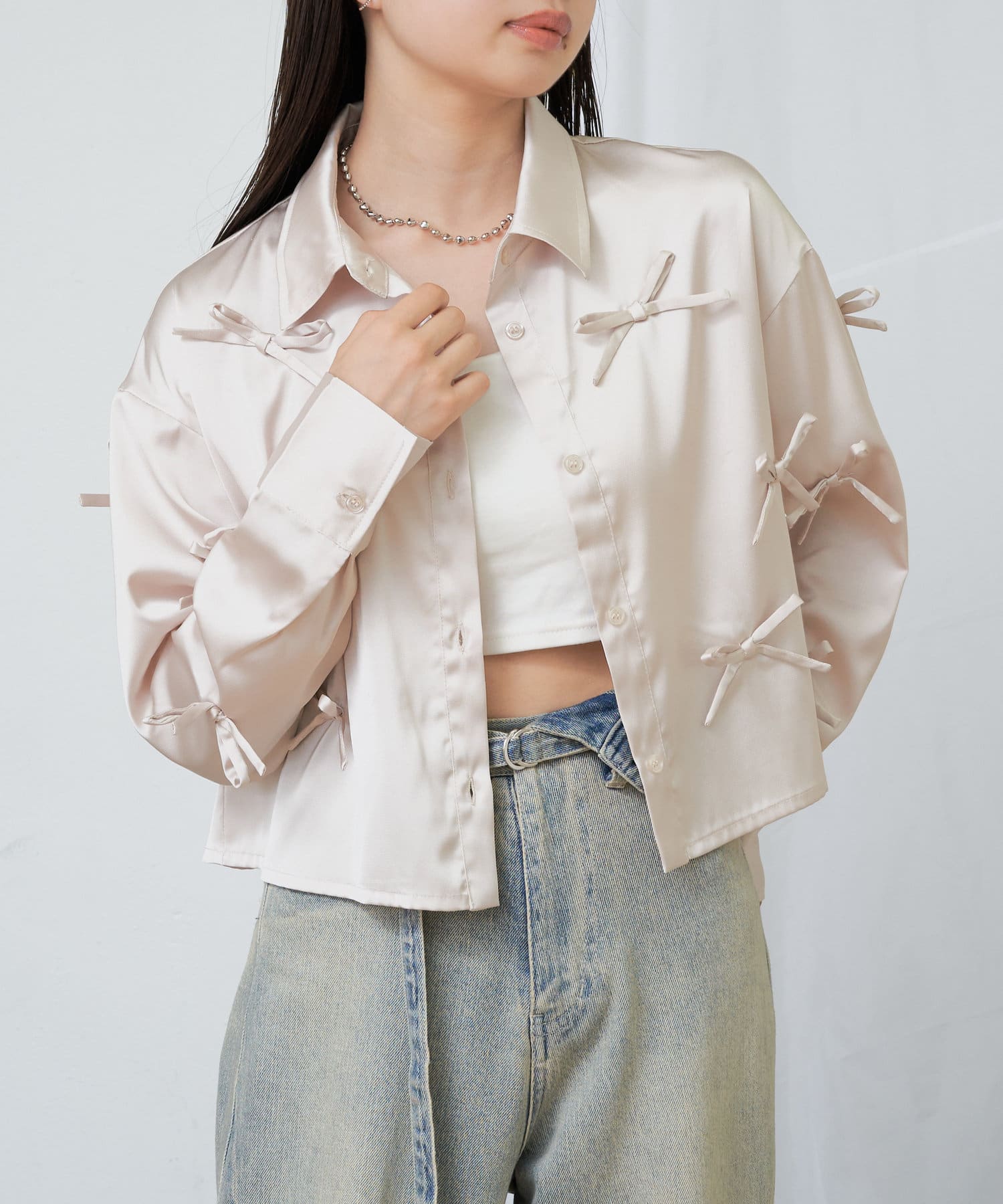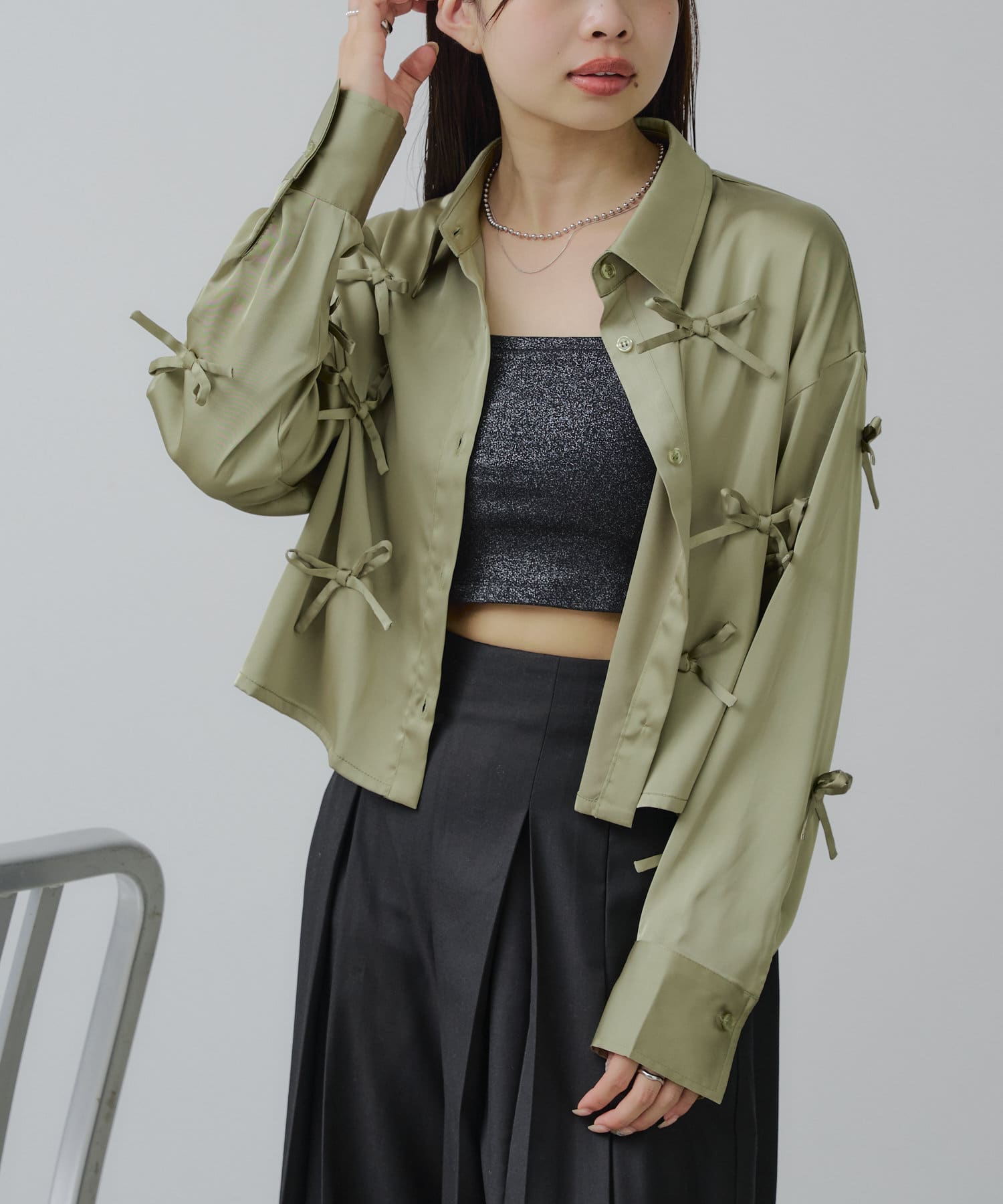 【RAY CASSIN】リボン付きサテンルーズシャツ