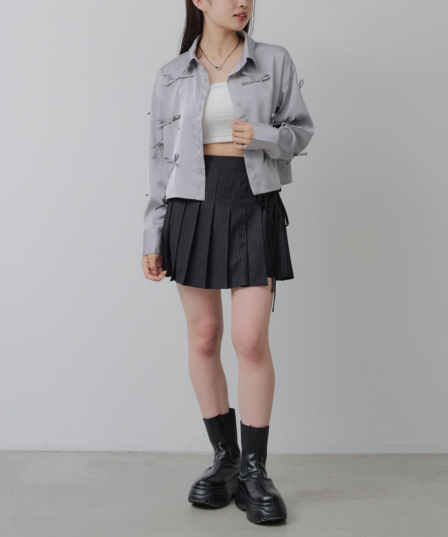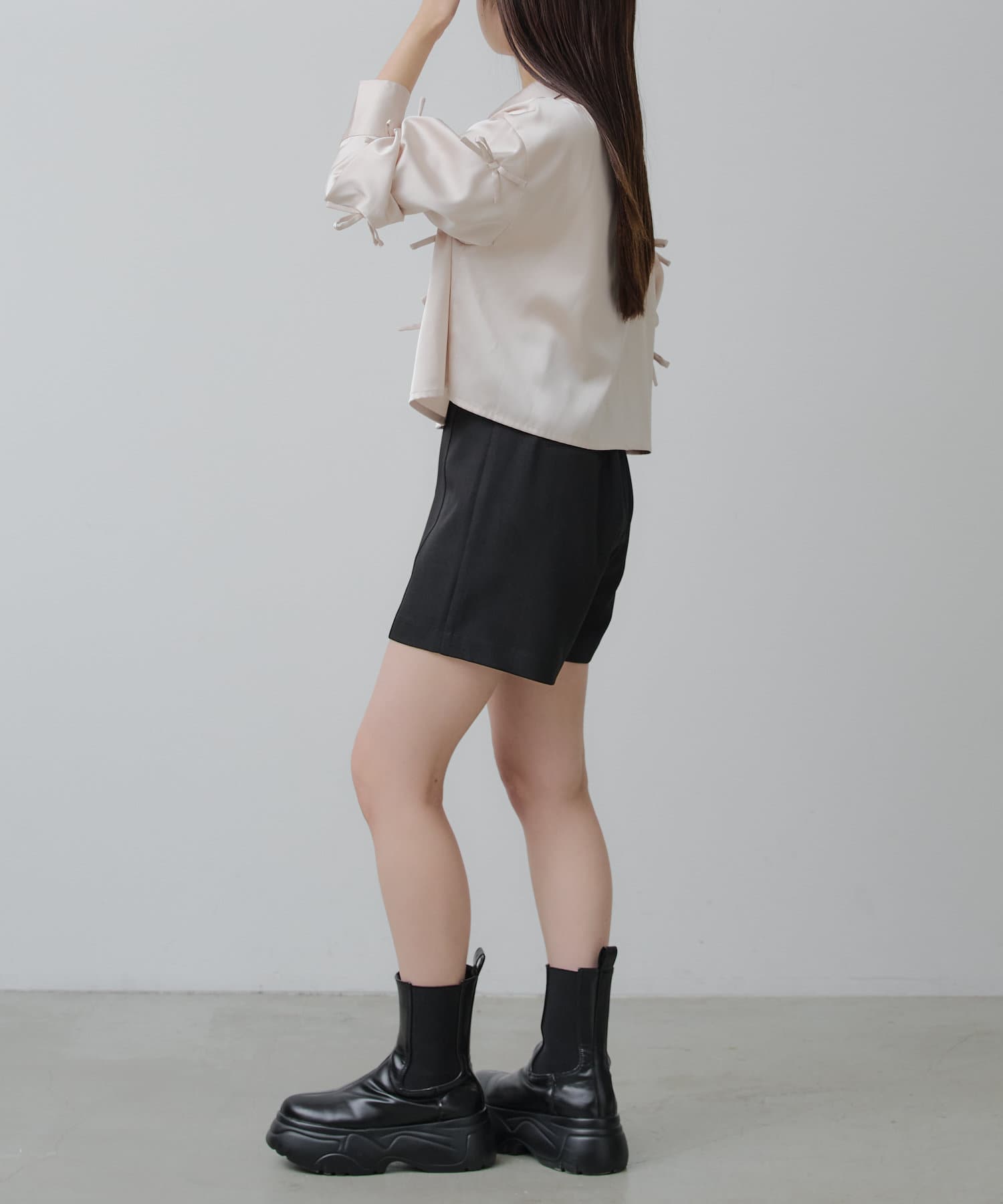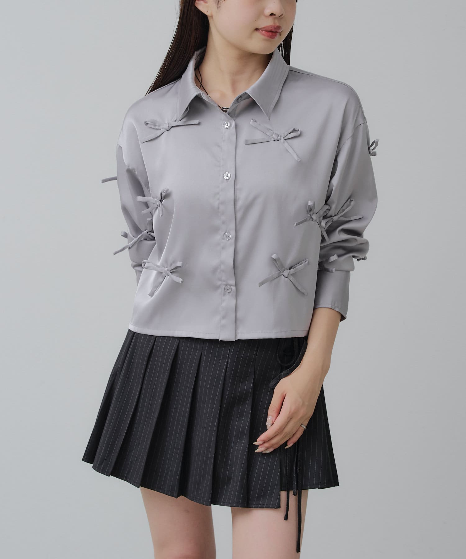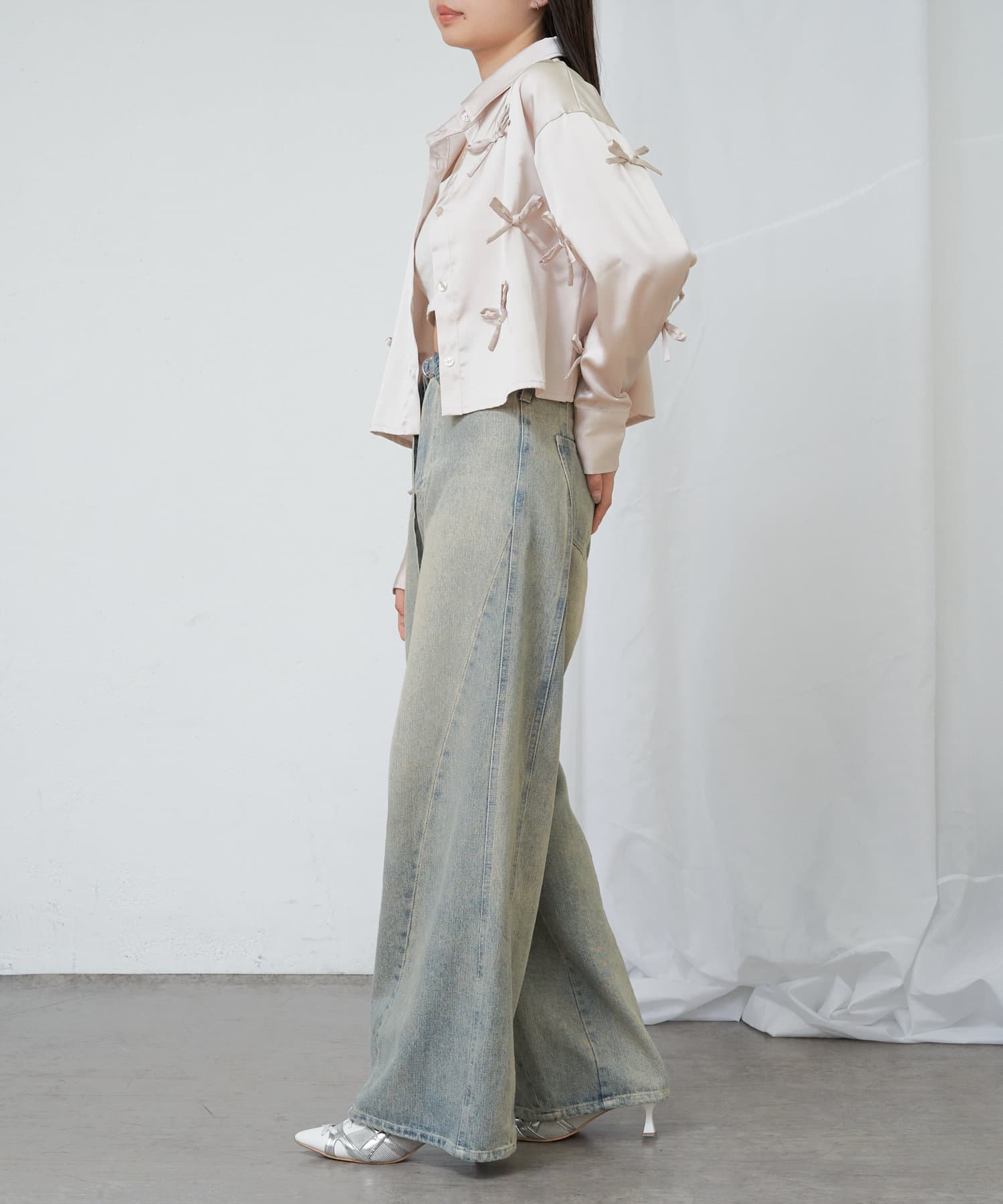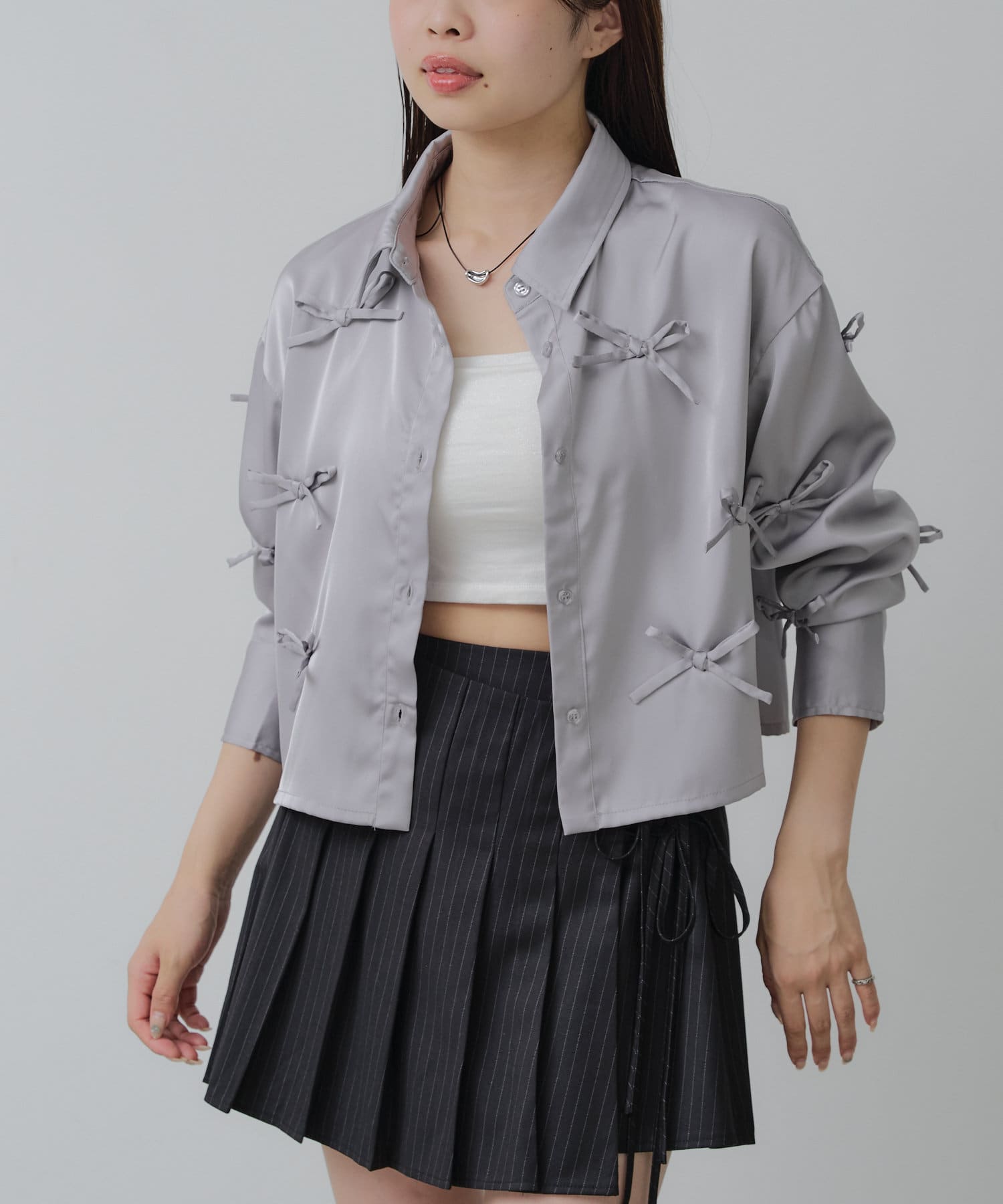 【RAY CASSIN】リボン付きサテンルーズシャツ