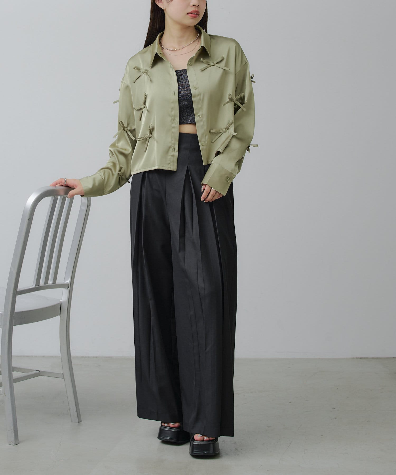 生地感と色味がリボンの甘さを抑えて、大人っぽくも着用して頂けます♡