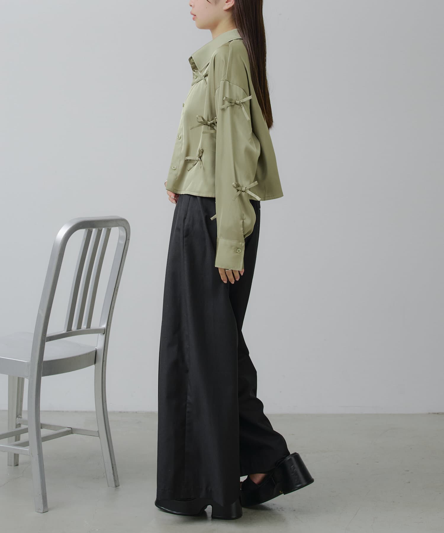 ワイドなボトムスがシルエット、綺麗に着こなしていただけます♡