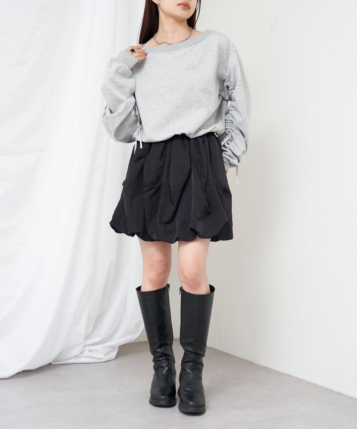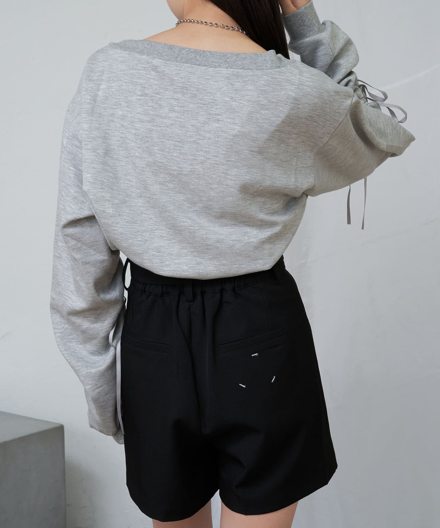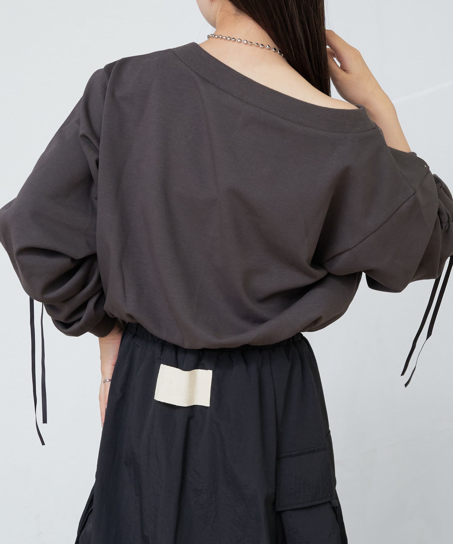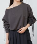 普通のトレーナーとしても、オフショルもワンショルもできる1枚で印象の変わるデザイン。