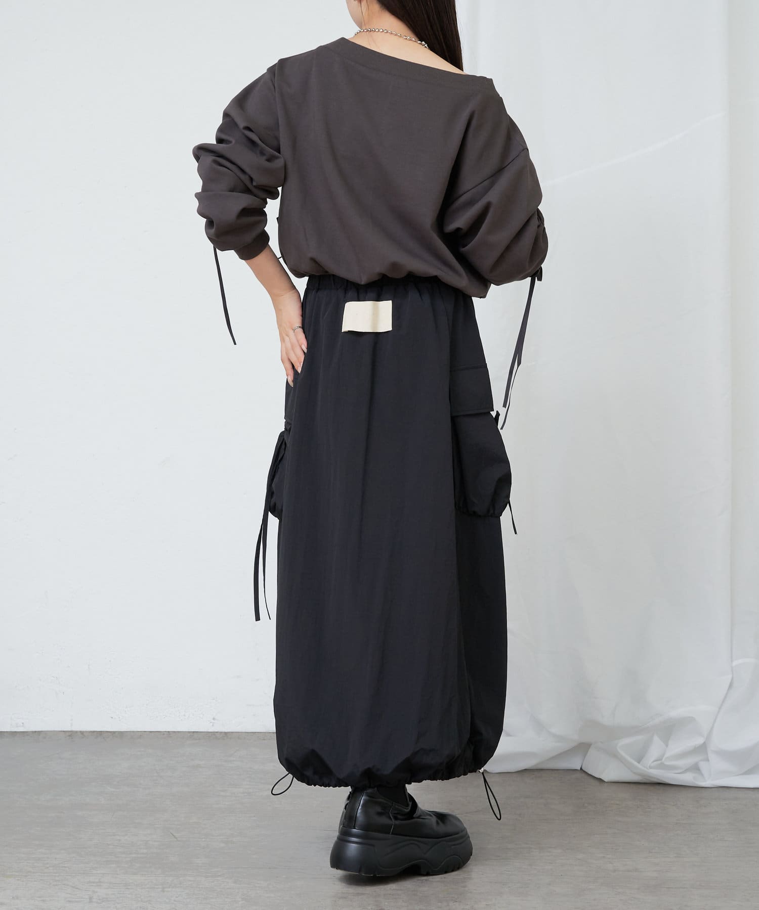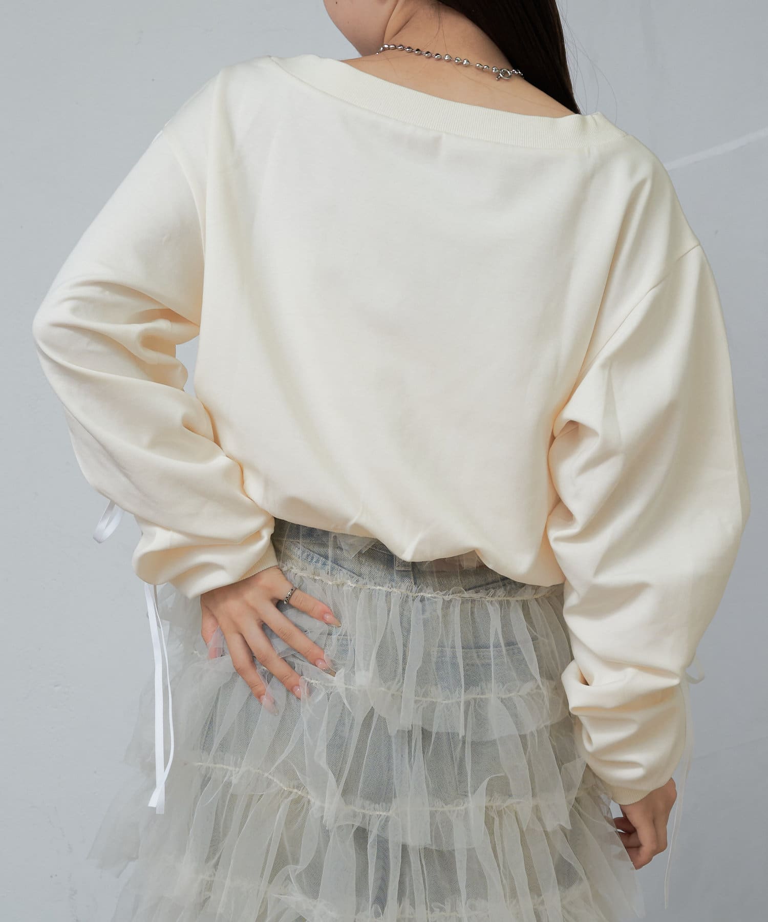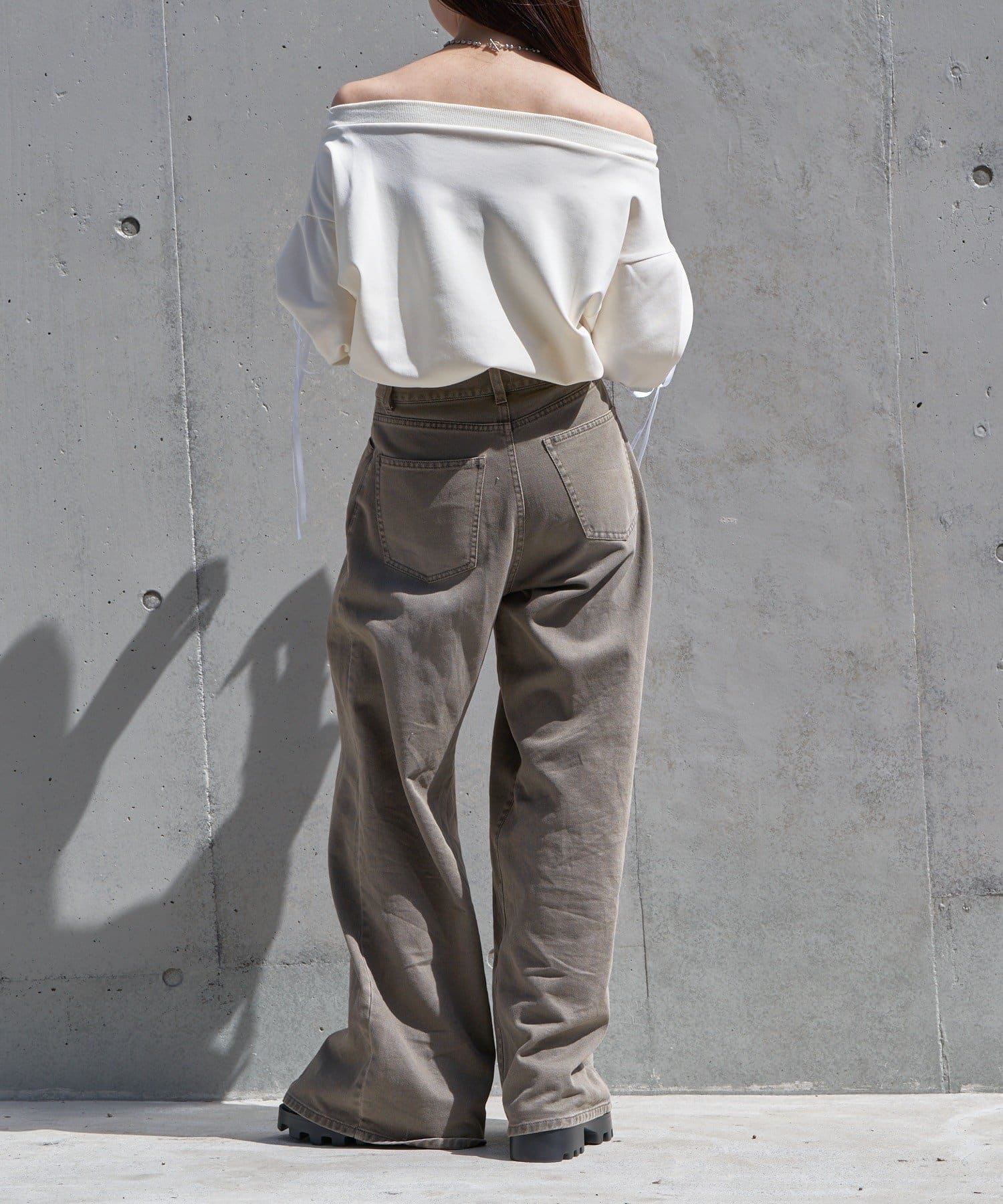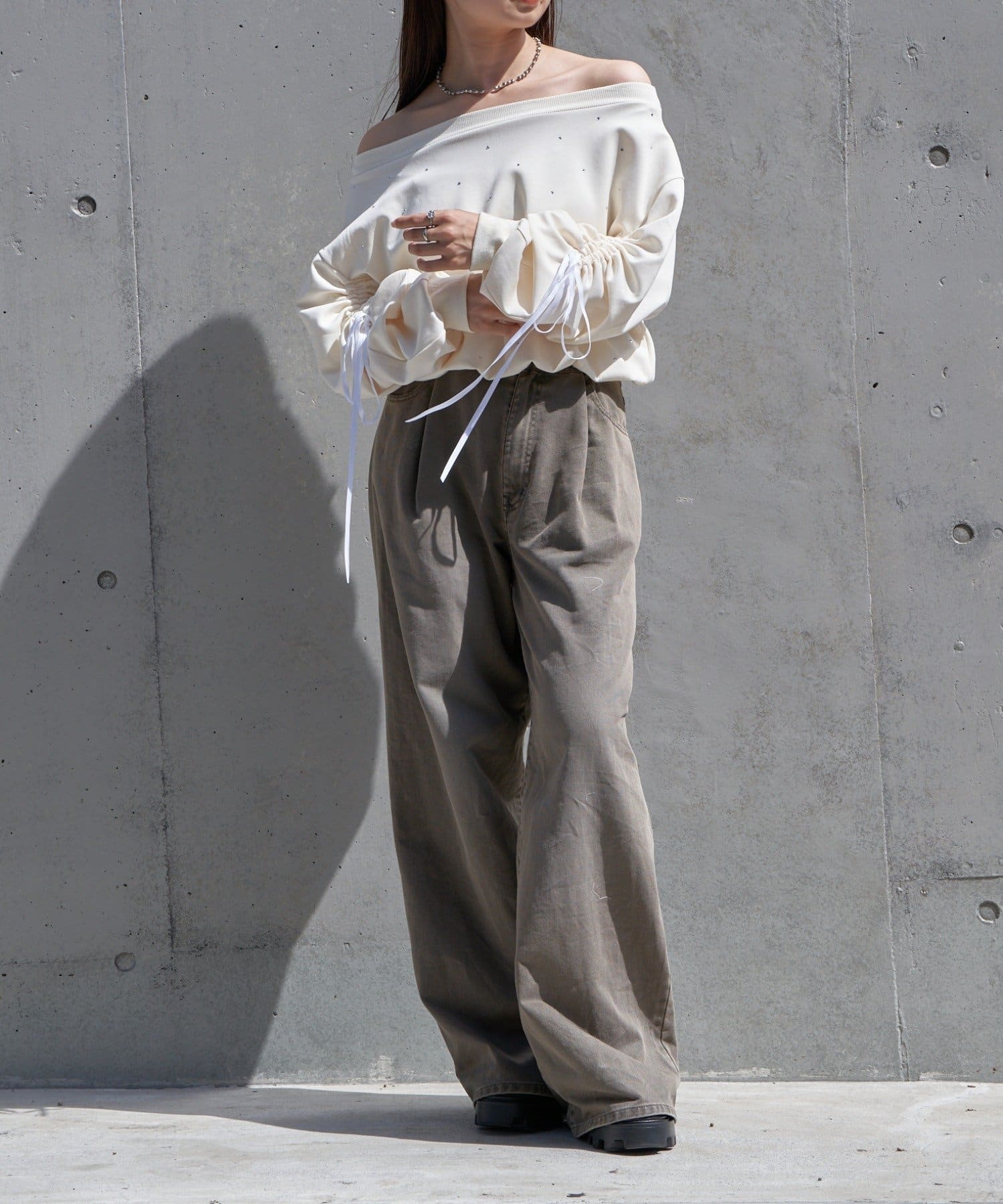 普通のトレーナーとしても、オフショルもワンショルもできる1枚で印象の変わるデザイン。