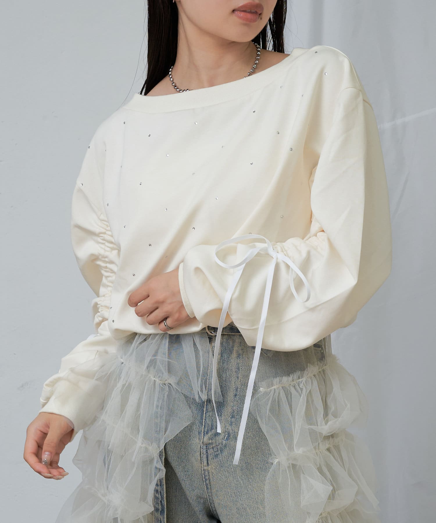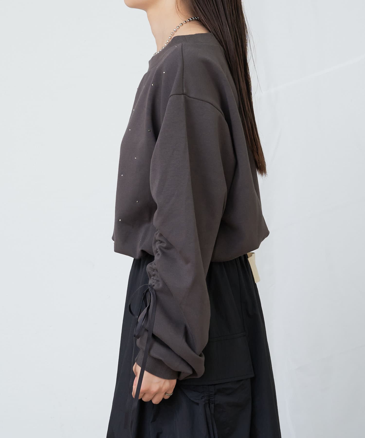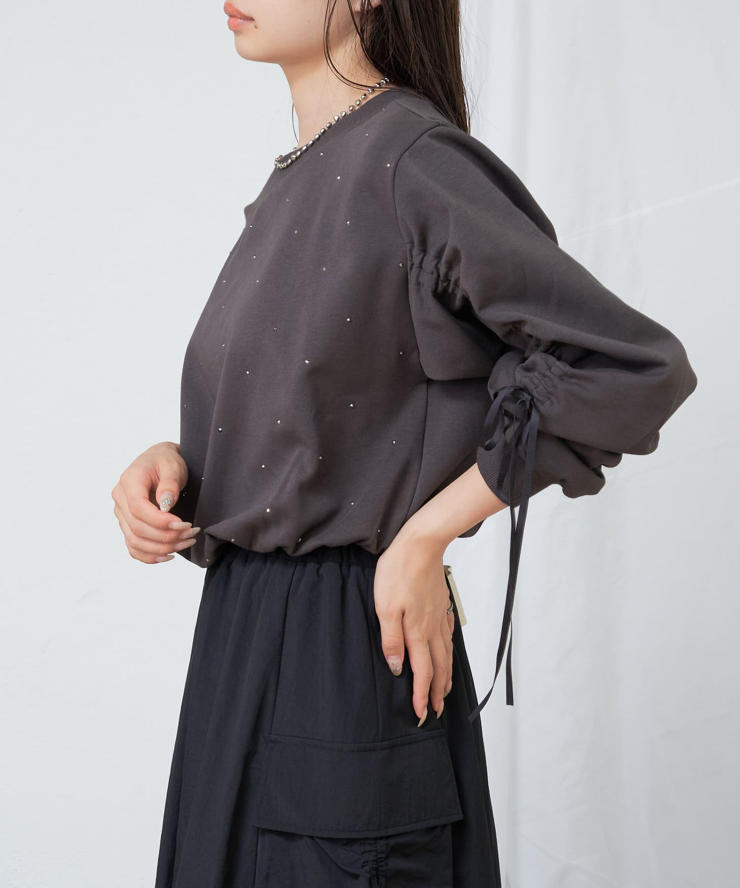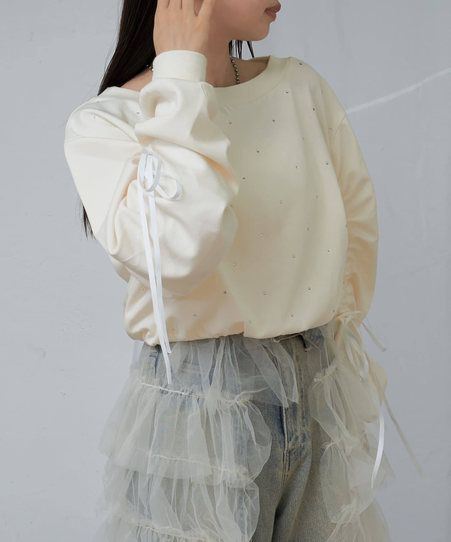 【RAY CASSIN】ドロスト入りラインストーンスウェット