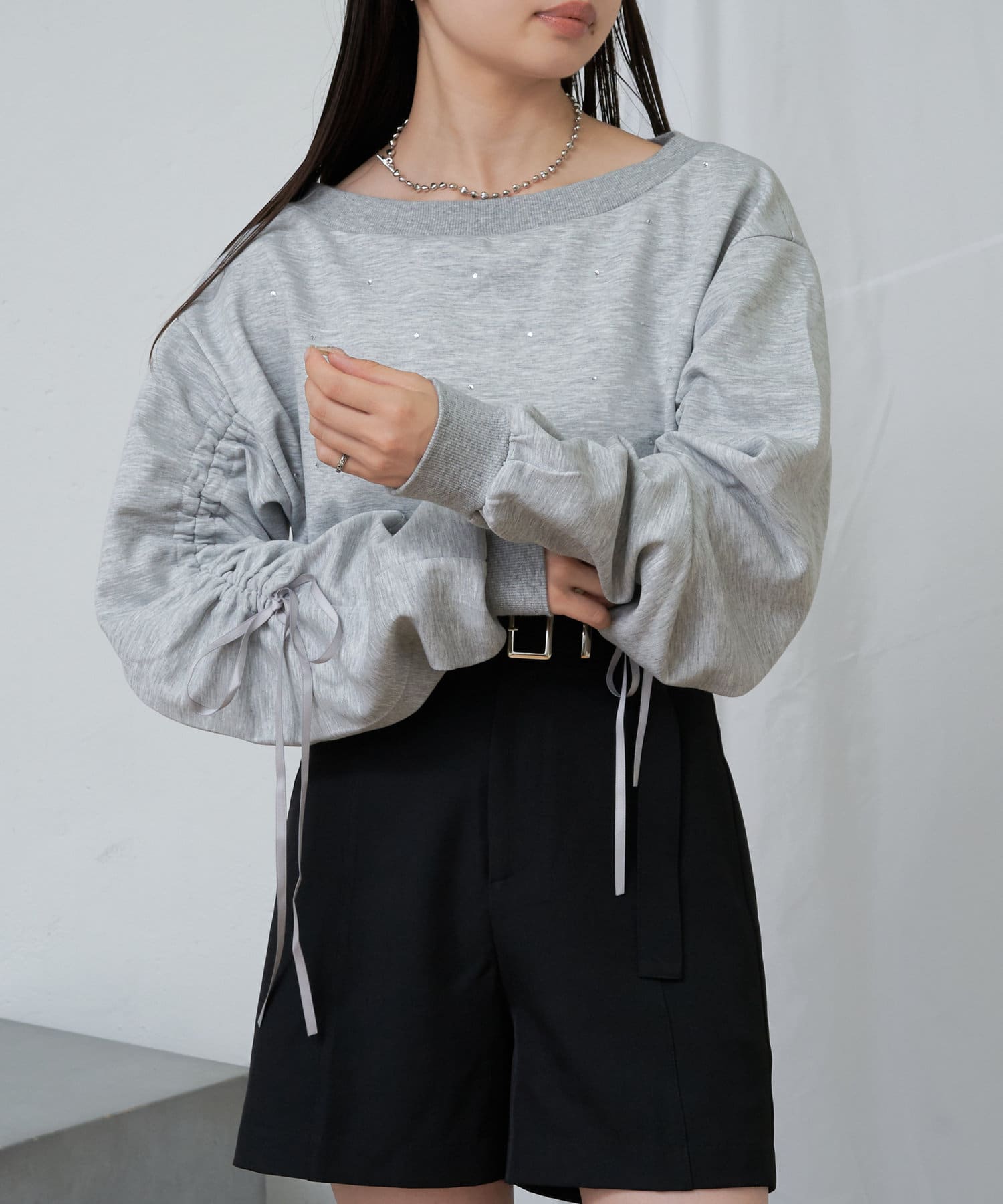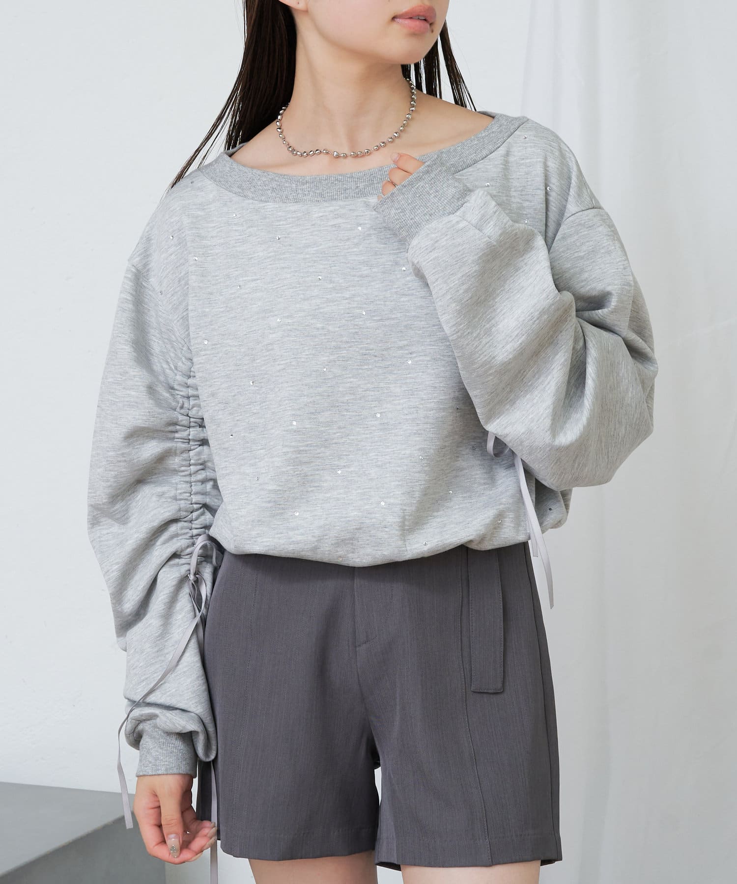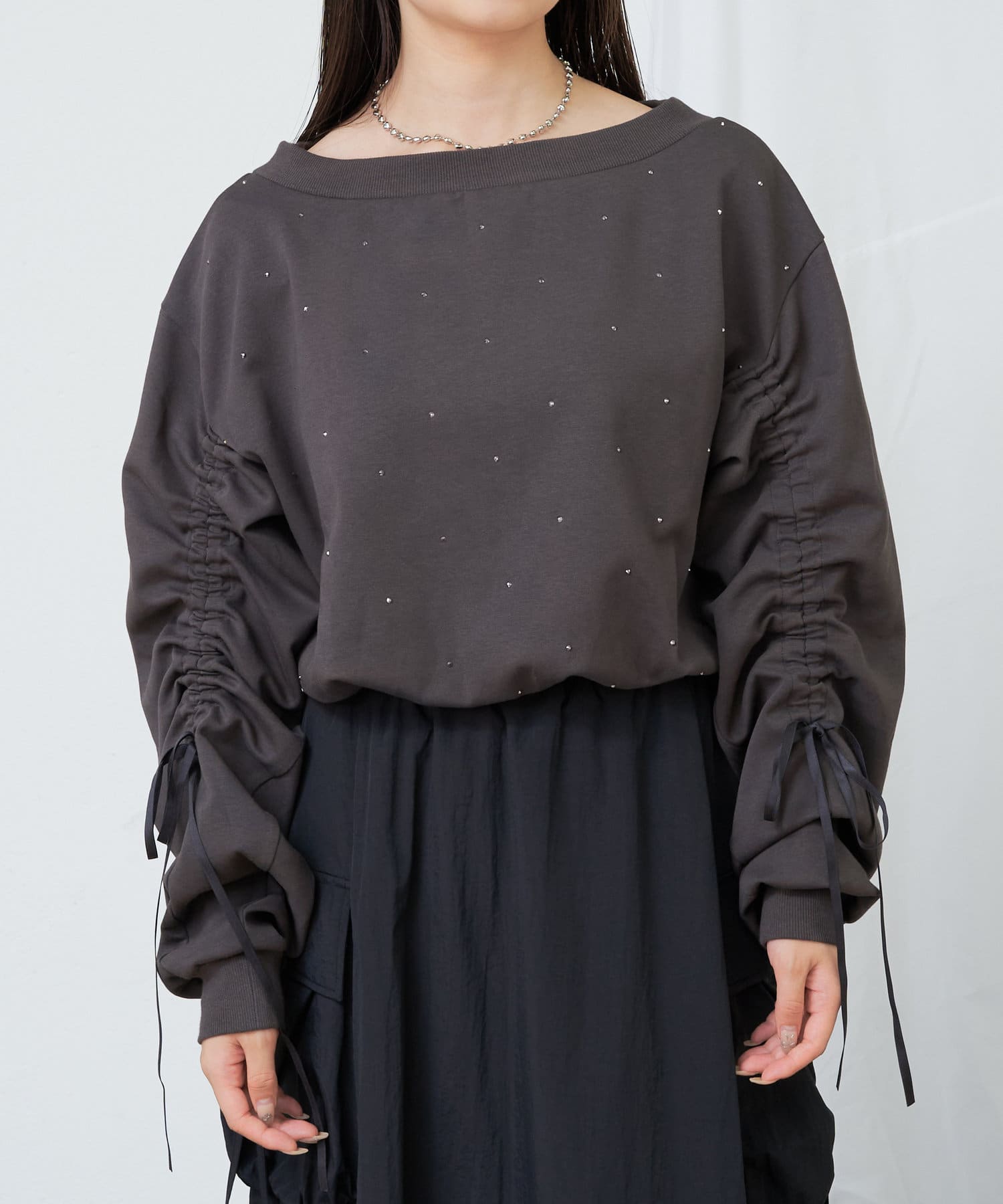【RAY CASSIN】ドロスト入りラインストーンスウェット