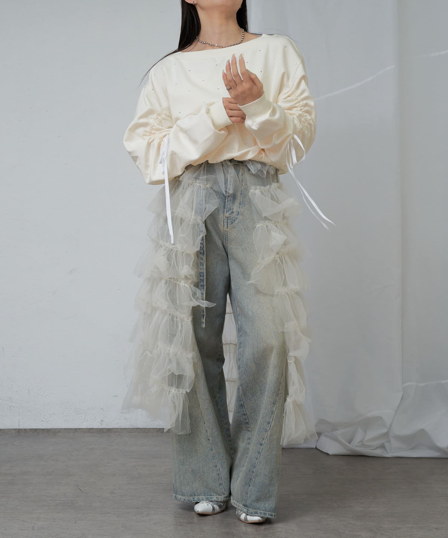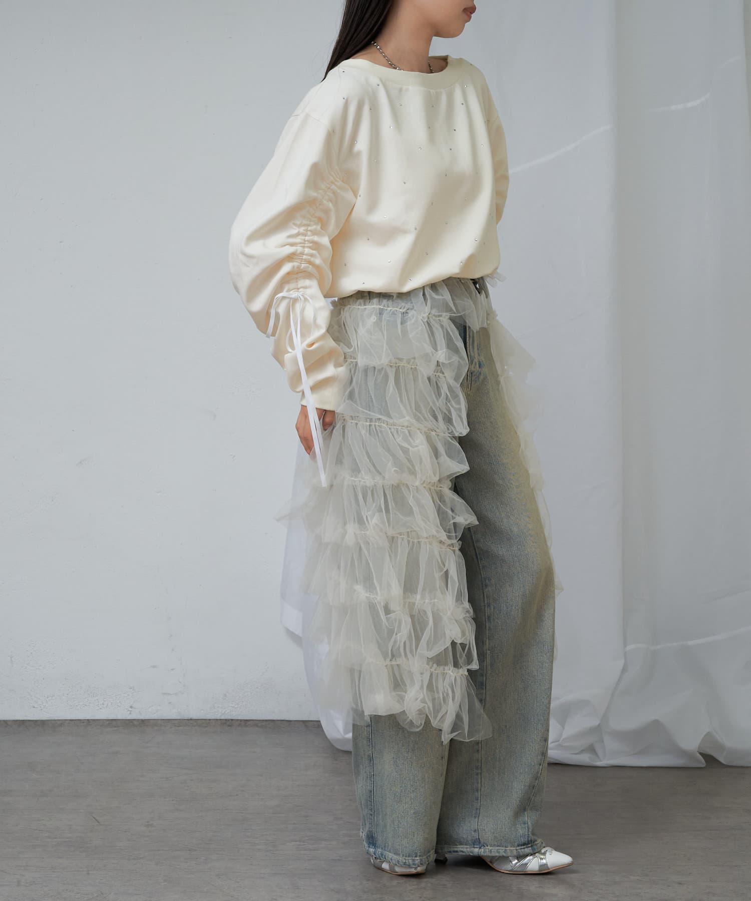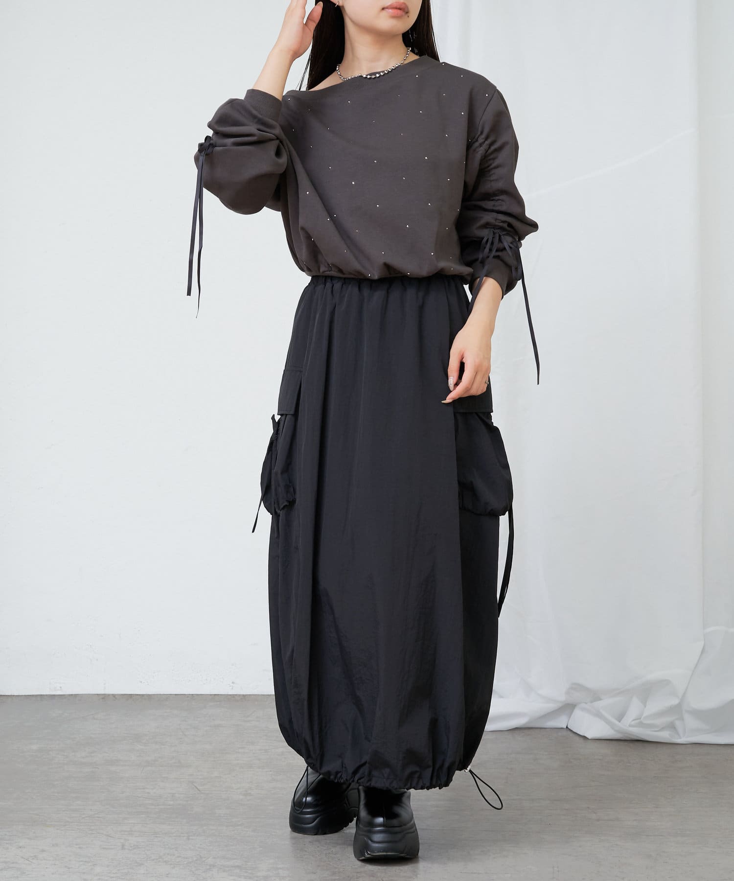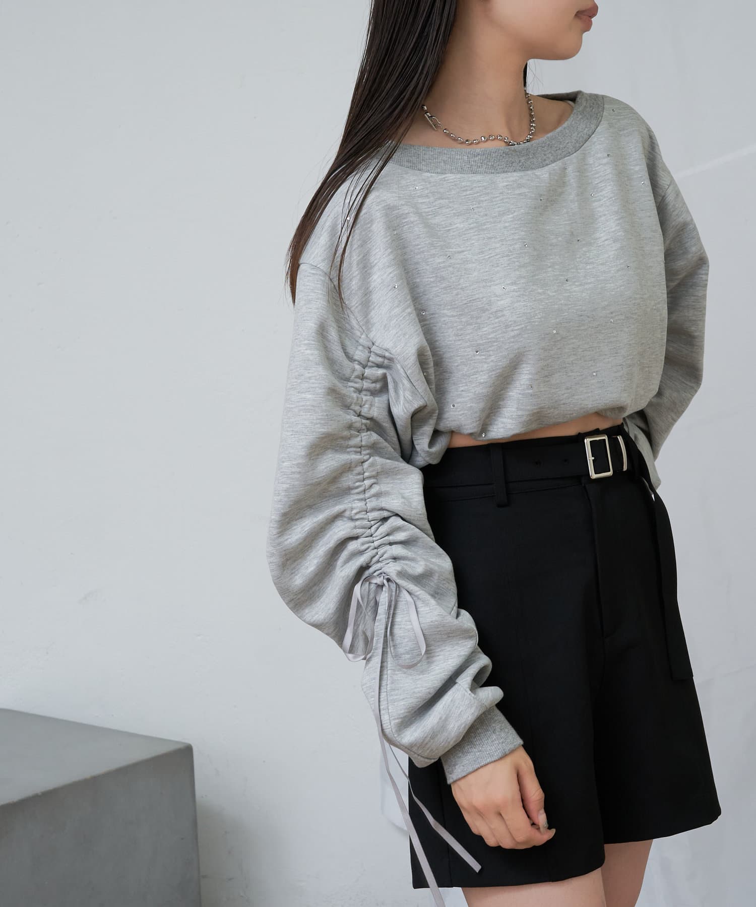 【RAY CASSIN】ドロスト入りラインストーンスウェット