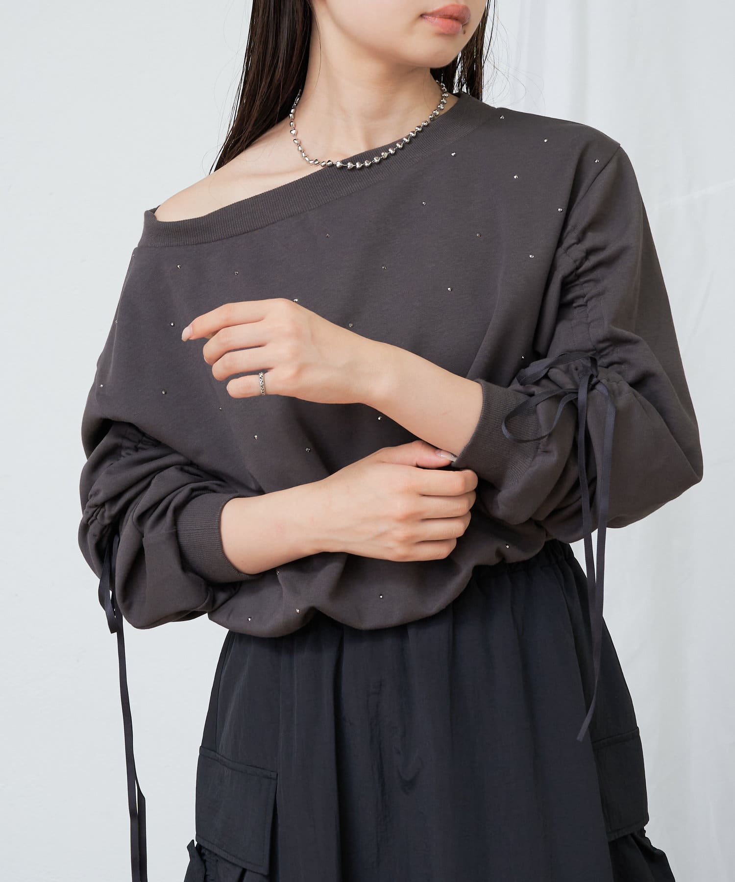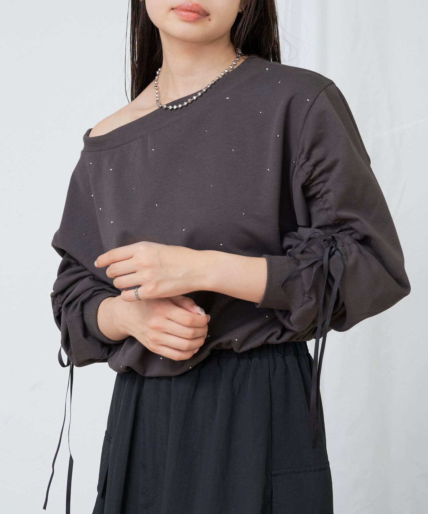 TOP > OUTLET > レディース > トップス > スウェット/ポンチ > 【RAY CASSIN】ドロスト入りラインストーンスウェット