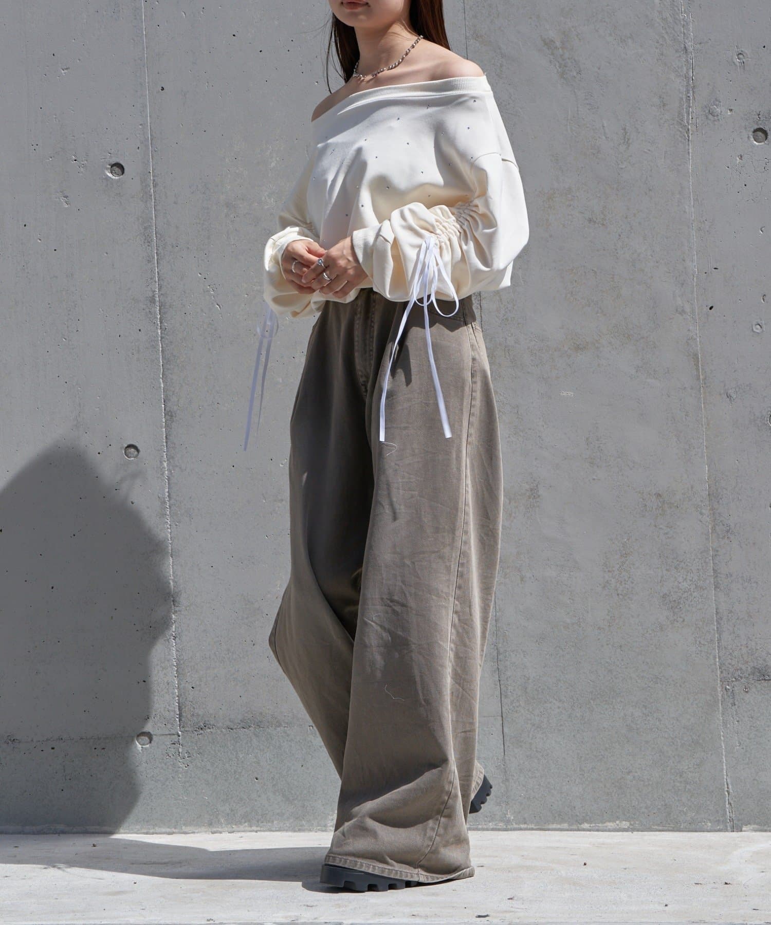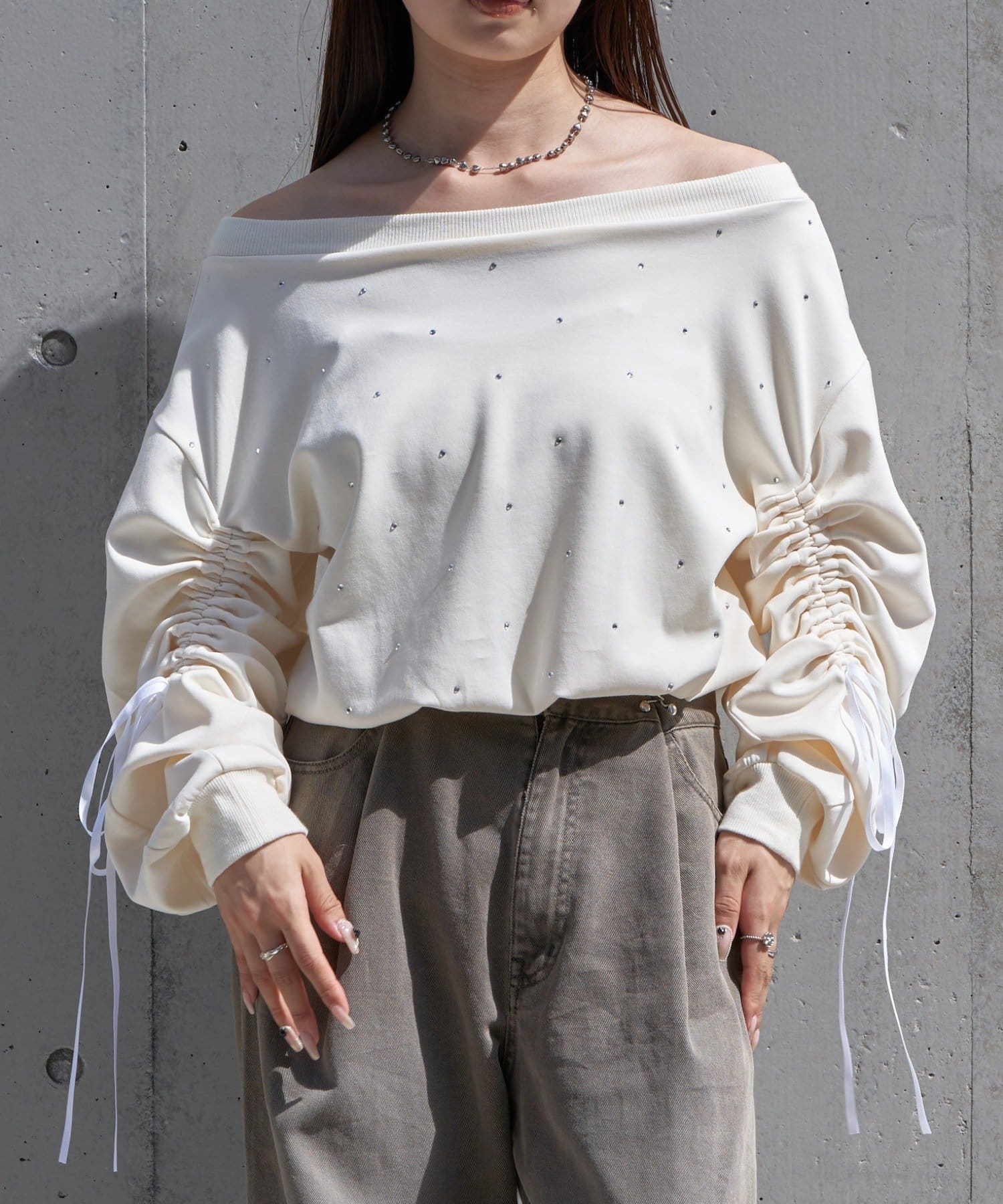 オフショル×ラインストーン◆◇レディライクなスウェットが登場!