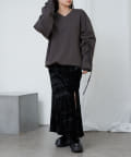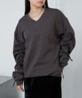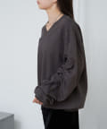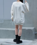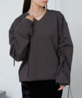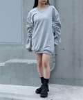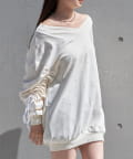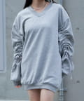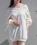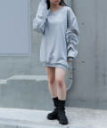 ラインストーン×袖のドロストがレディライクに仕上がるチュニック丈のスウェット
