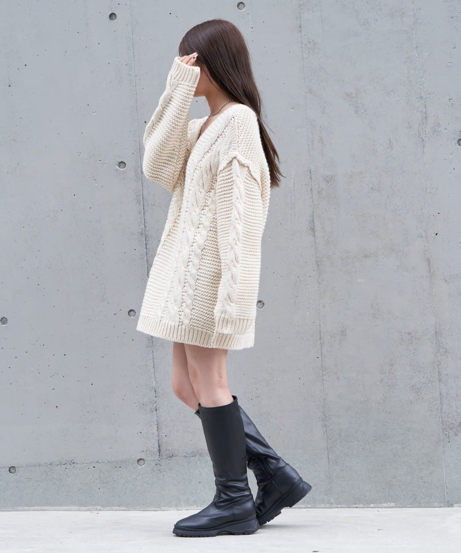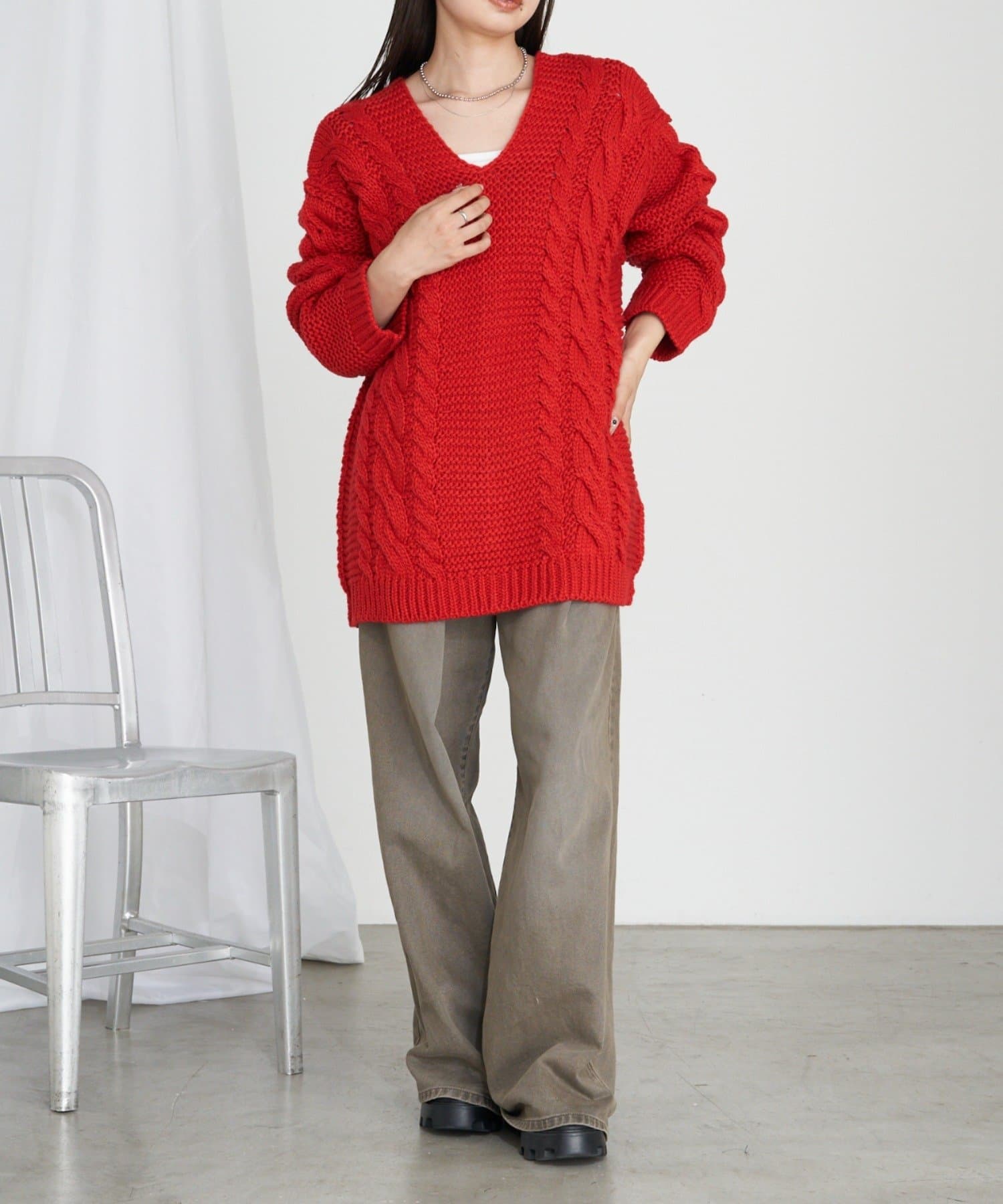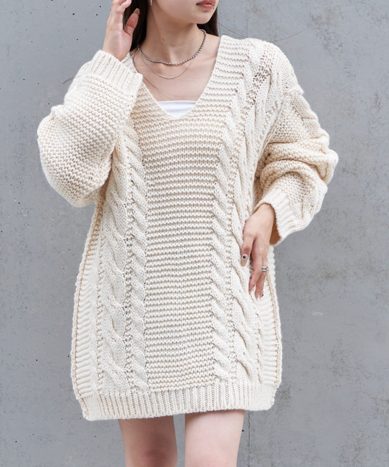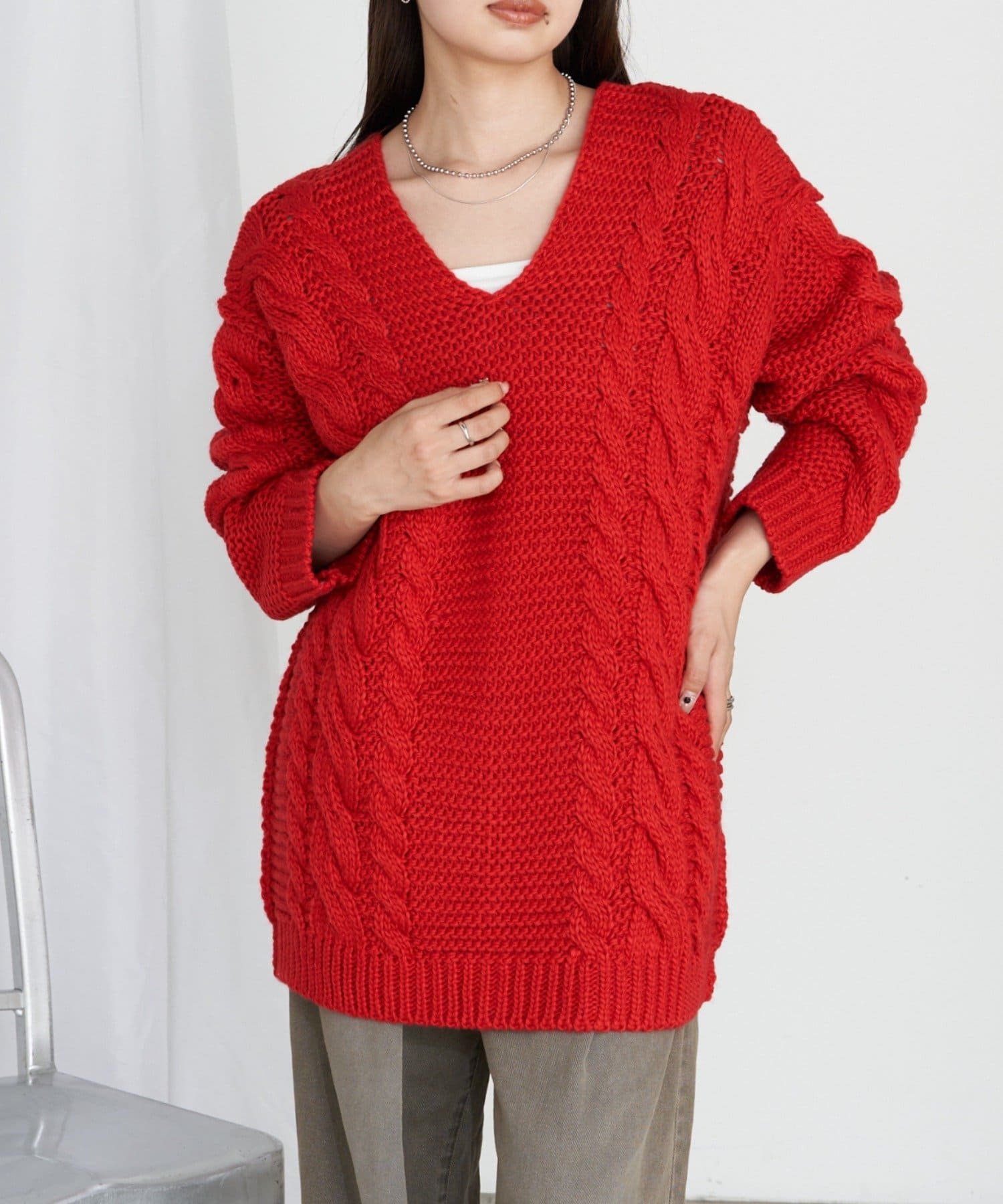 【RAY CASSIN】Vネックケーブルチュニック / ニット