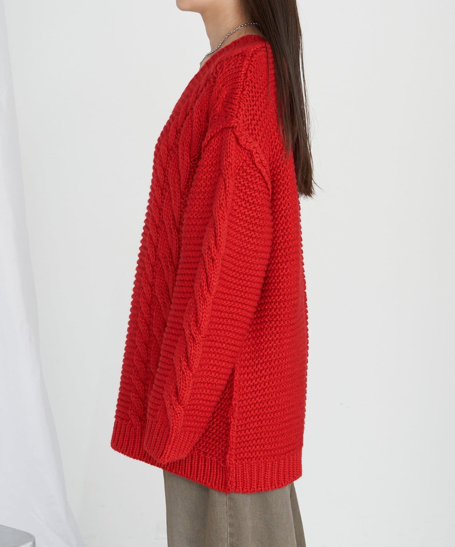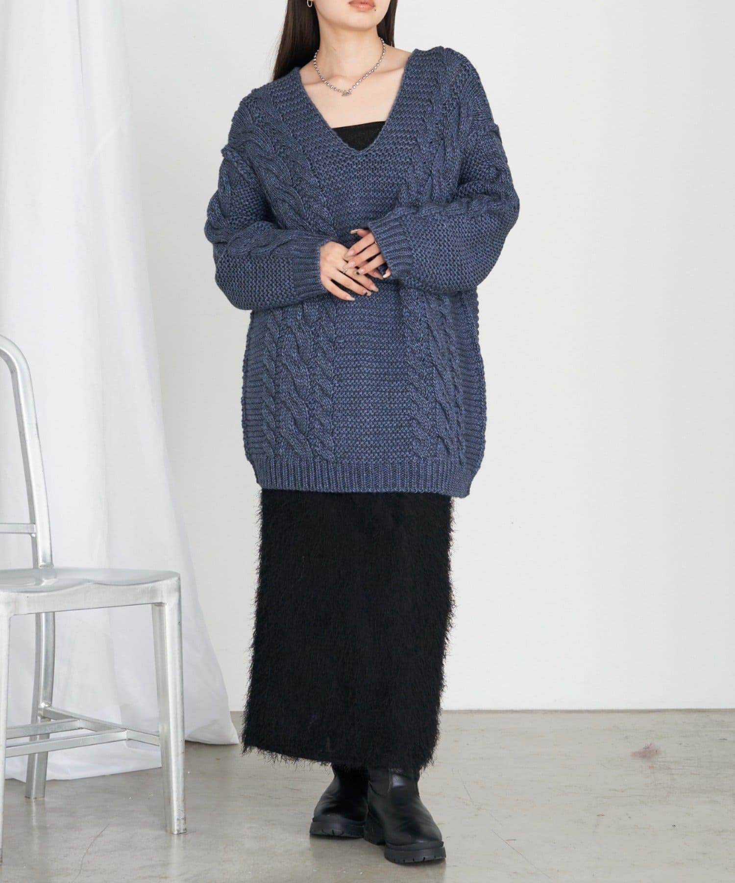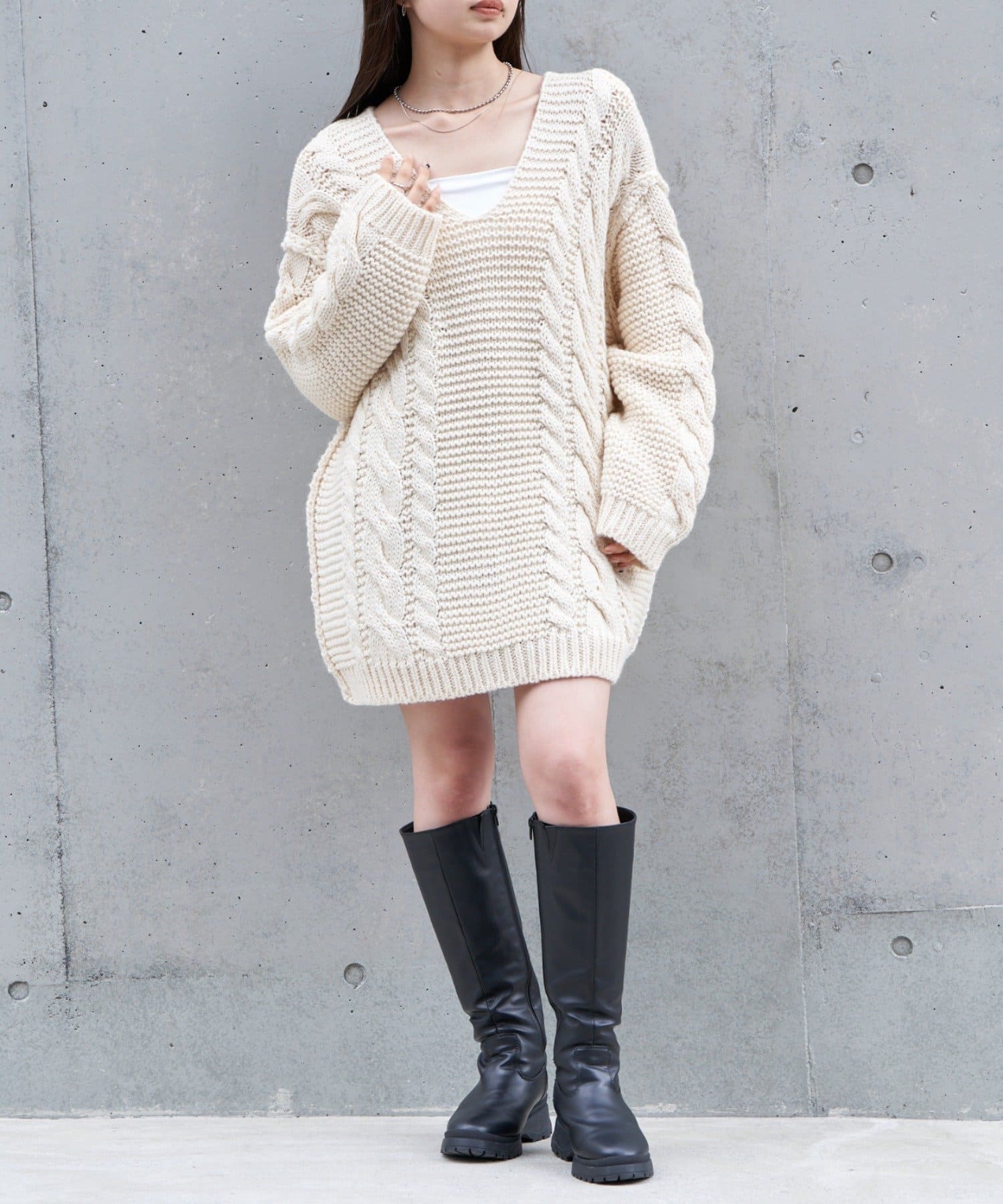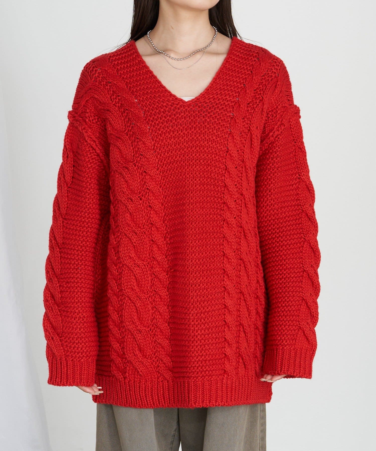 【RAY CASSIN】Vネックケーブルチュニック / ニット
