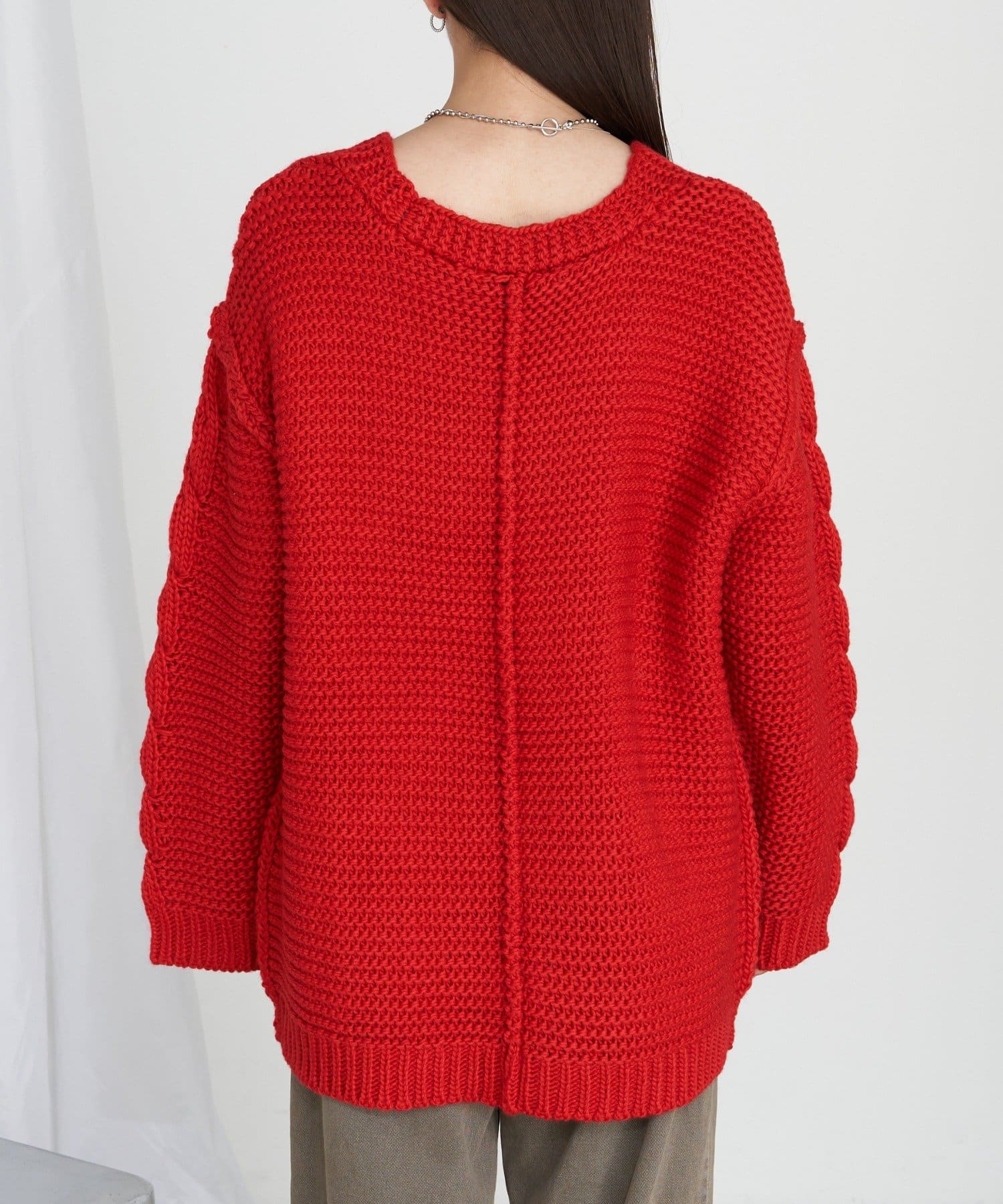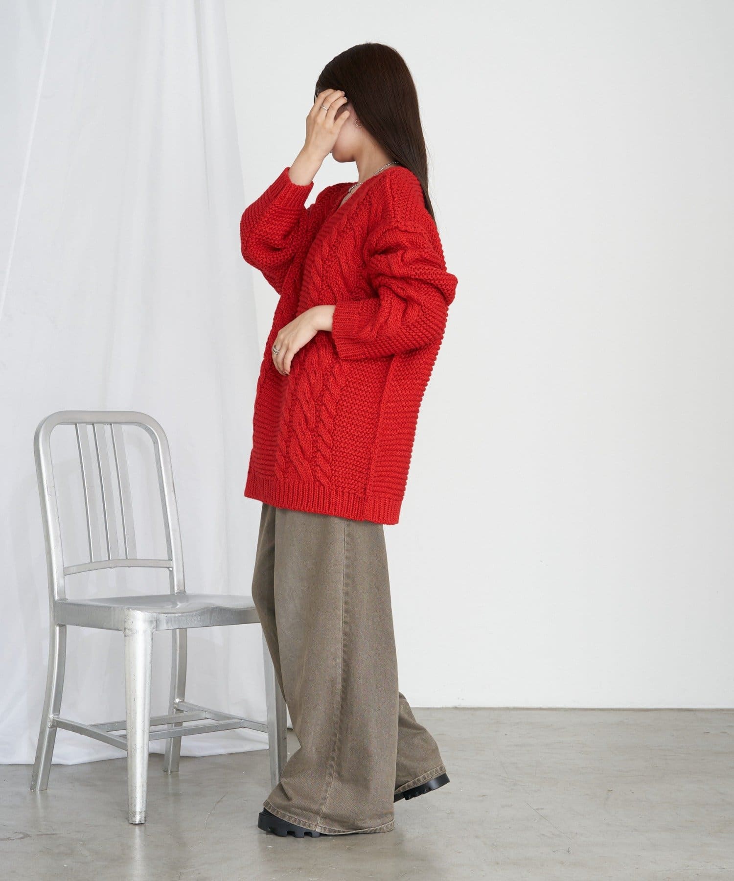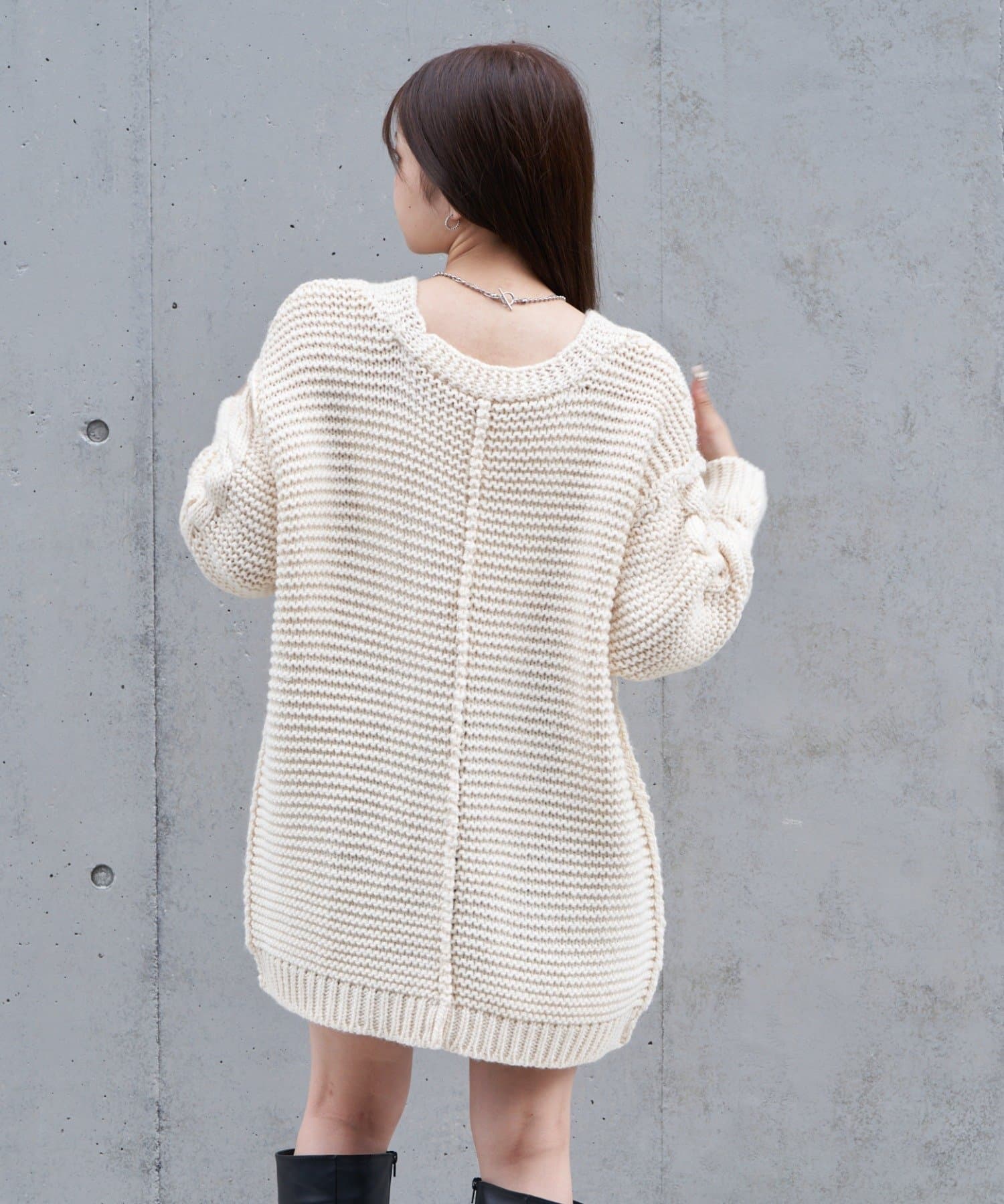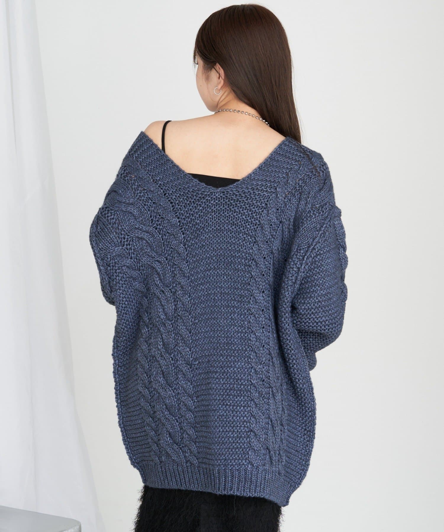 【RAY CASSIN】Vネックケーブルチュニック / ニット