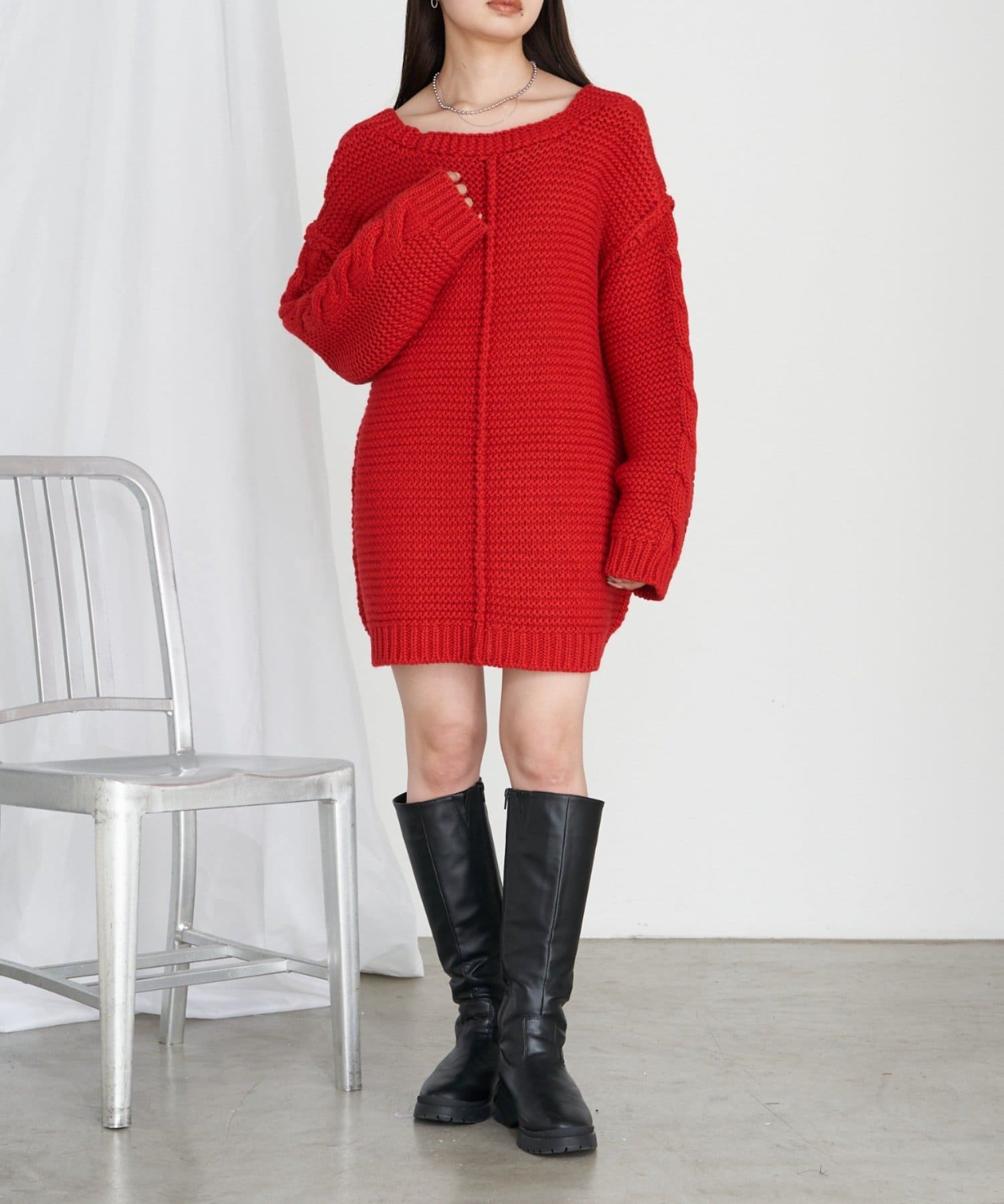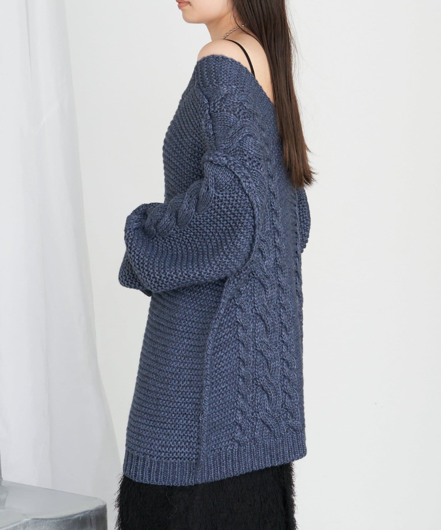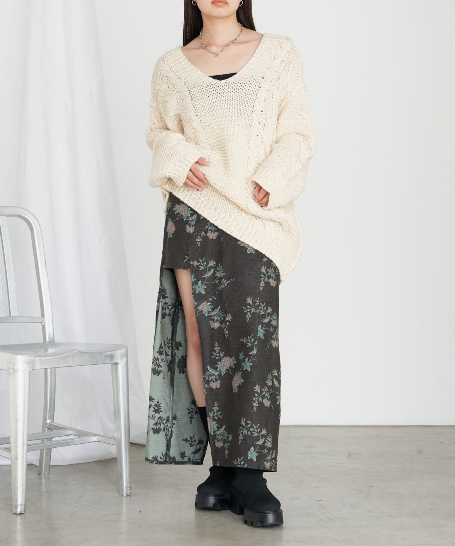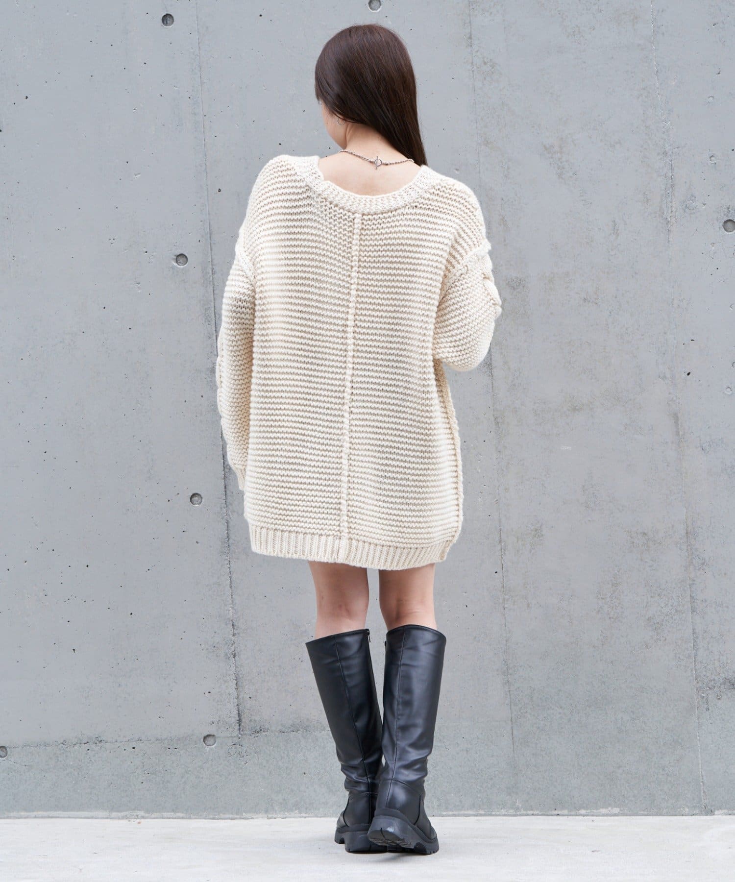 【RAY CASSIN】Vネックケーブルチュニック / ニット