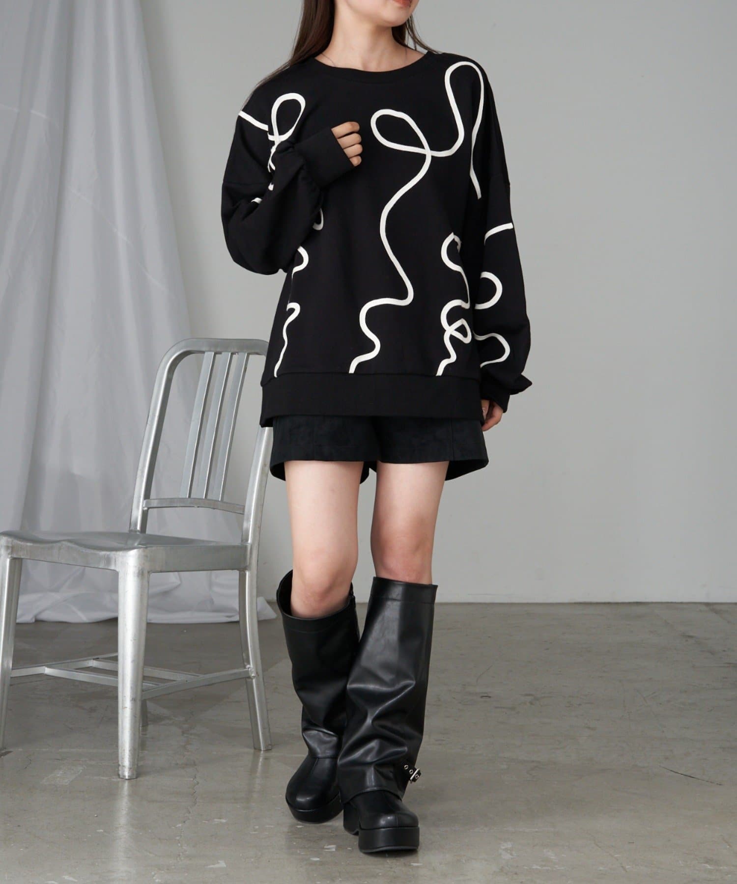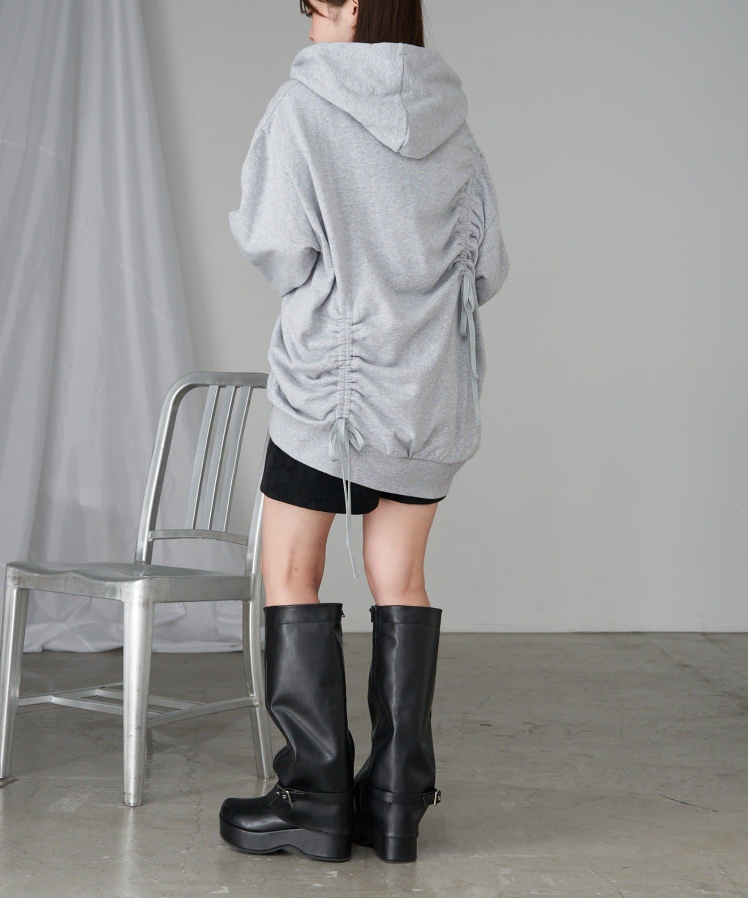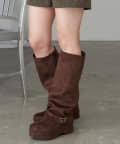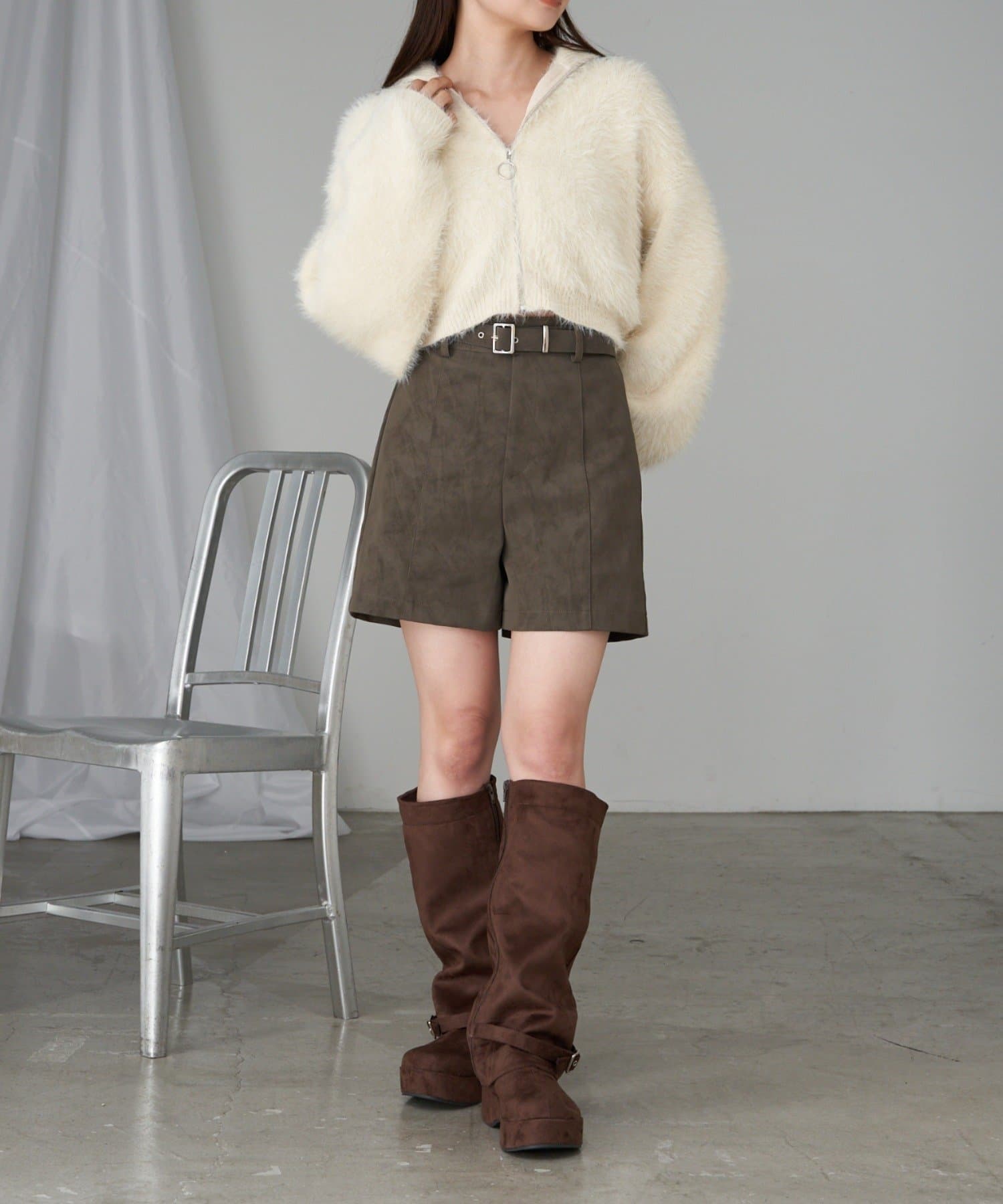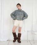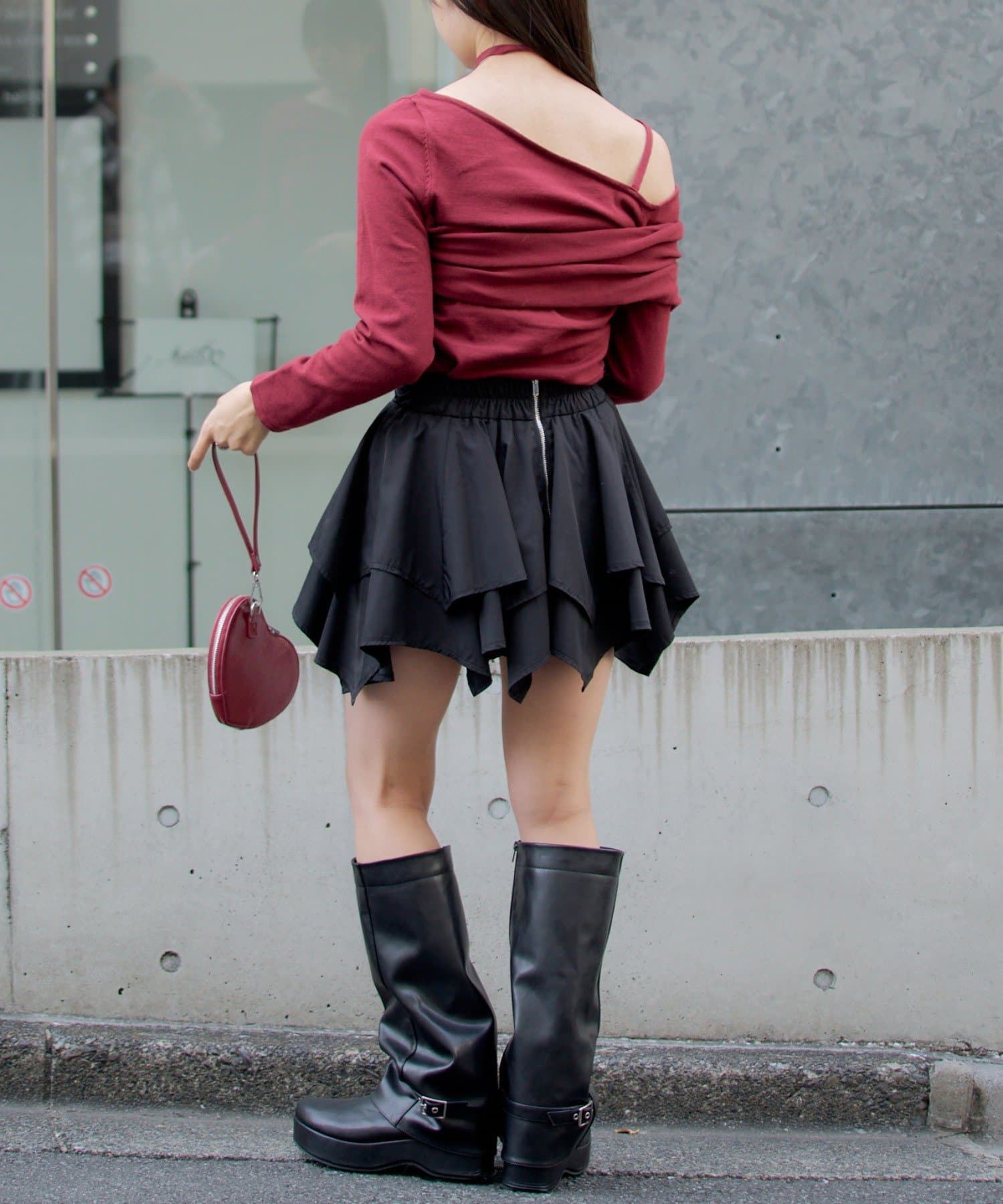 ロングブーツはミニ丈合わせでルーズ感を見せるのが○