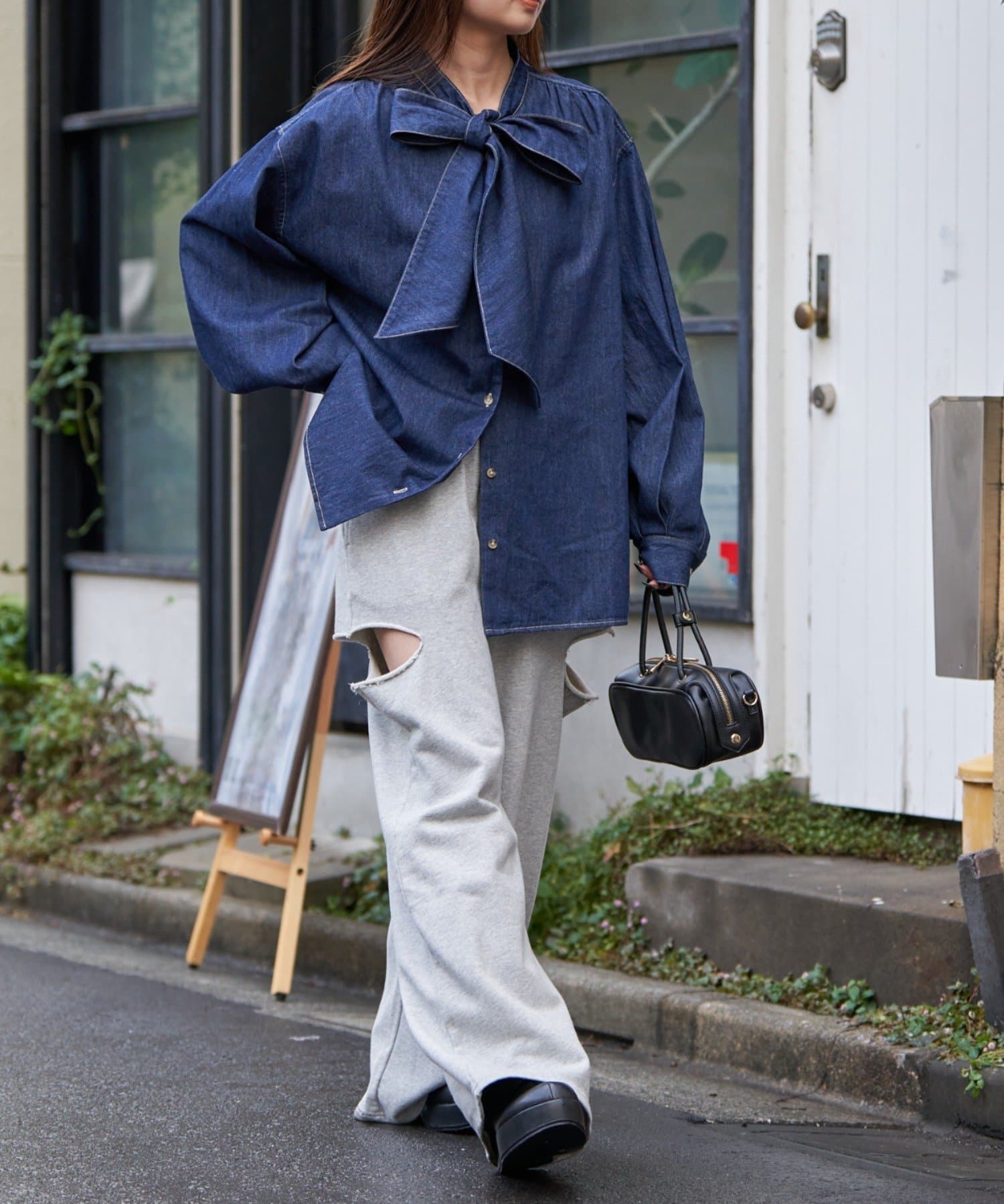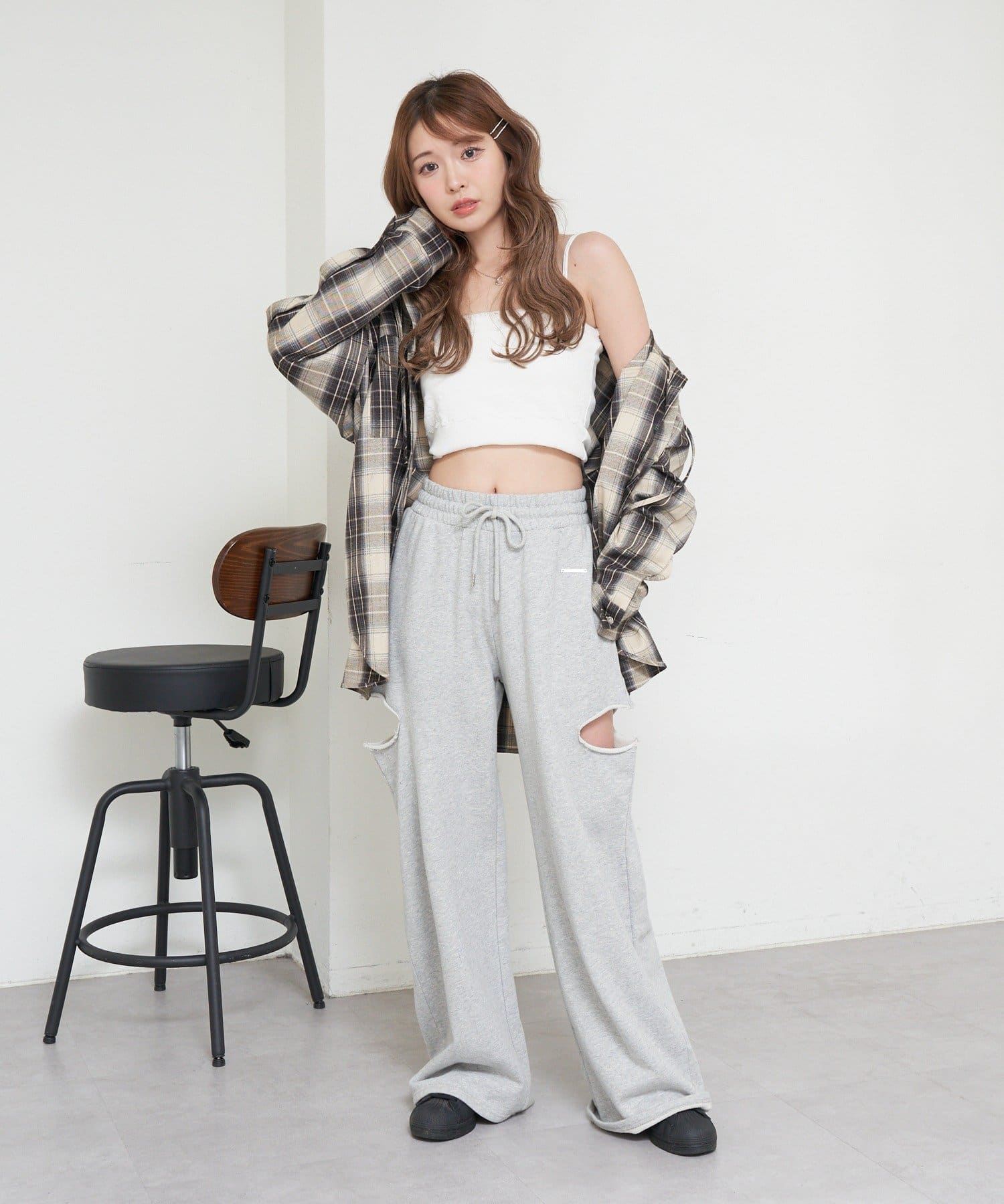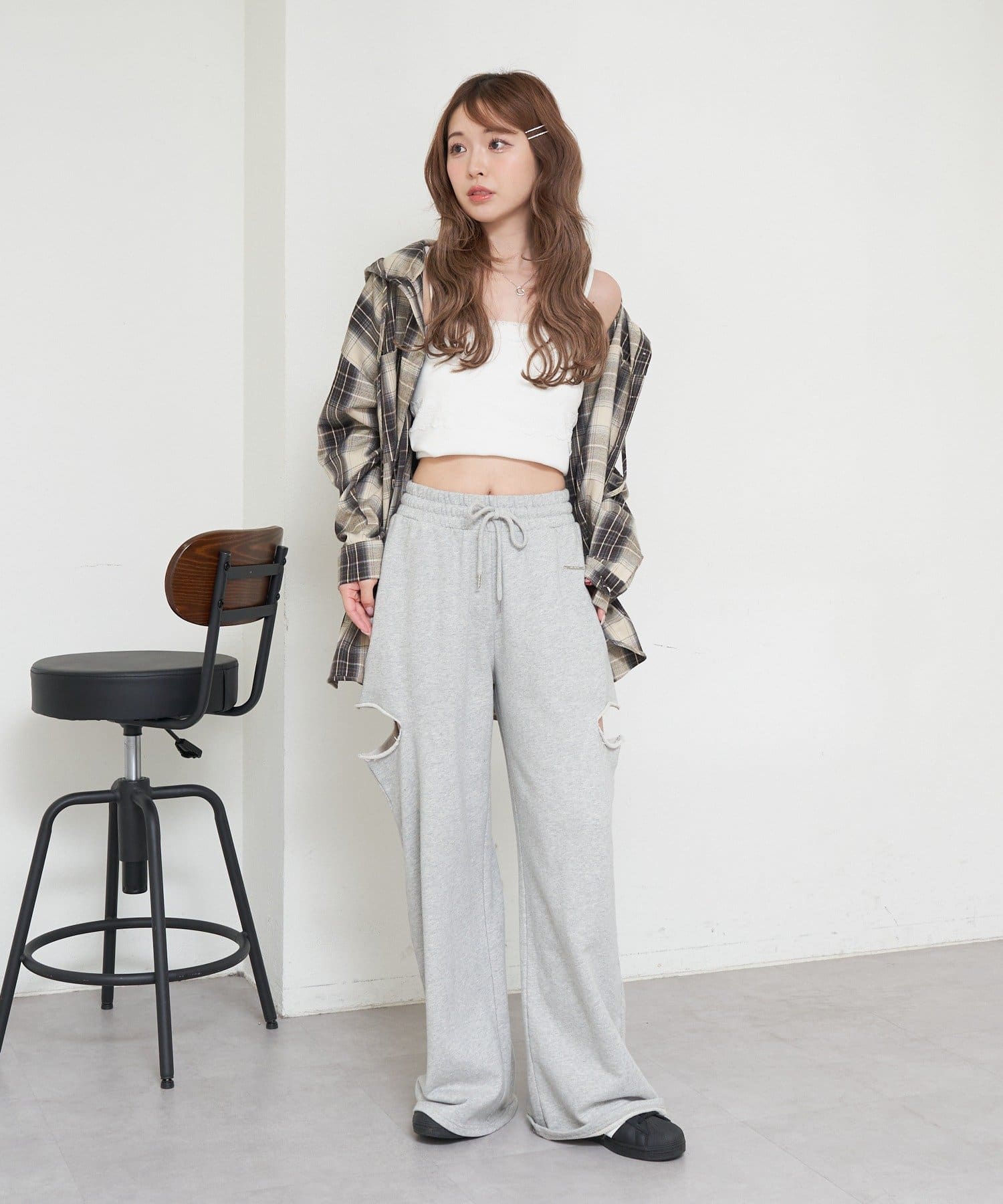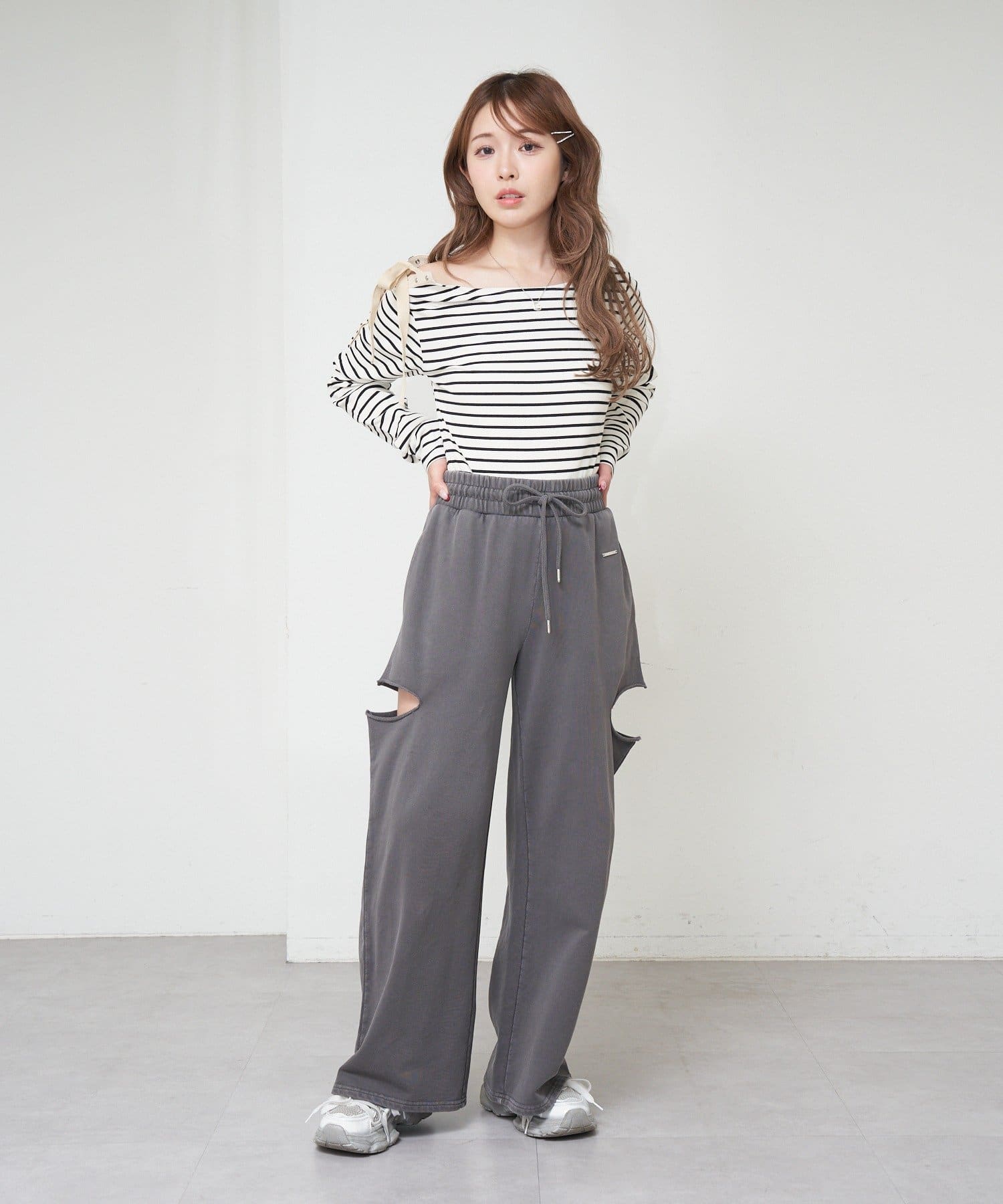 スウェットパンツ / スウェット生地 / スリット / ワイドパンツ