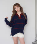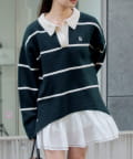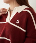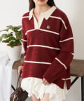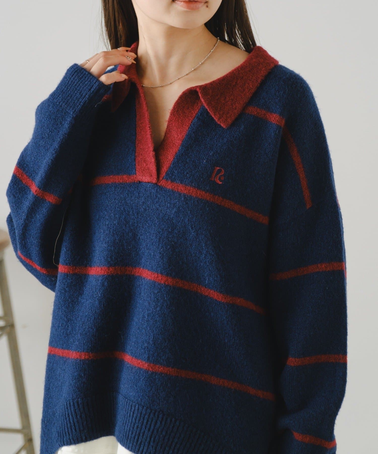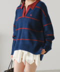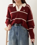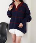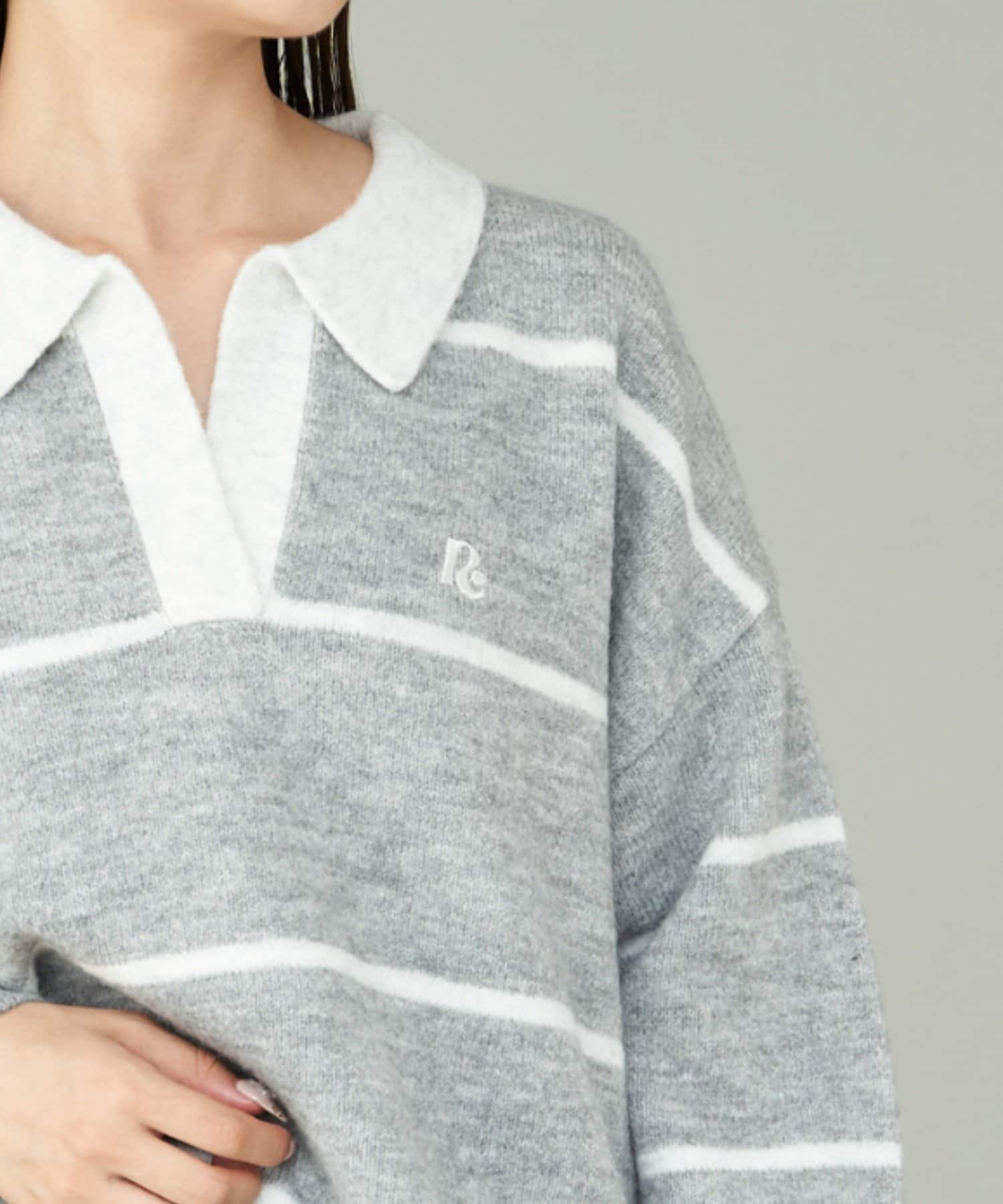【RAY CASSIN】ボーダースキッパーポロ刺繍ニット / 襟付きニット