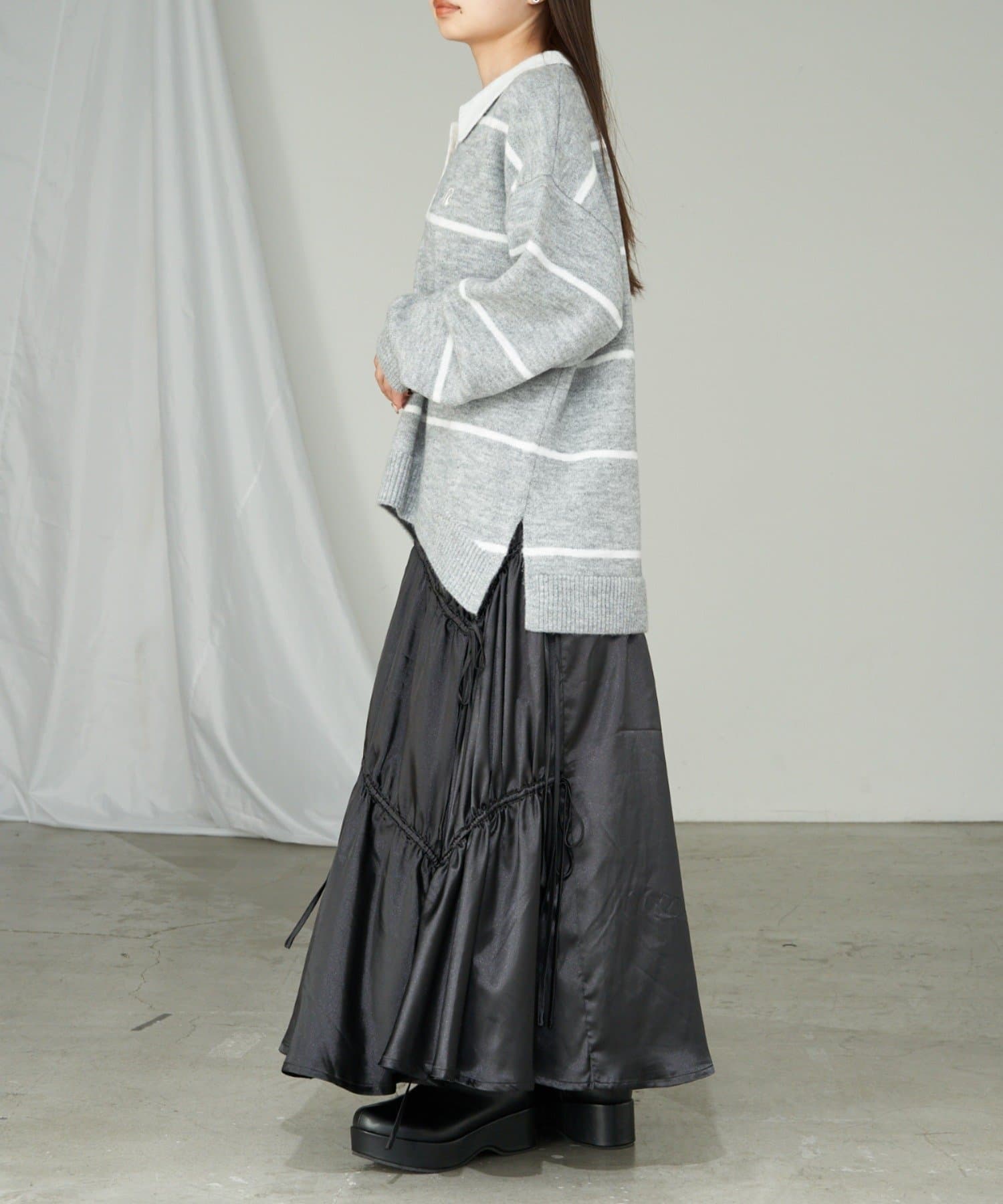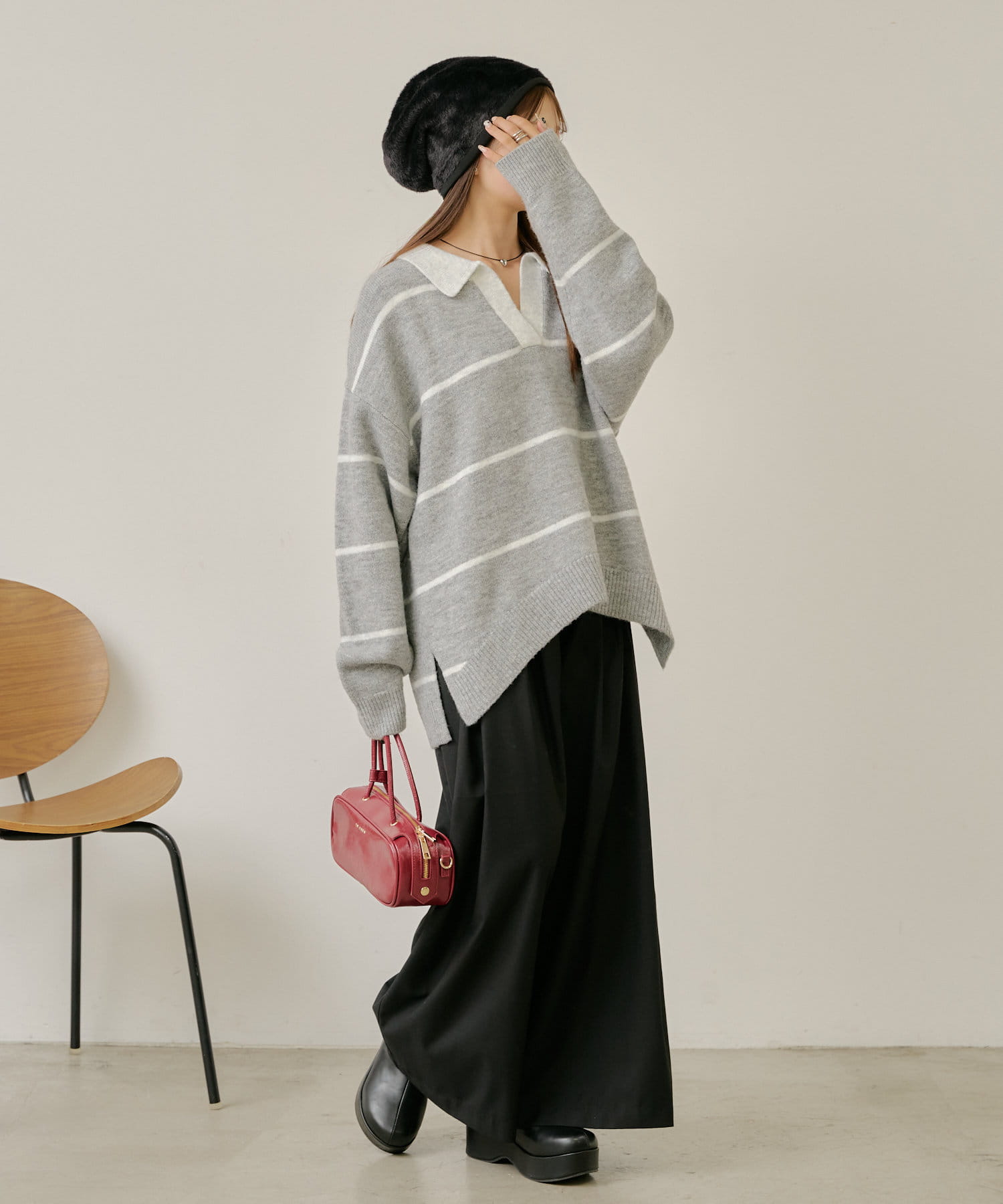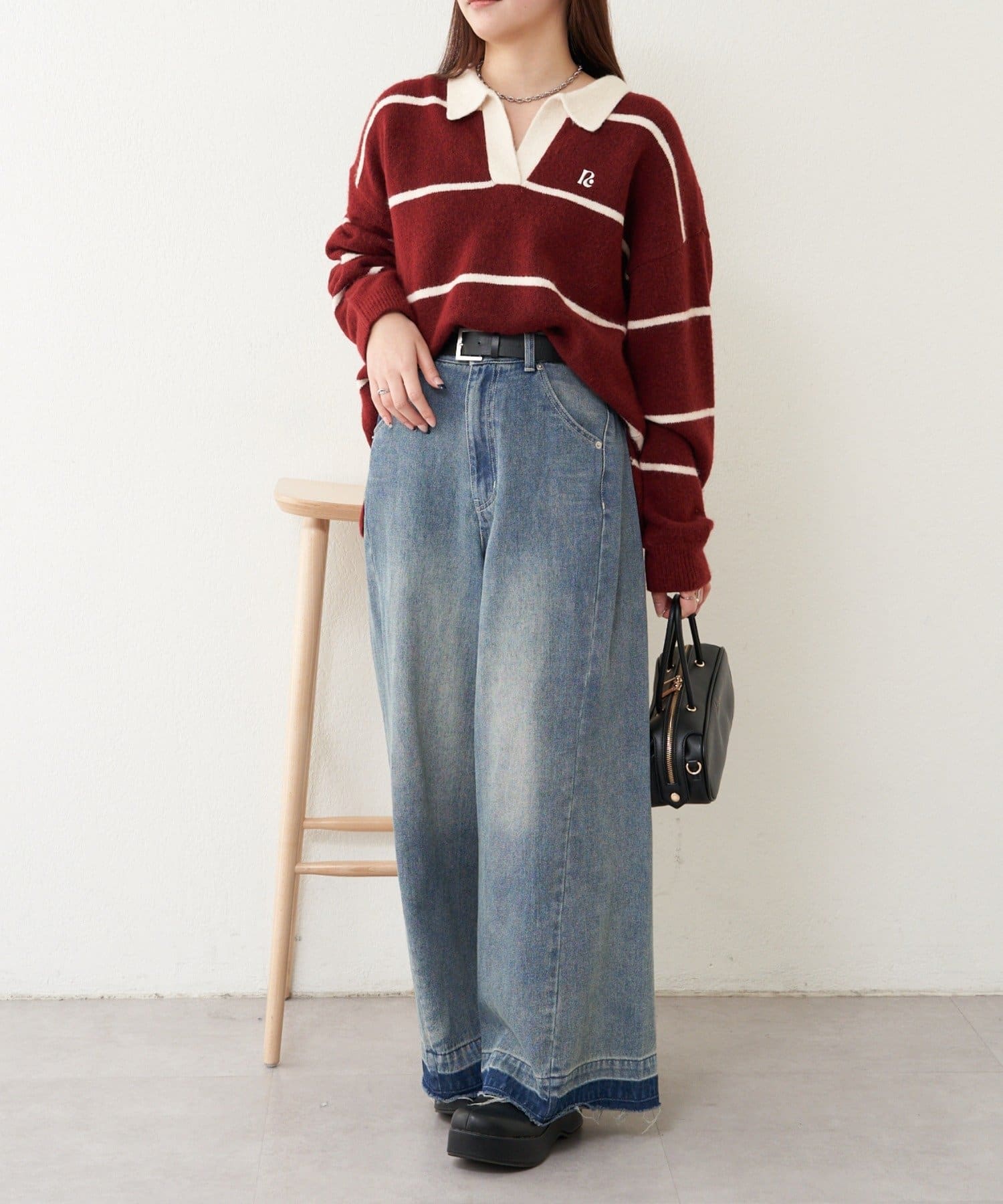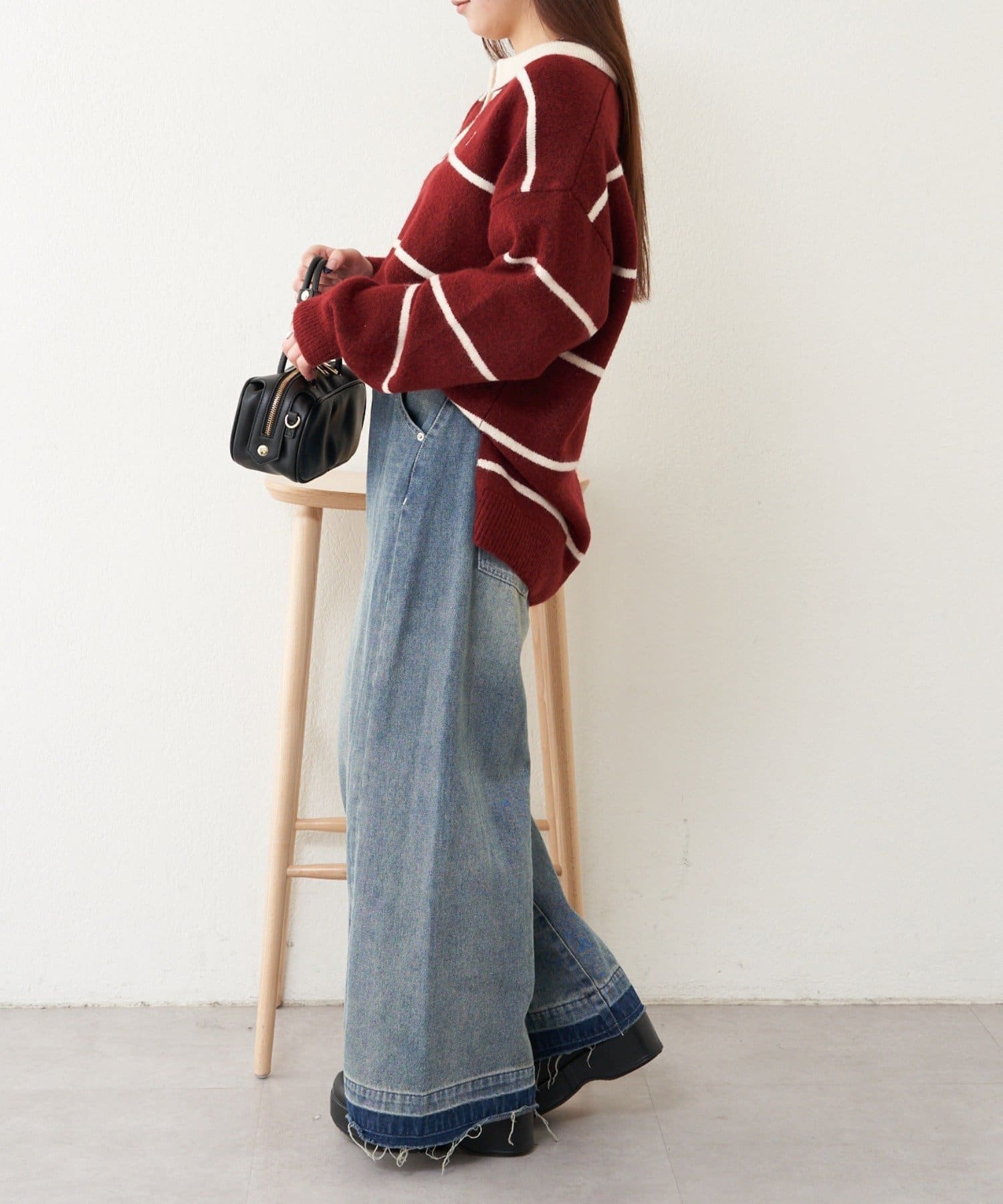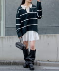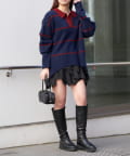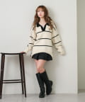 ・様々な系統にも合わせやすいニットなので、カジュアルにも甘めにもできます。