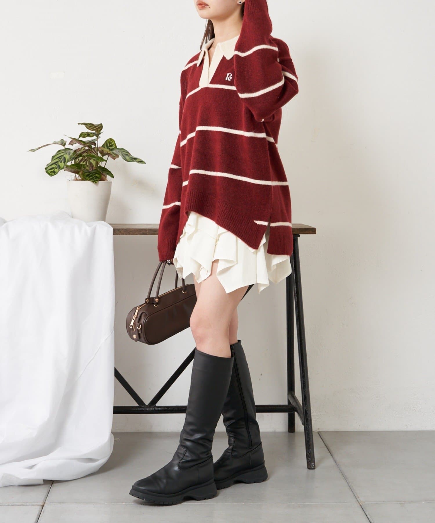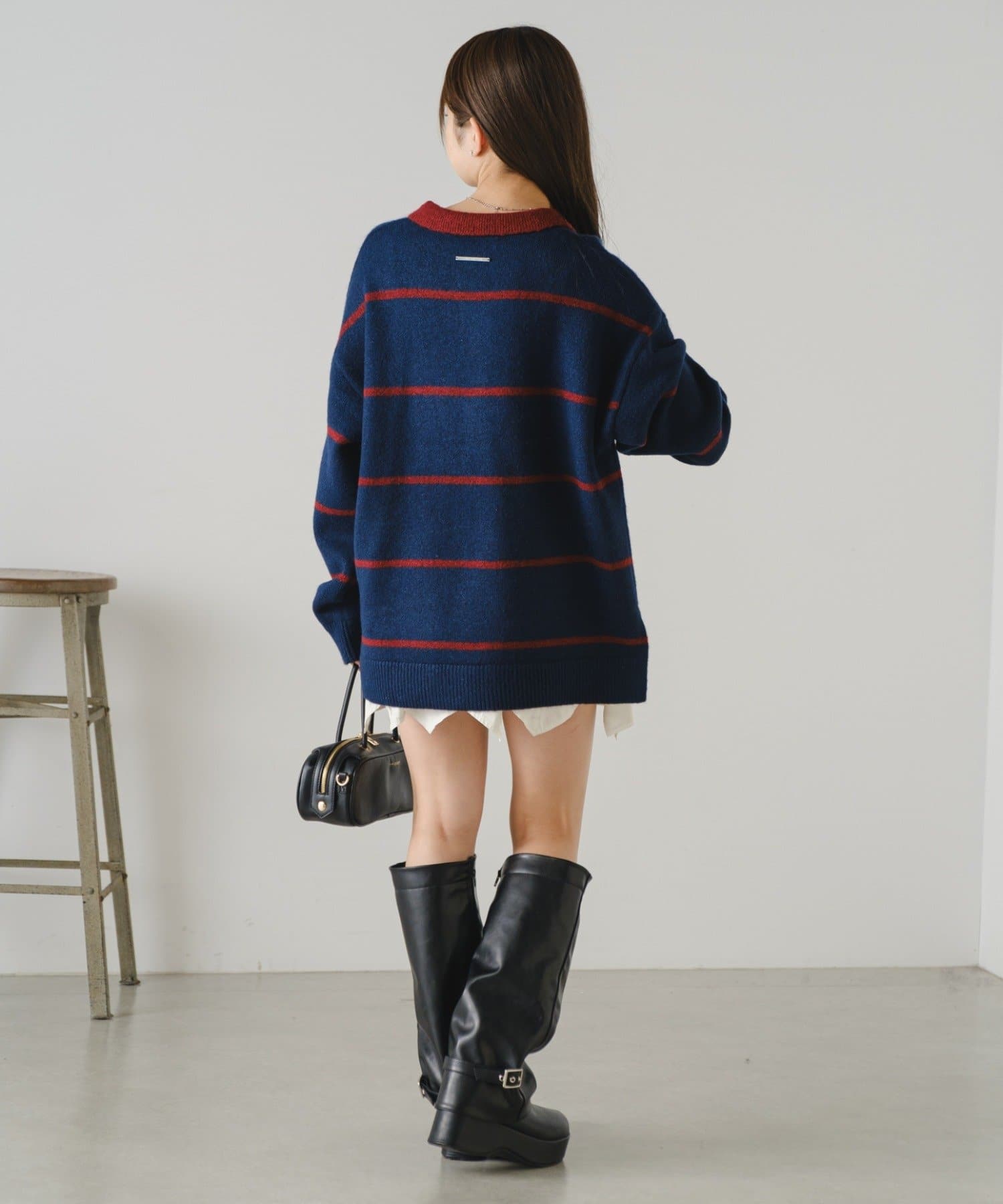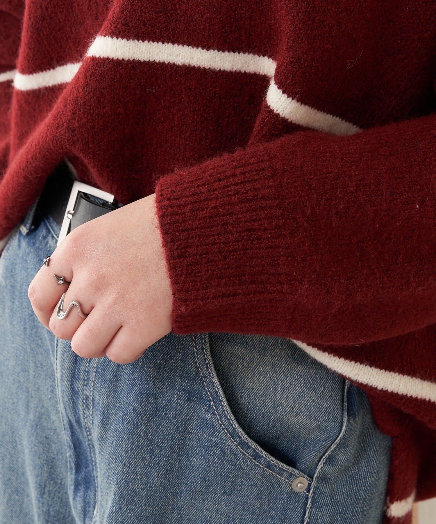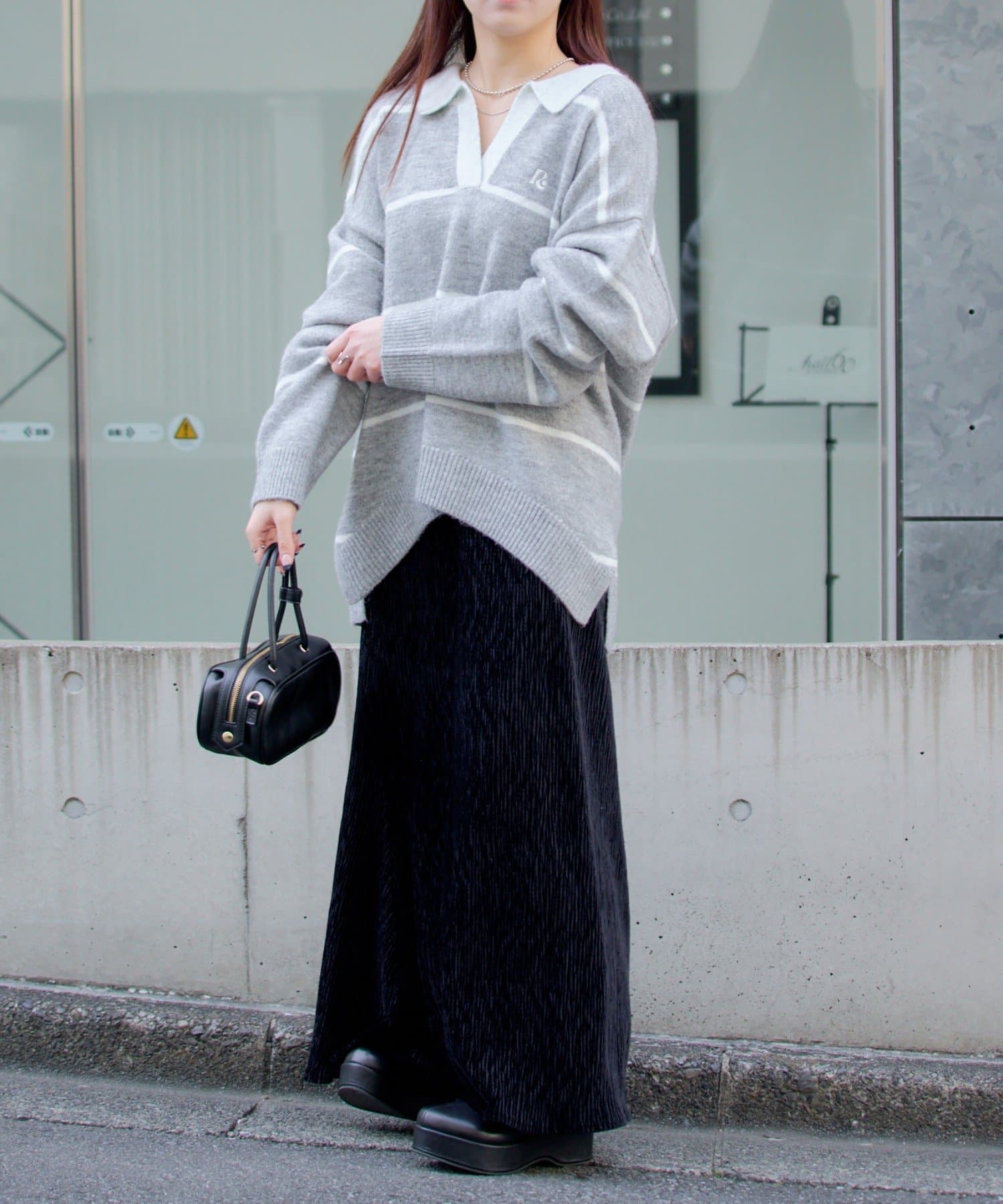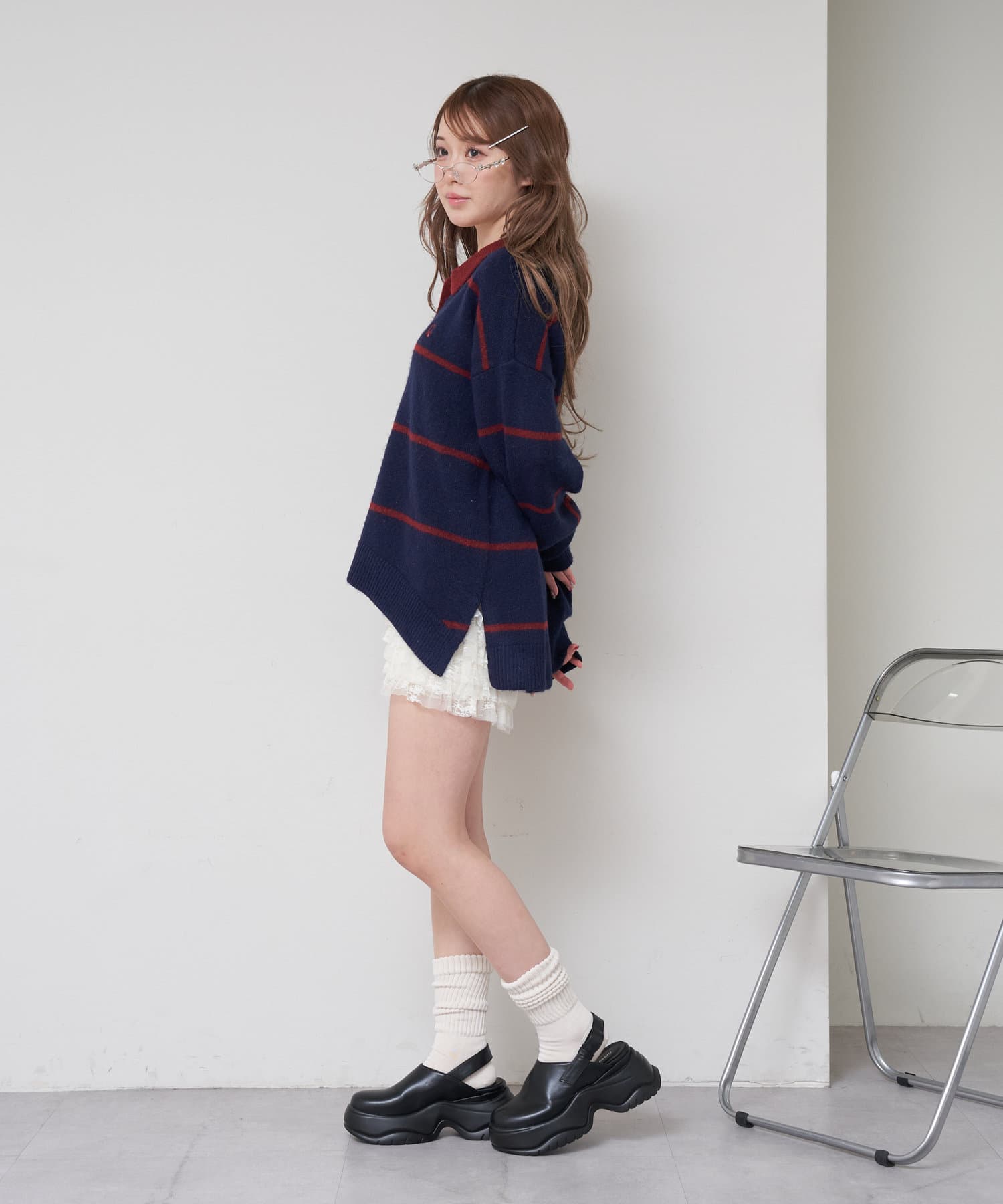 ・様々な系統にも合わせやすいニットなので、カジュアルにも甘めにもできます。