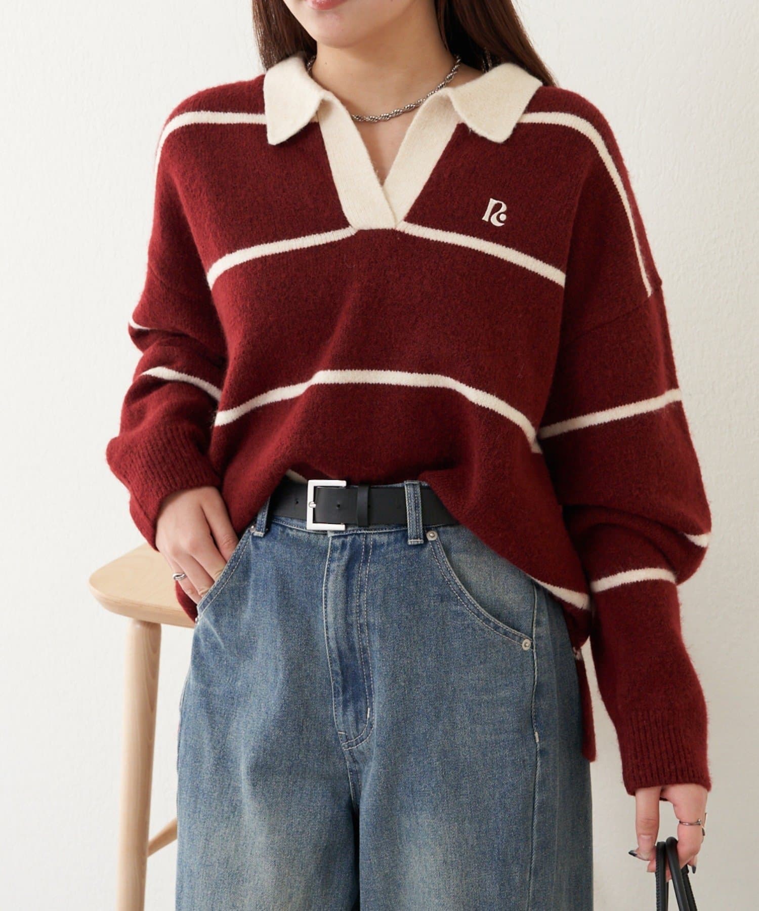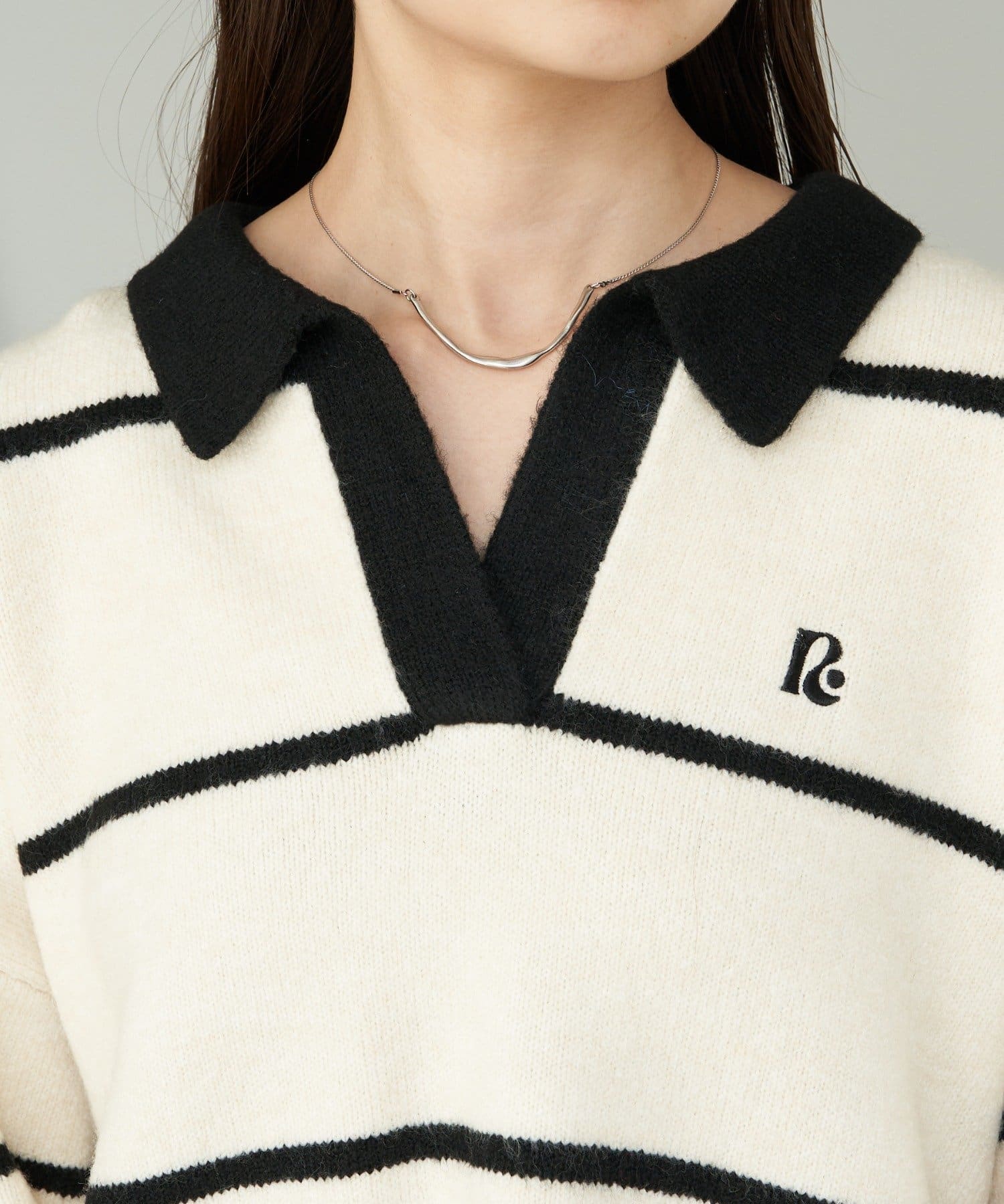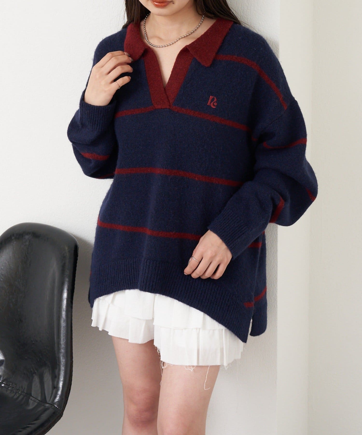⇒スキッパーポロ刺繍ニット