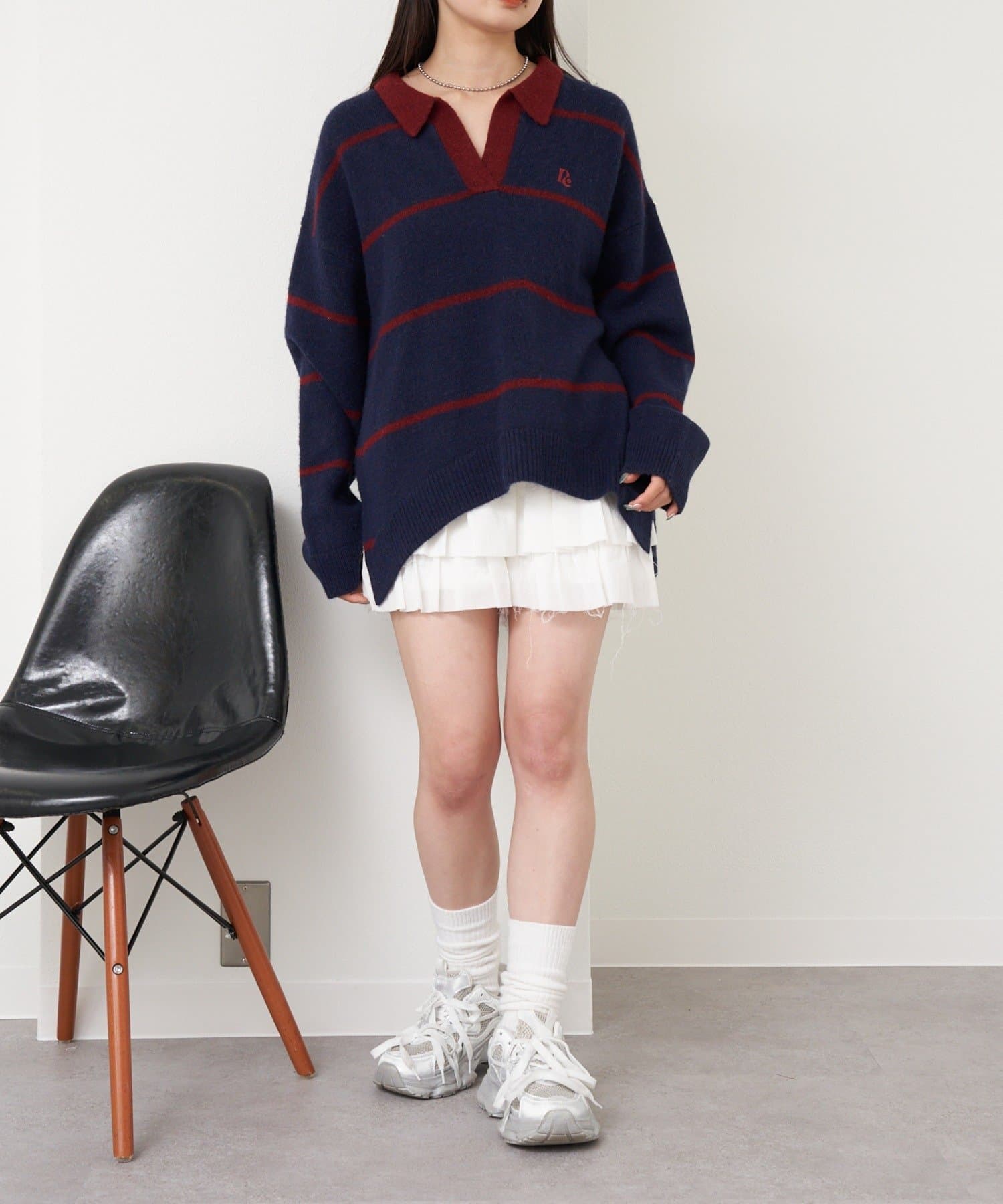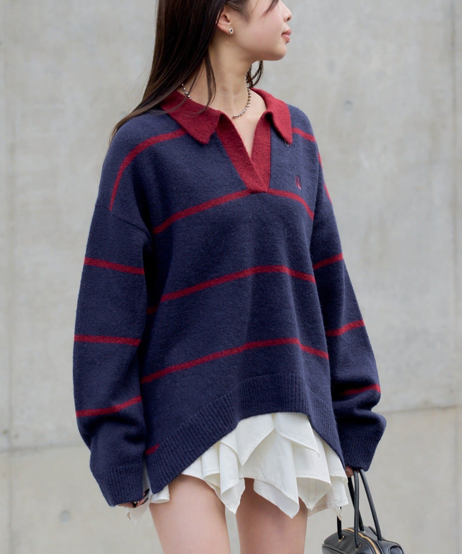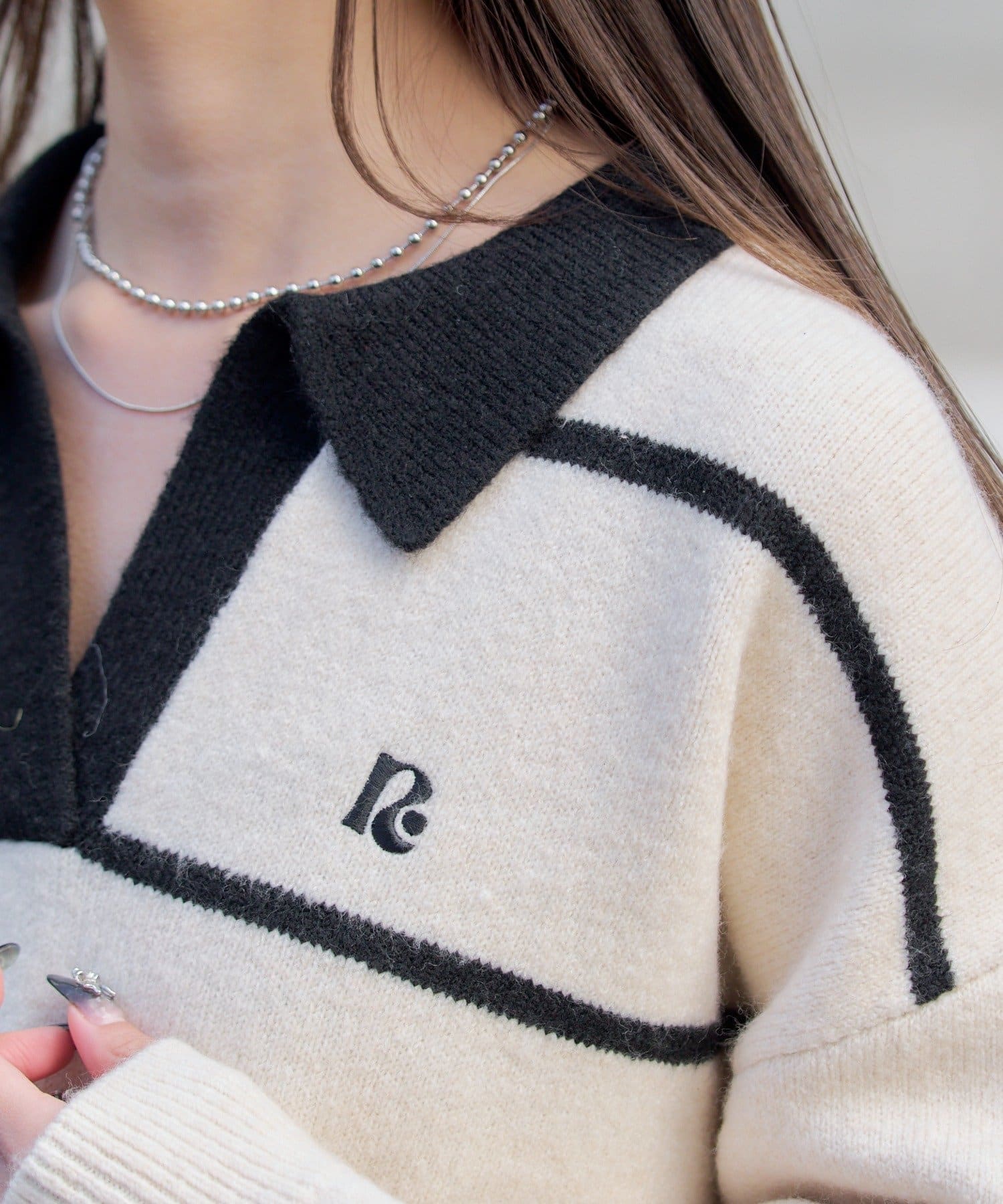 ⇒スキッパーポロ刺繍ニット