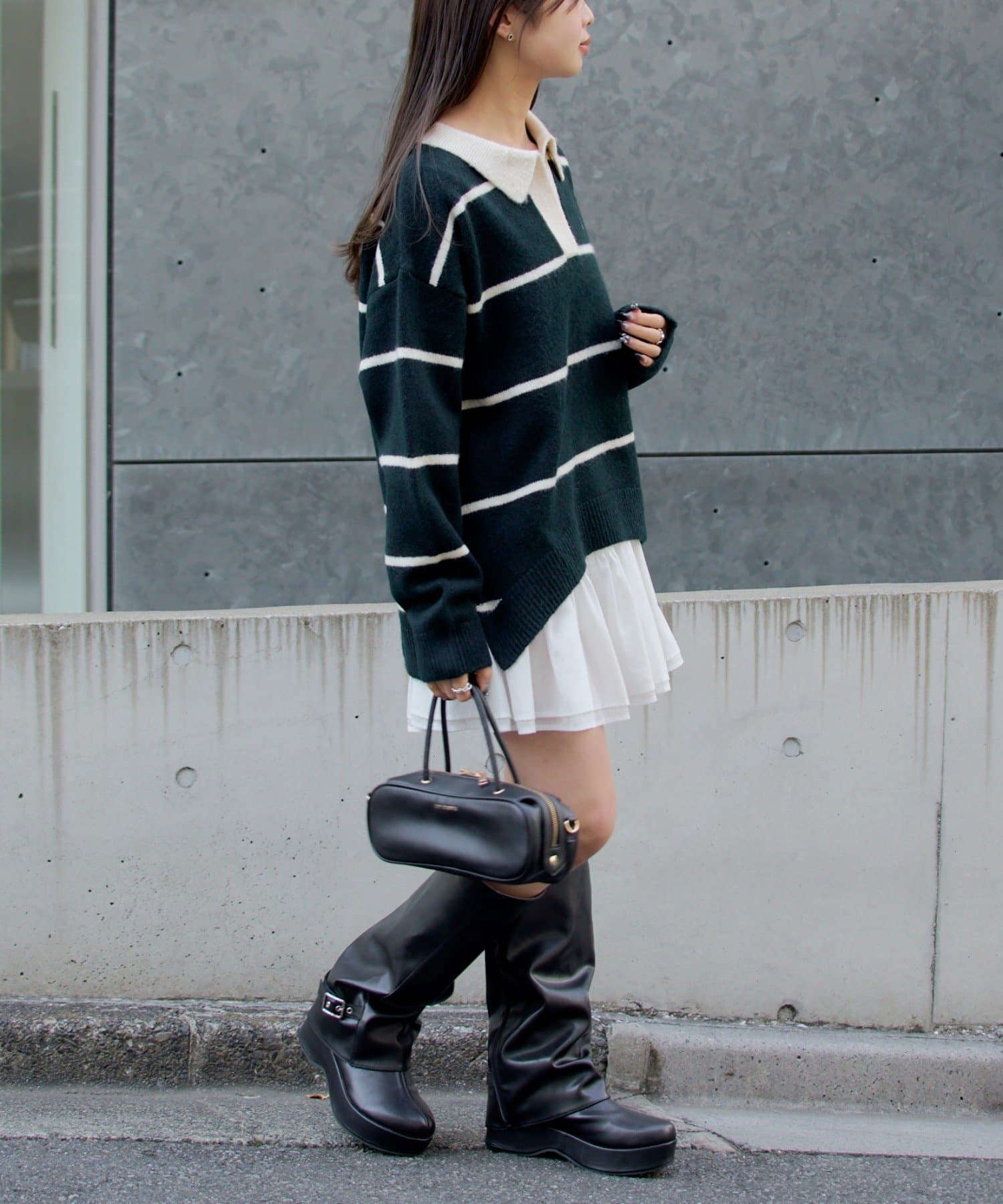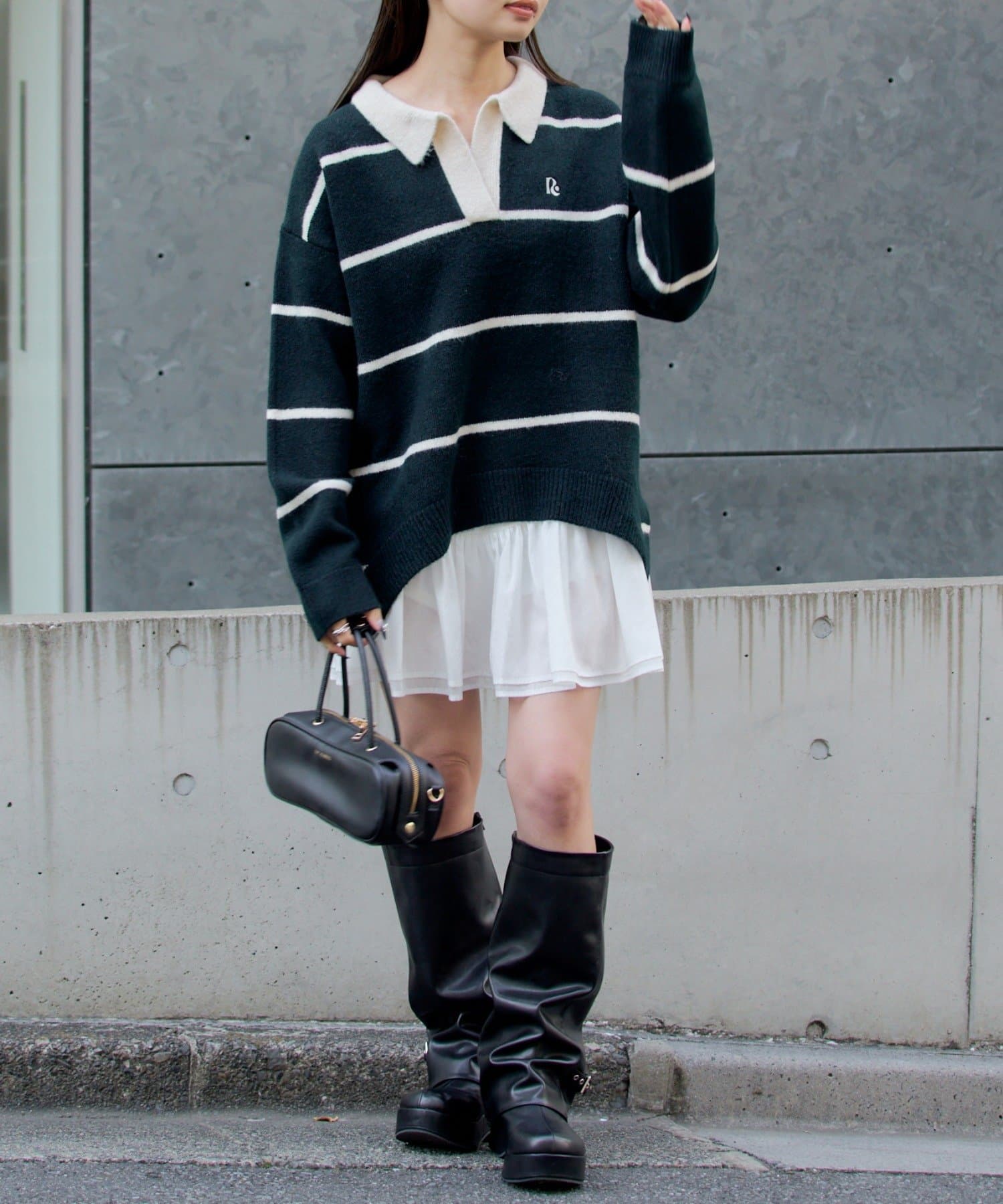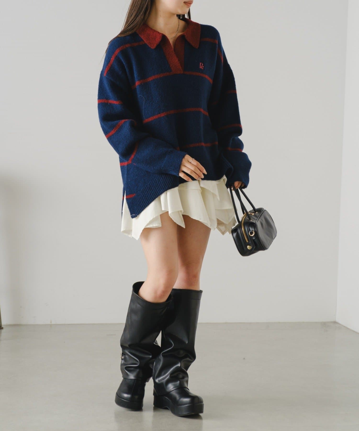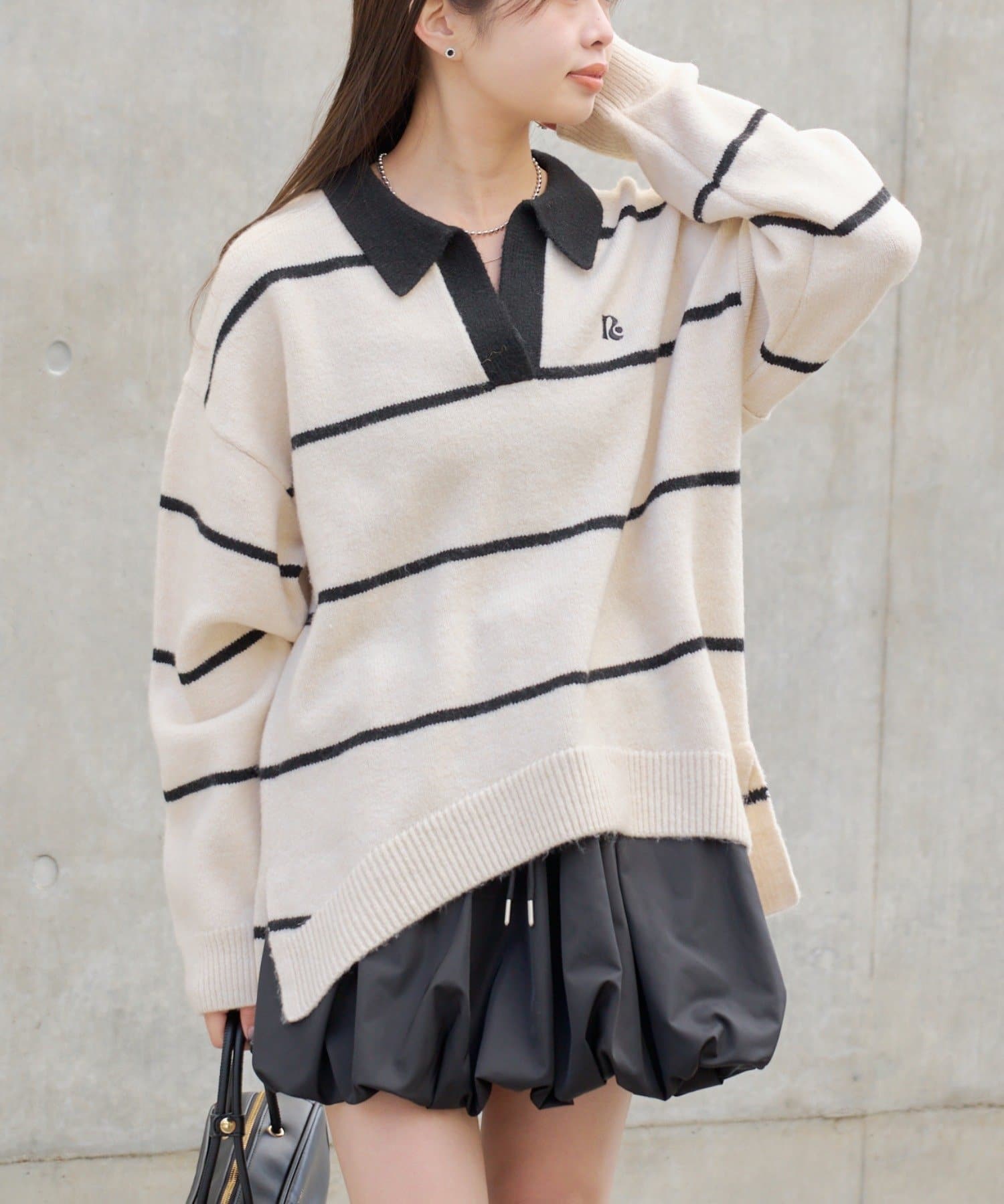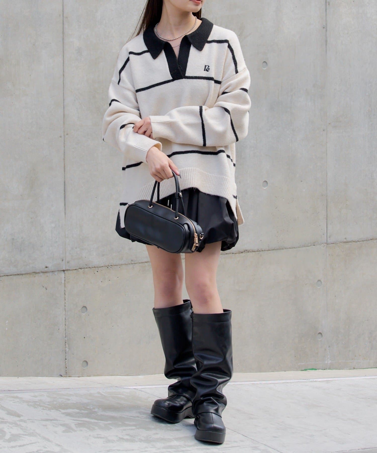 トレンドのバルーンミニスカートと合わせるのがお気に入りです!