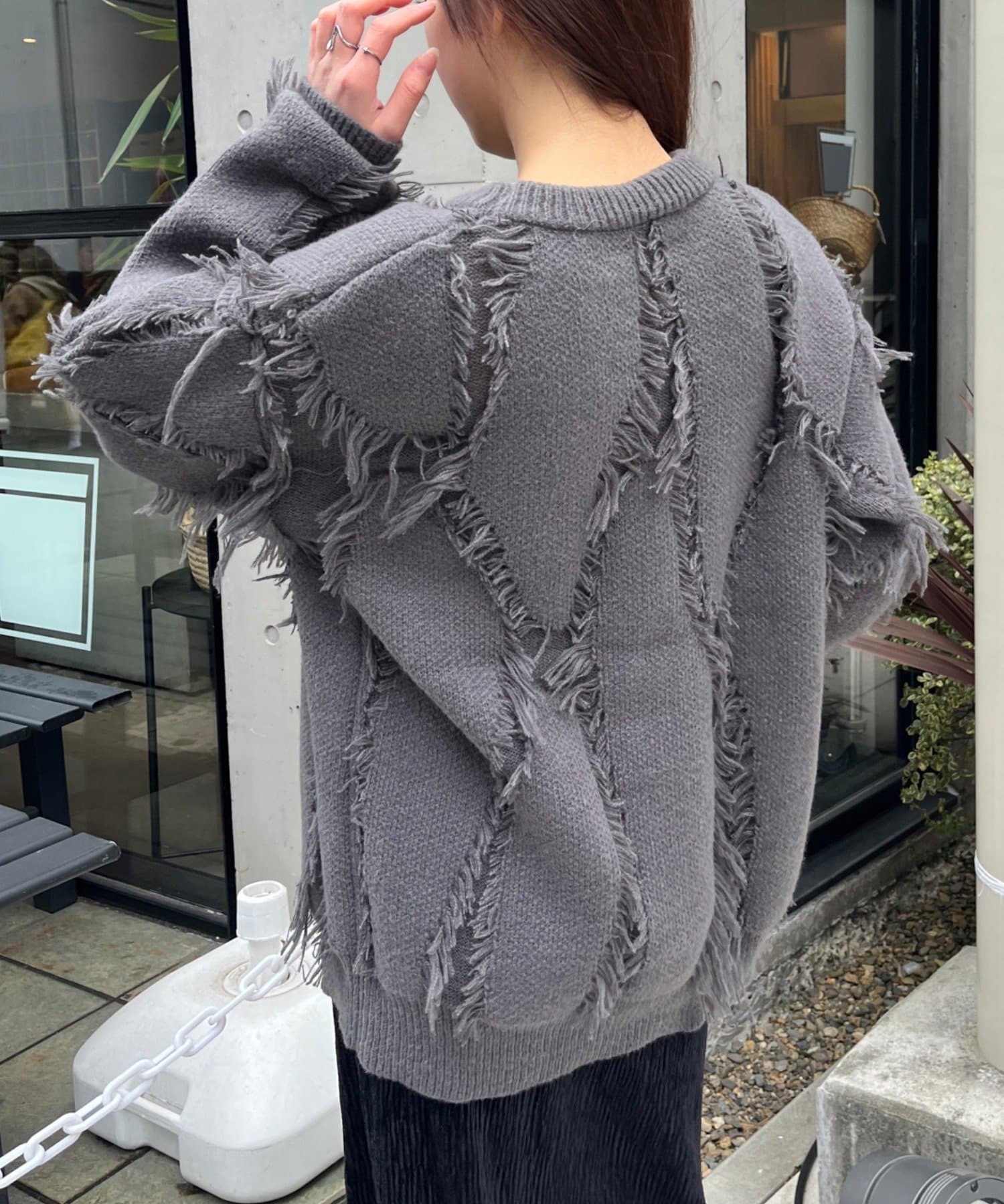 フリンジルーズニット