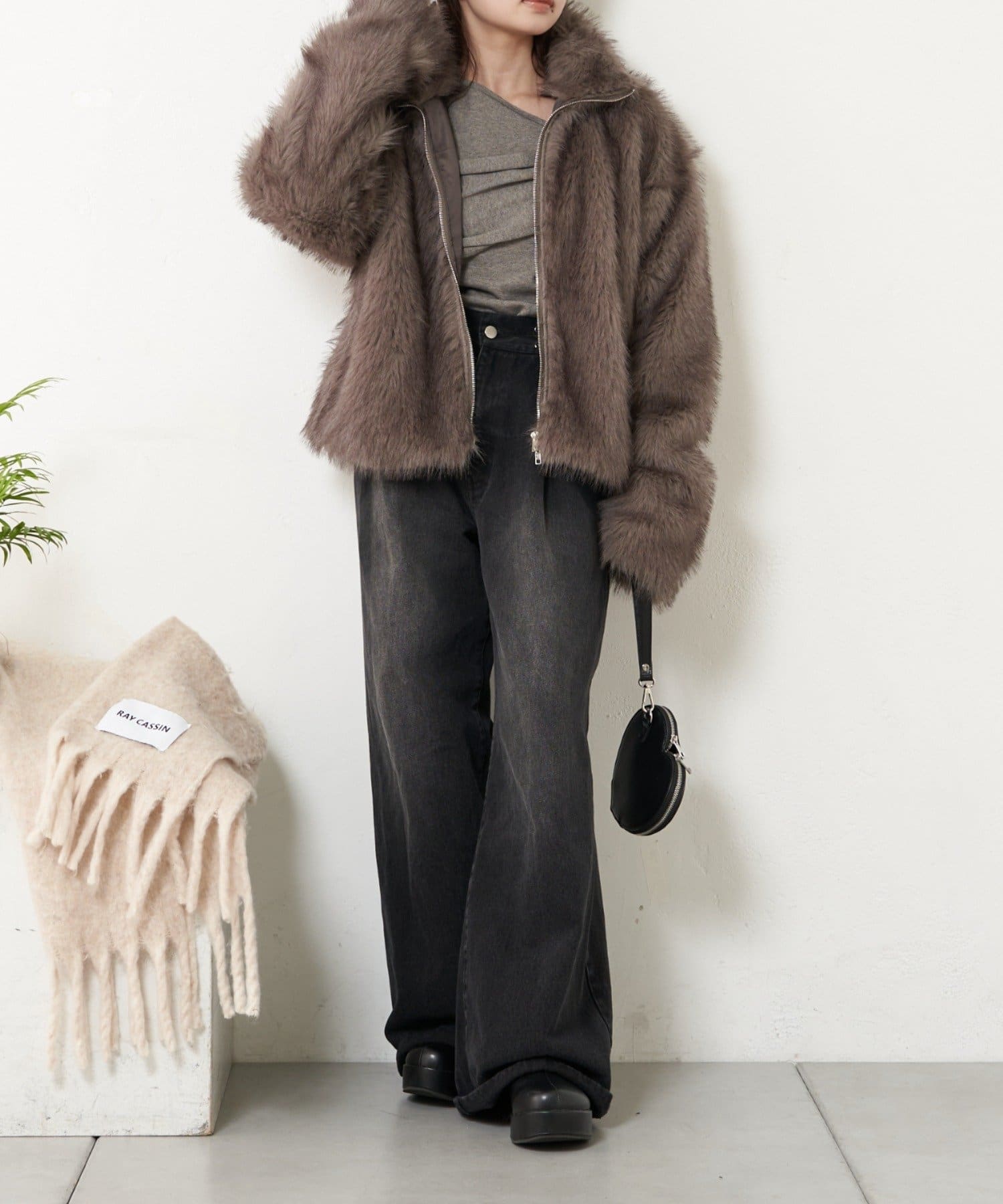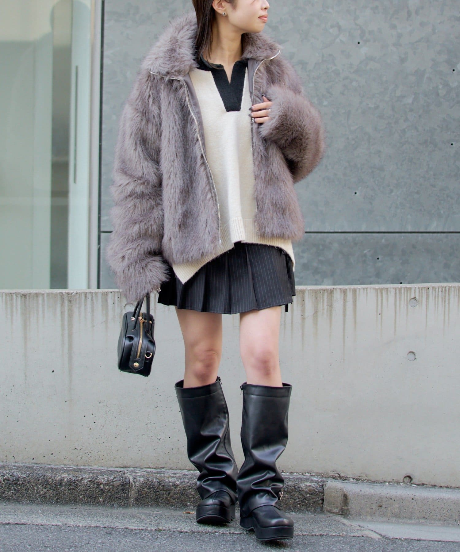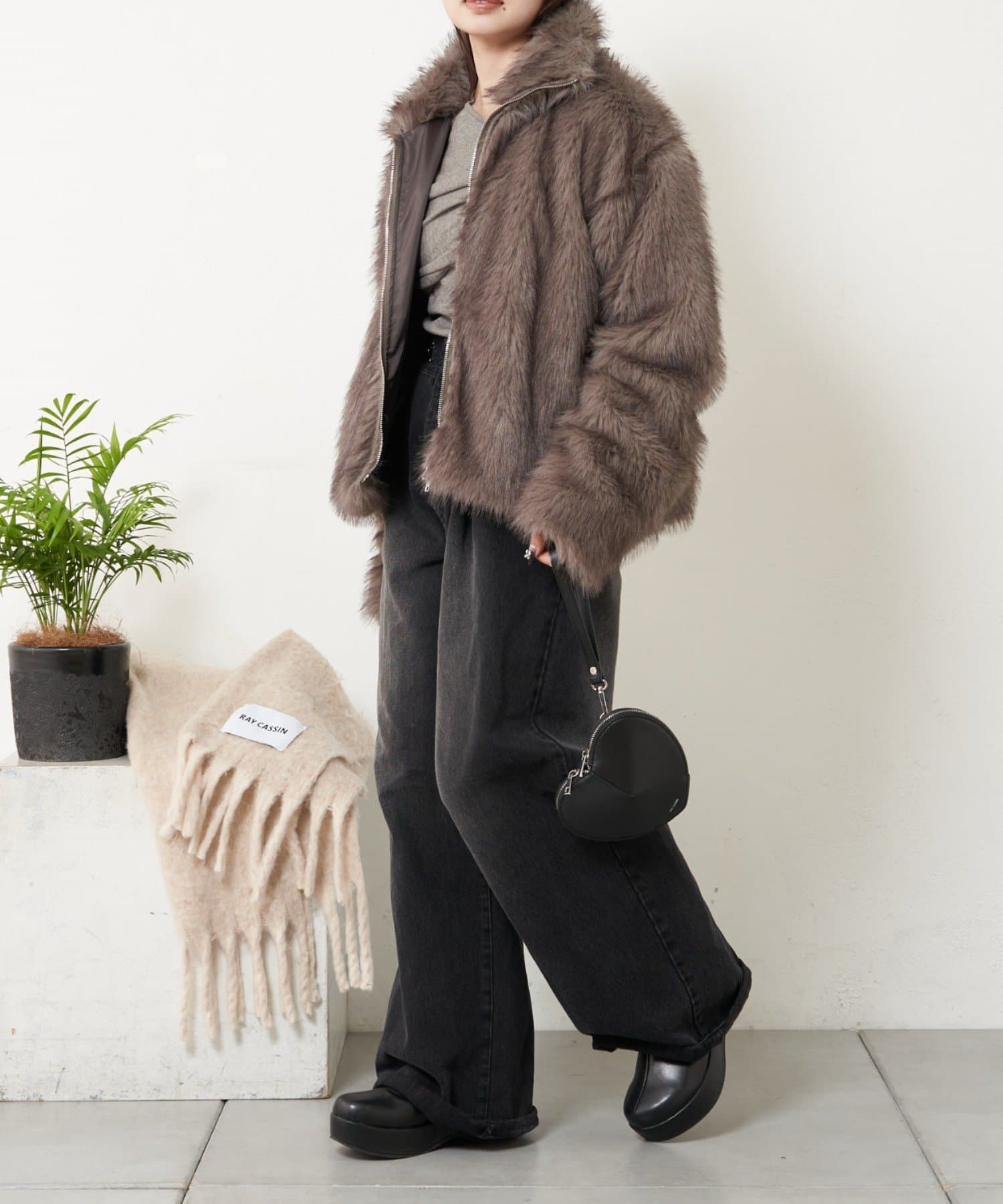 ・この製品は毛足の長いファー素材を使用しております。ファスナー開閉の際毛足を巻き込む恐れがございますので十分ンご注意ください。