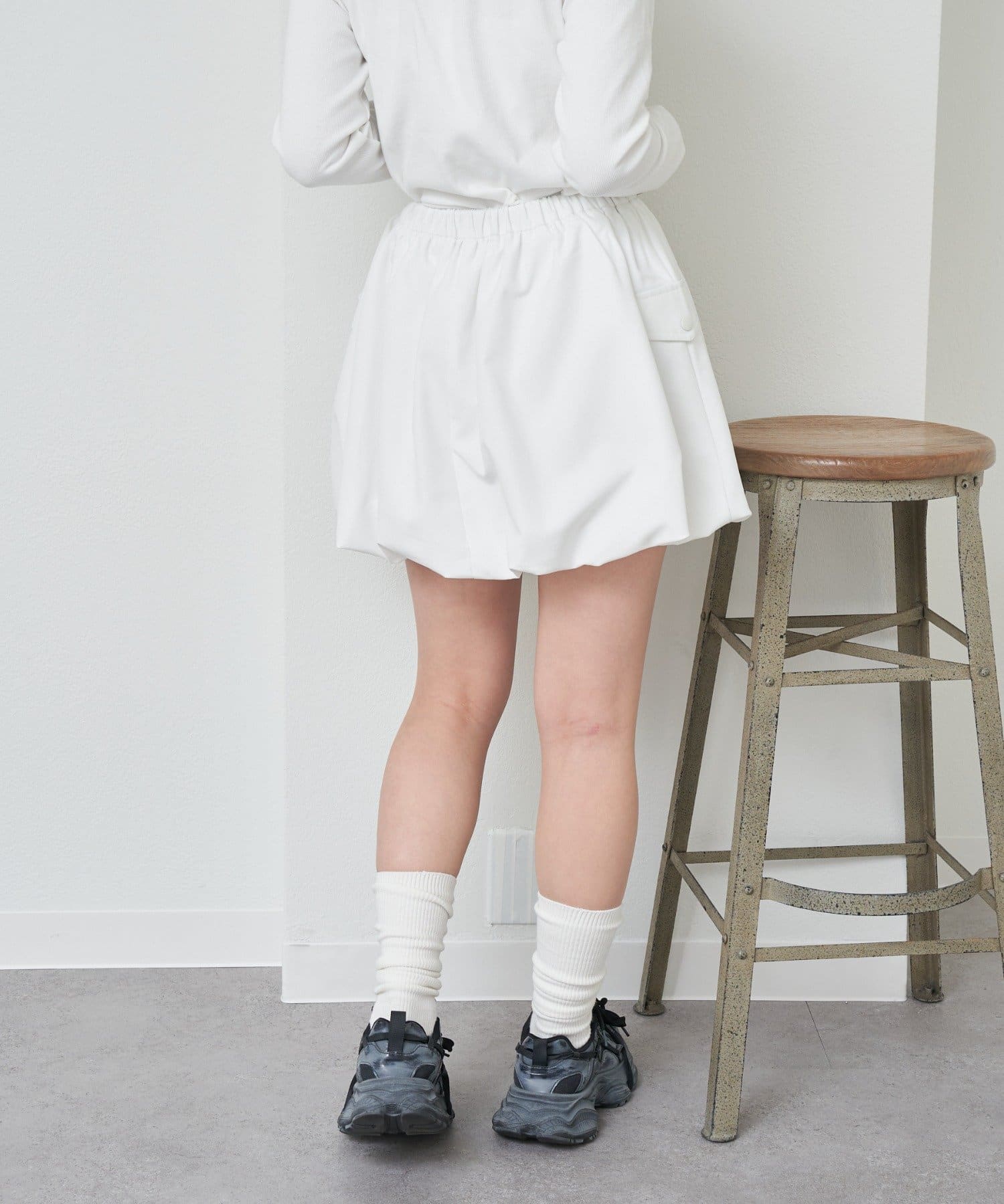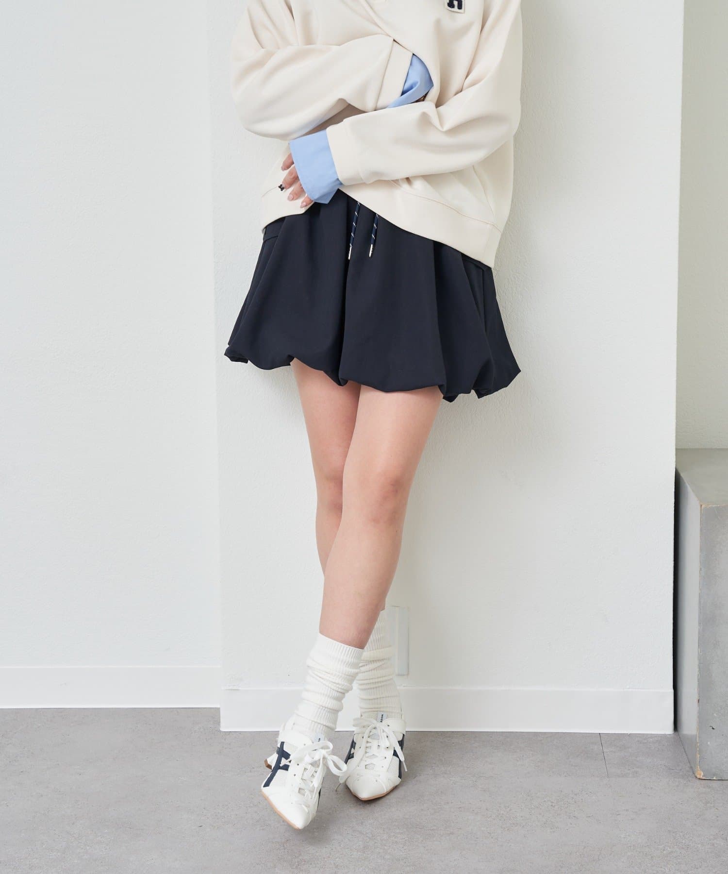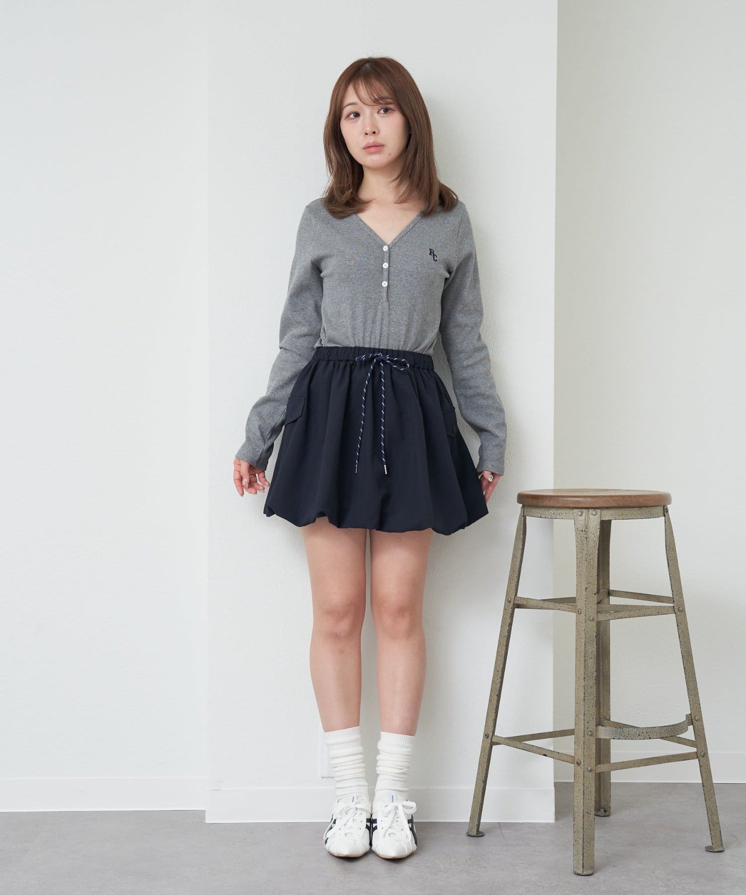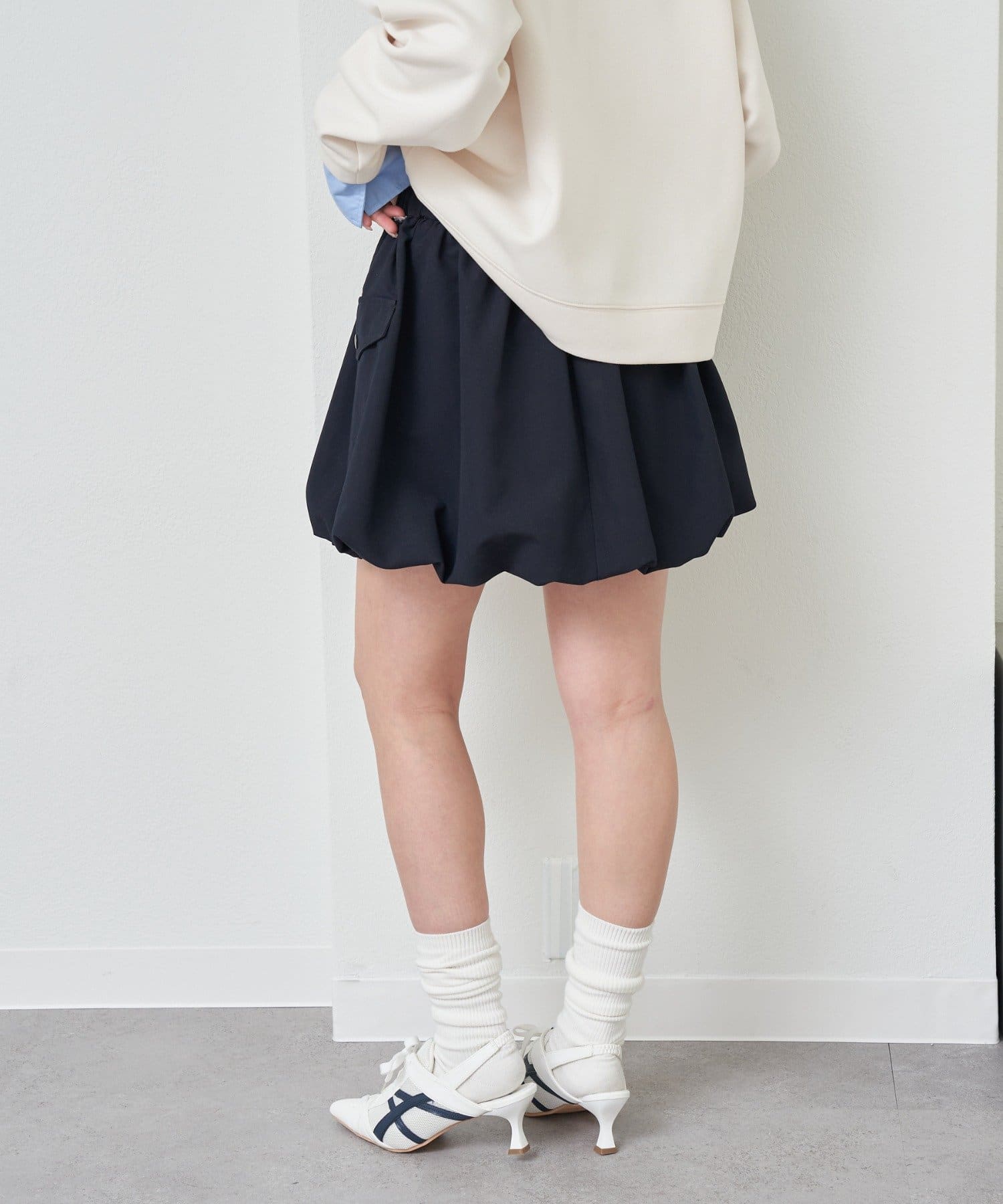 ・カーゴデザインで、甘すぎず、挑戦しやすいバルーンスカートになっております。
