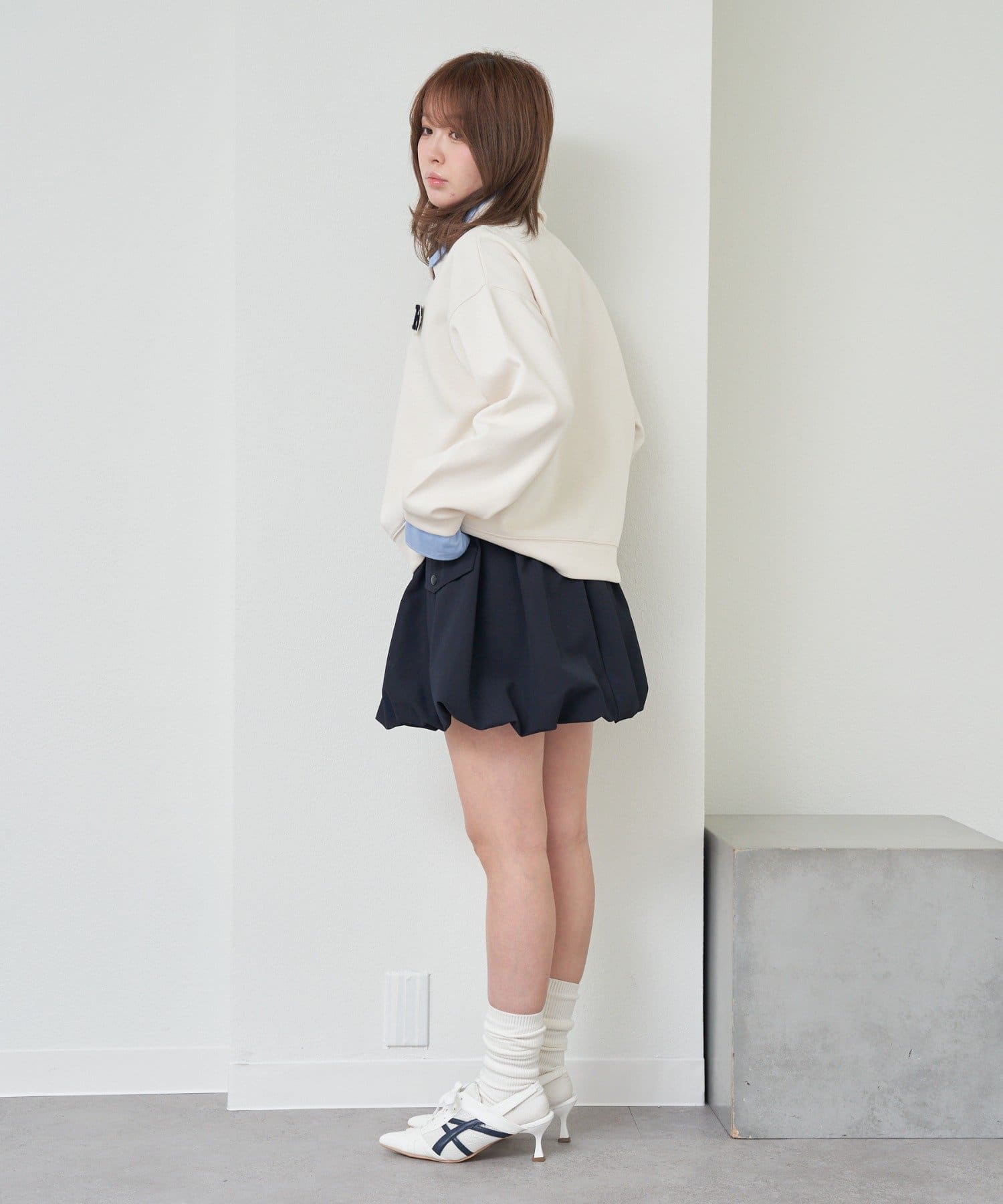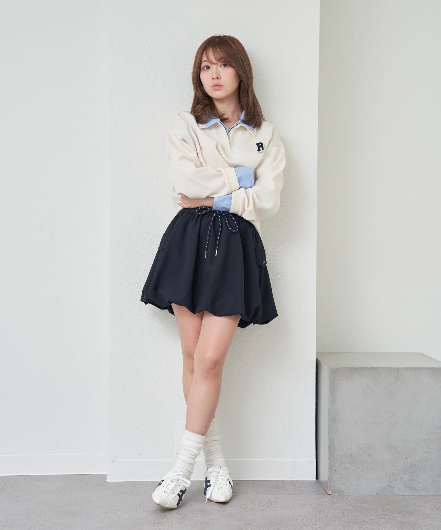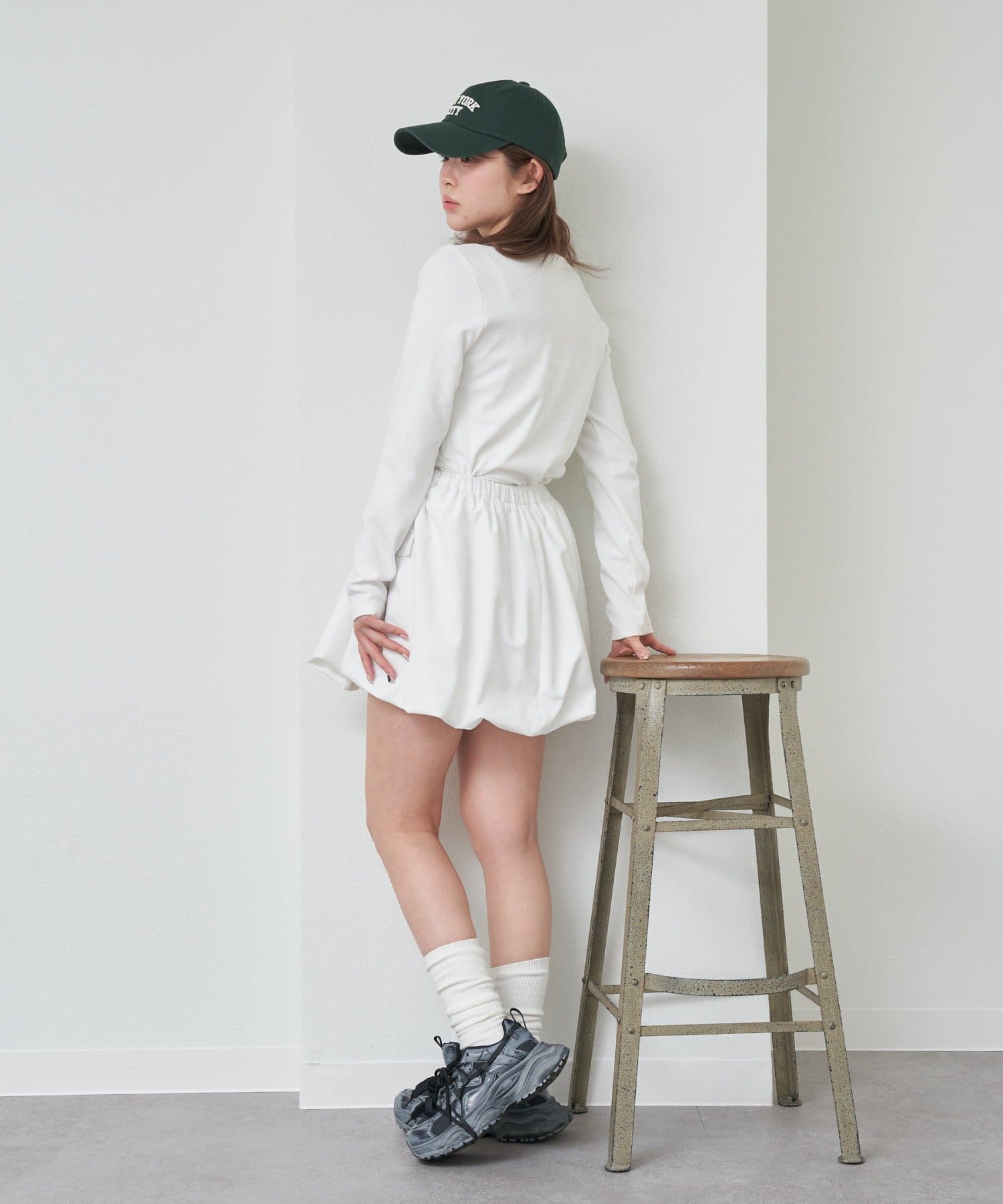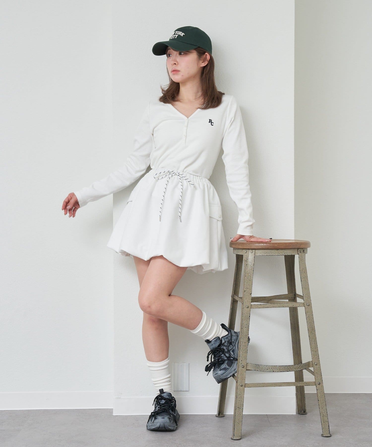 ・カーゴデザインで、甘すぎず、挑戦しやすいバルーンスカートになっております。