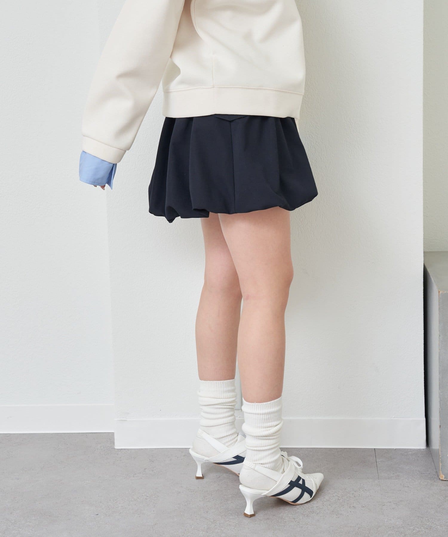 ネイビーのスカートがほしくて、普通にフレアにするかバルーンにするかで、初バルーンにして良かったです。細見えします。