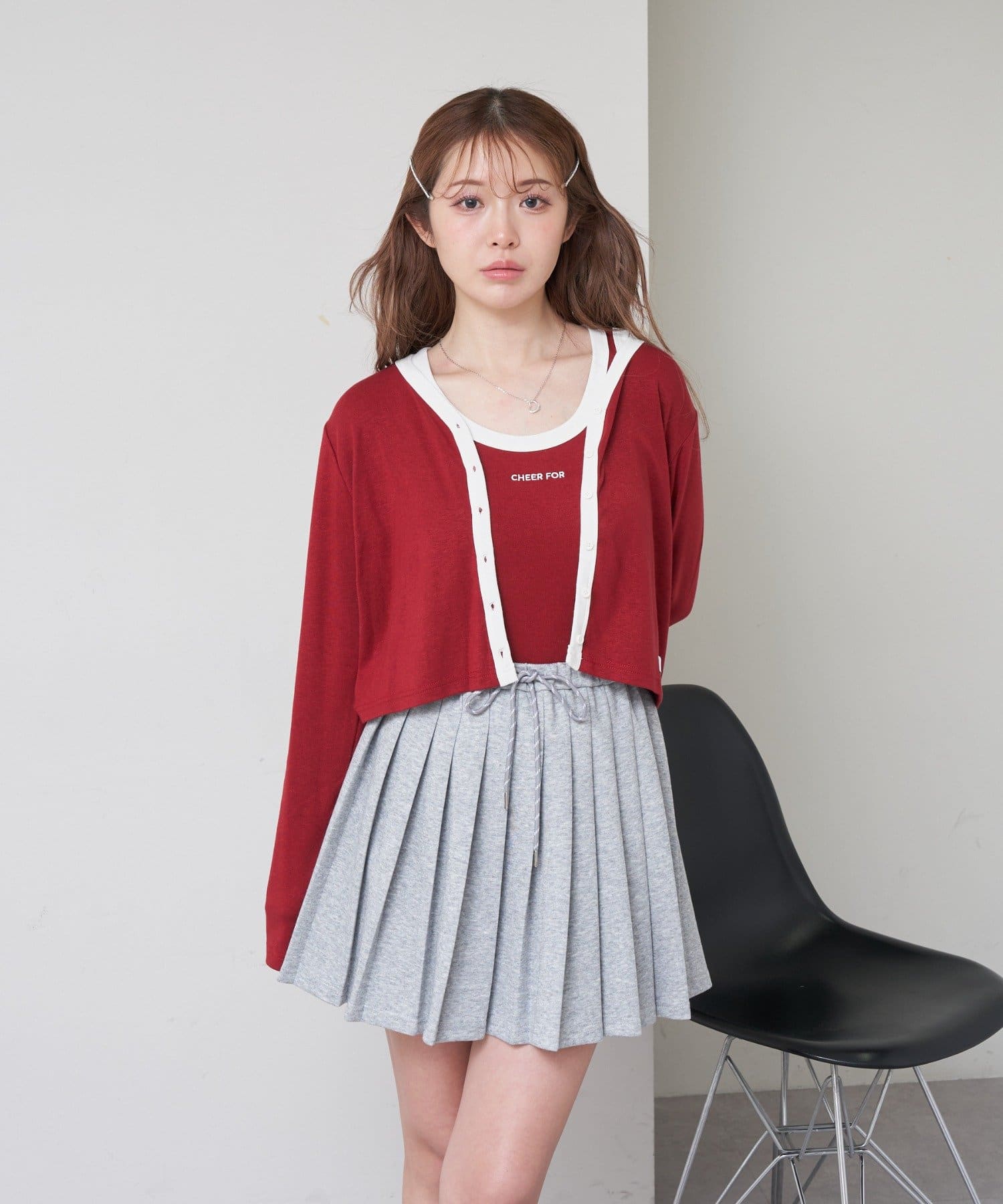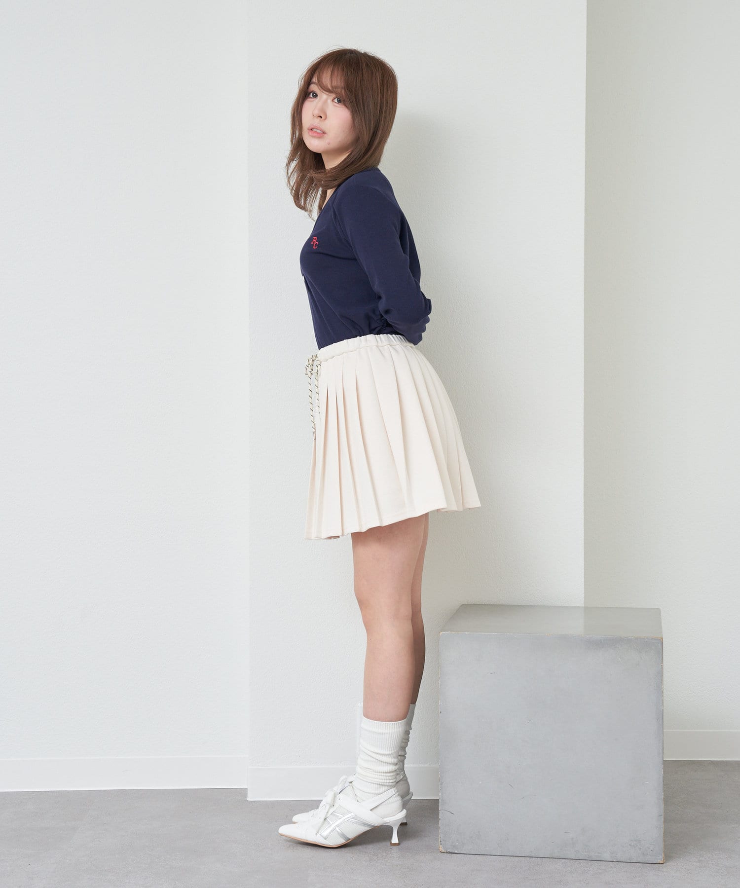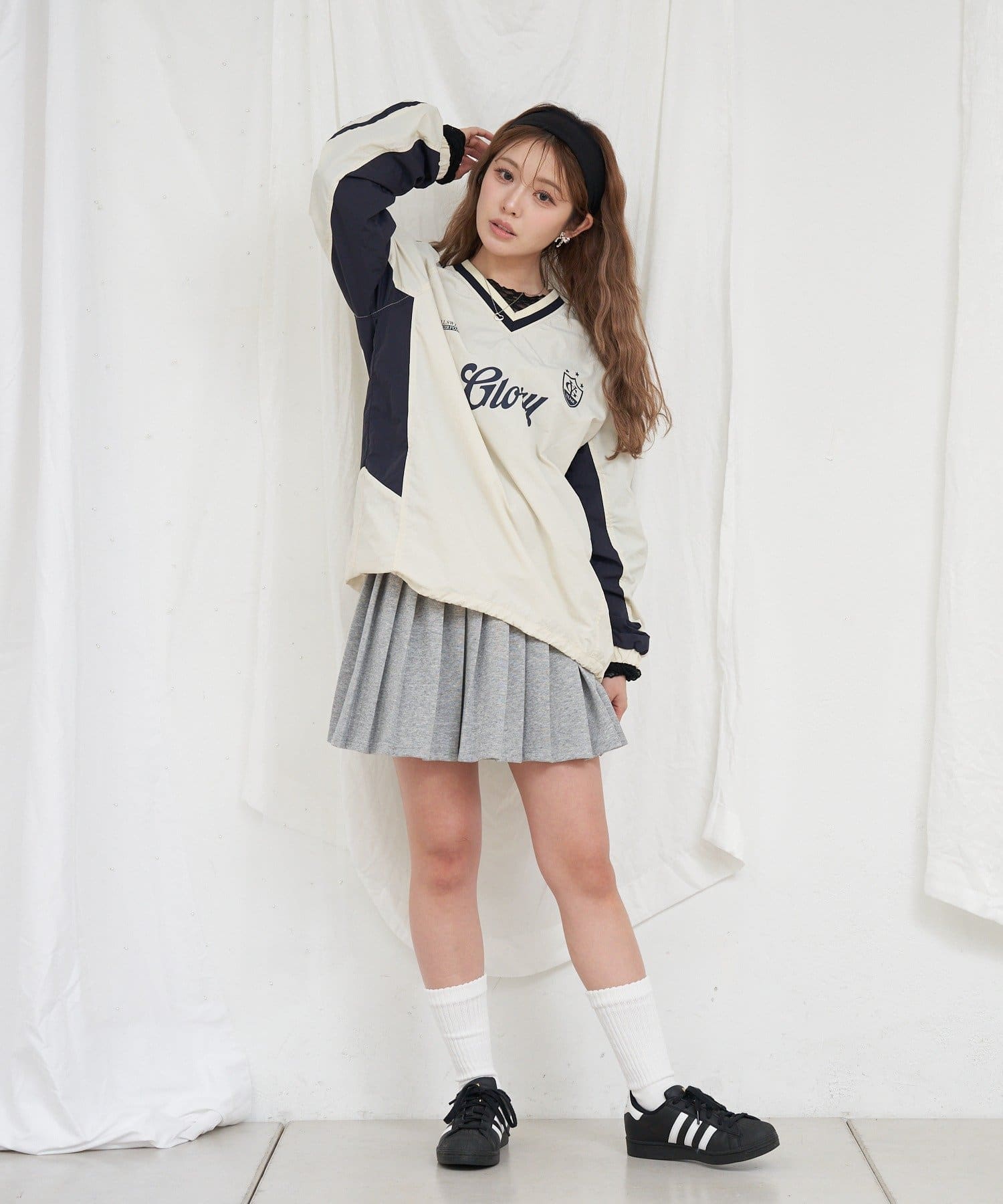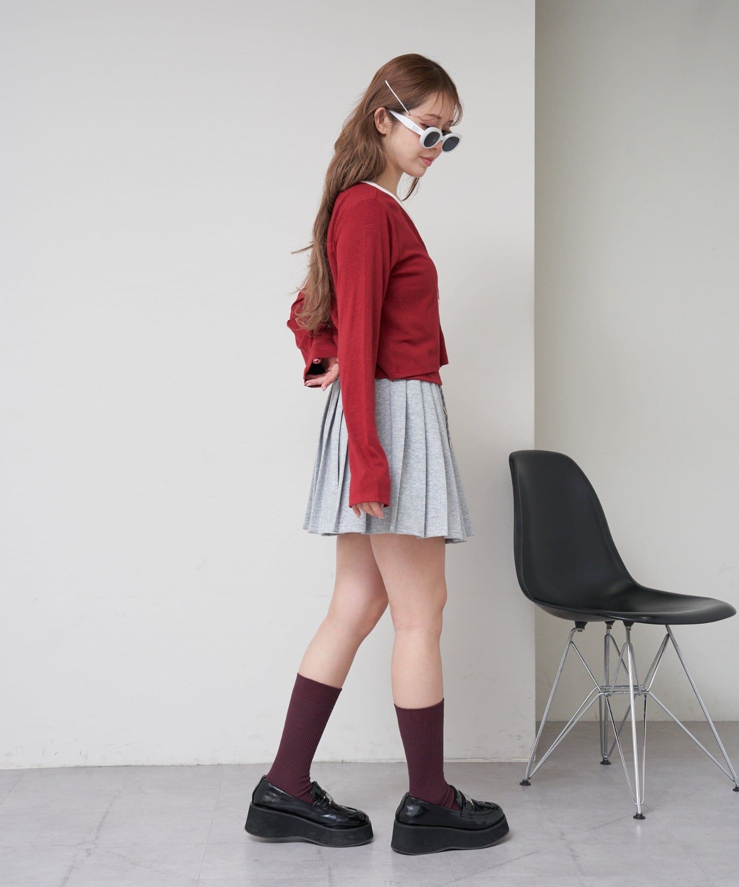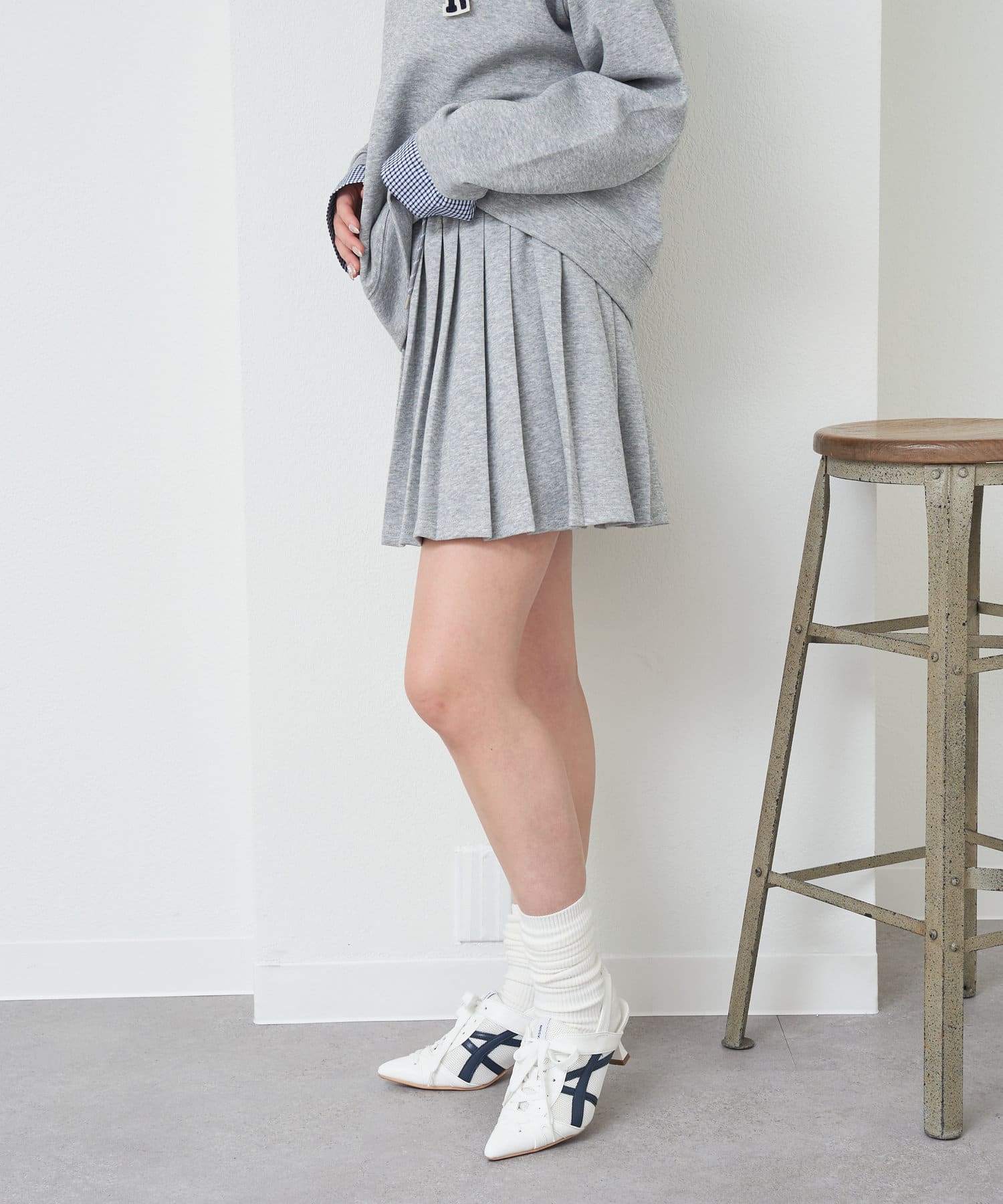 ・スウェット生地で甘さを抑えてカジュアル見えするプリーツスカート