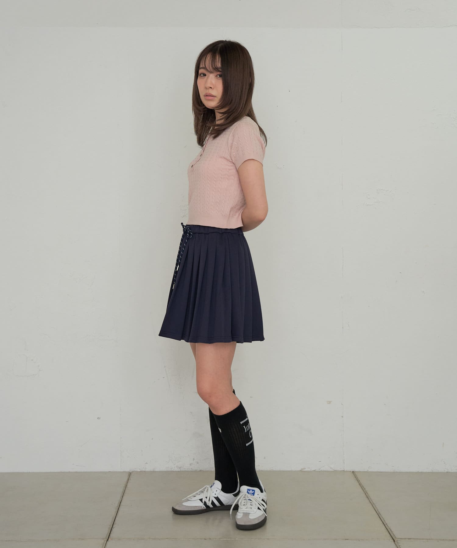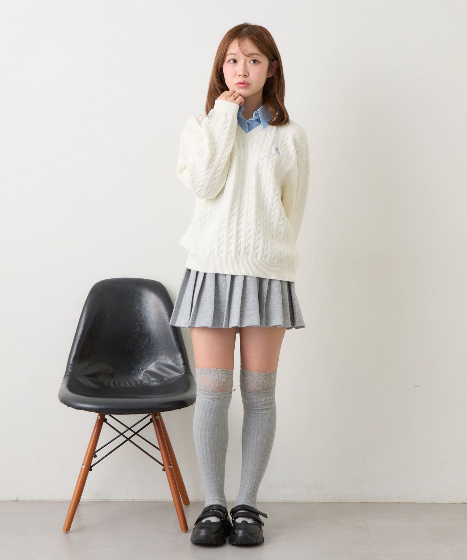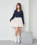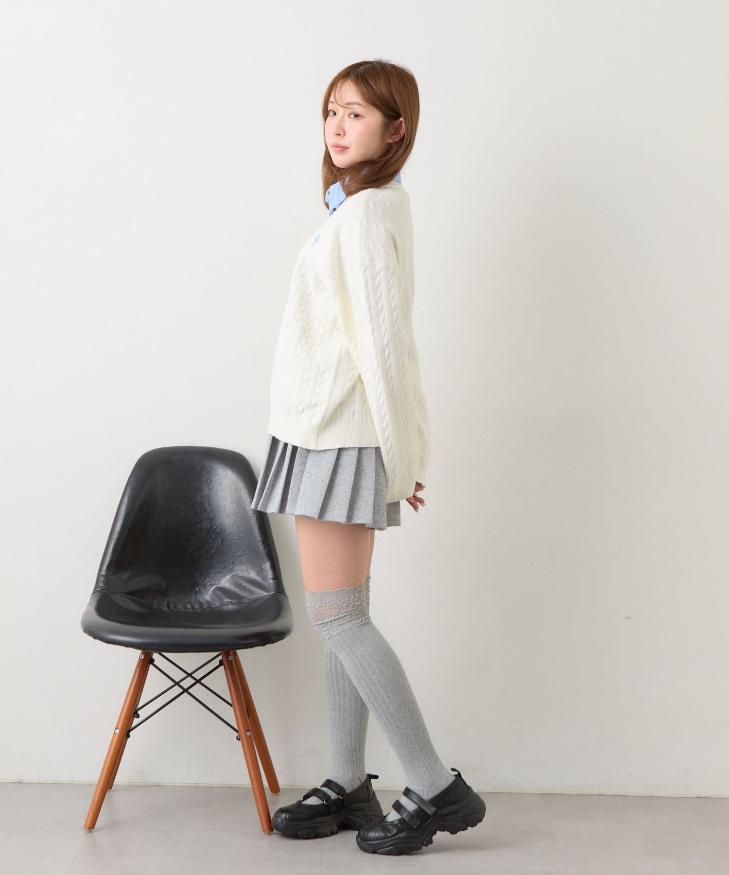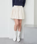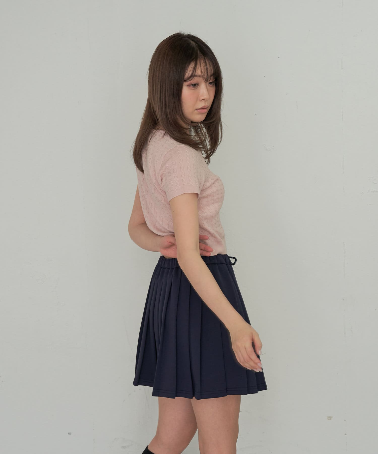 ・スウェット生地で甘さを抑えてカジュアル見えするプリーツスカート