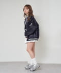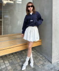 ・ルーズなシルエットのトップスからチラ見せがトレンドなスタイル。