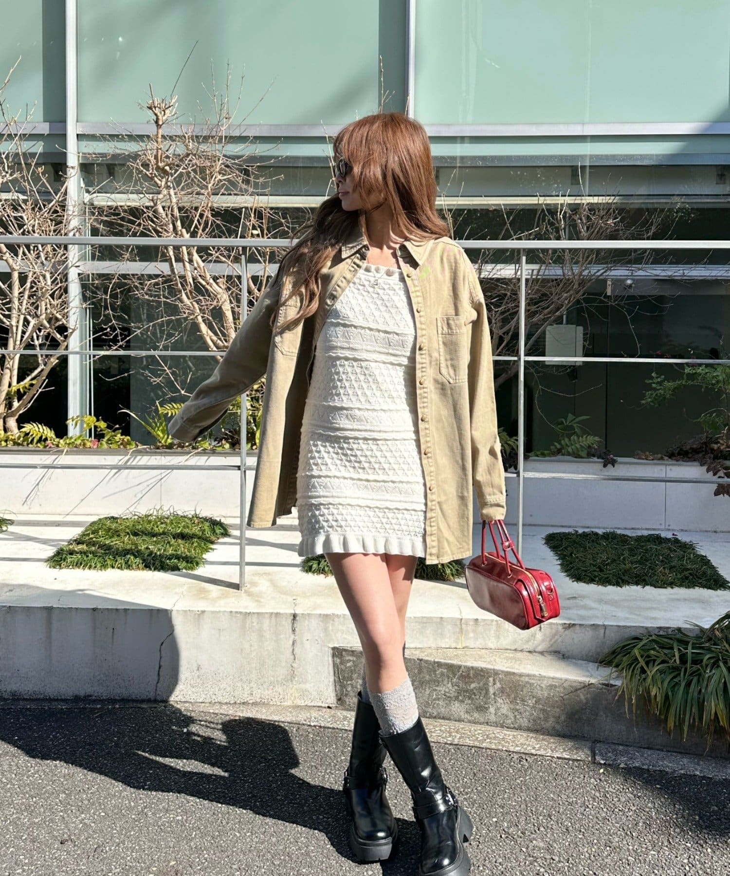 ・ロングボトムスに、羽織りとして着用するのもおすすめ。
